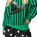 Queen Of Sparkles Licensed Green & Black Striped Elphaba Hat Sweater