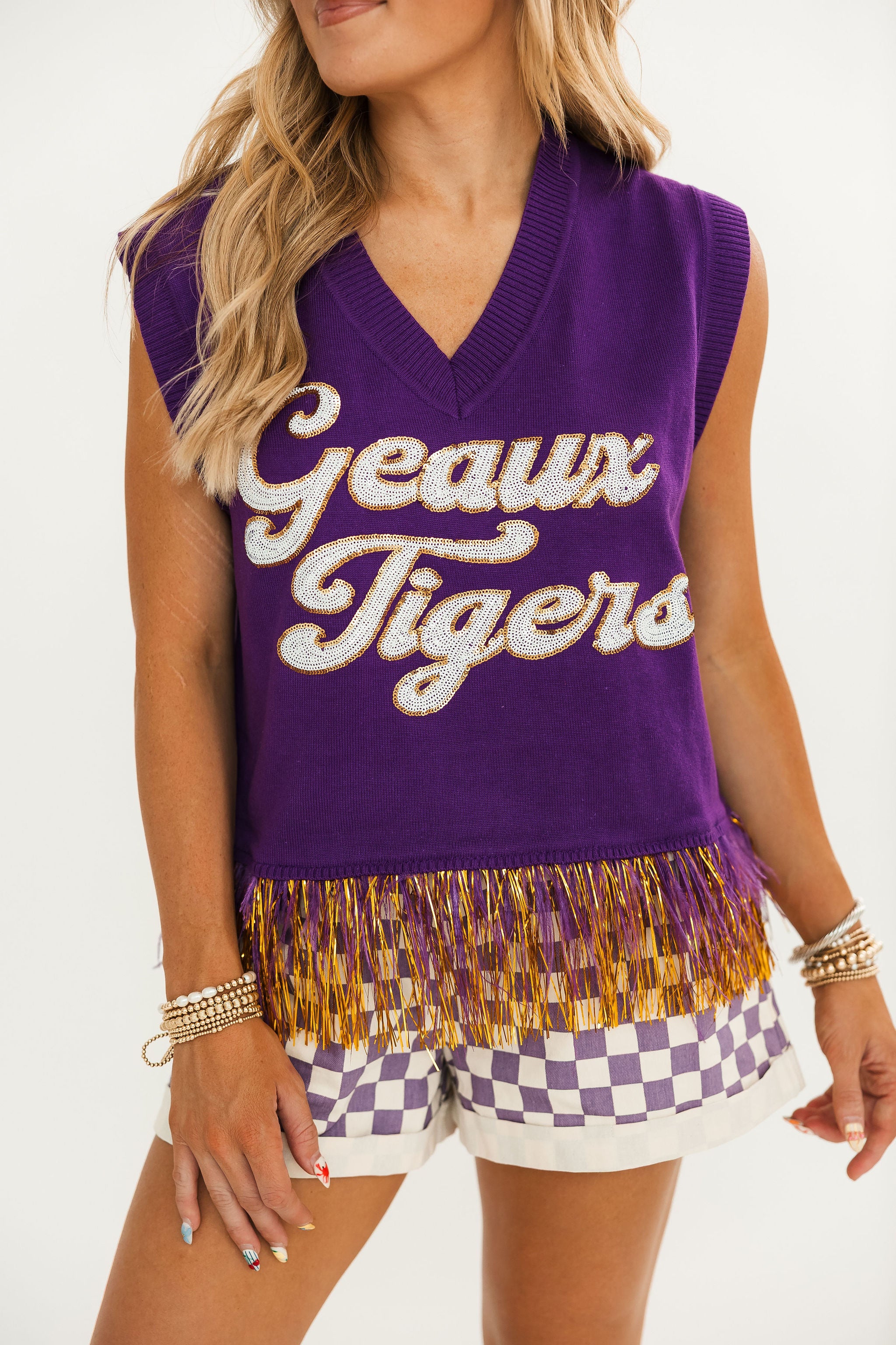 LSU 'Geaux Tigers' Feather Bottom Tank Sweater | Queen Of Sparkles