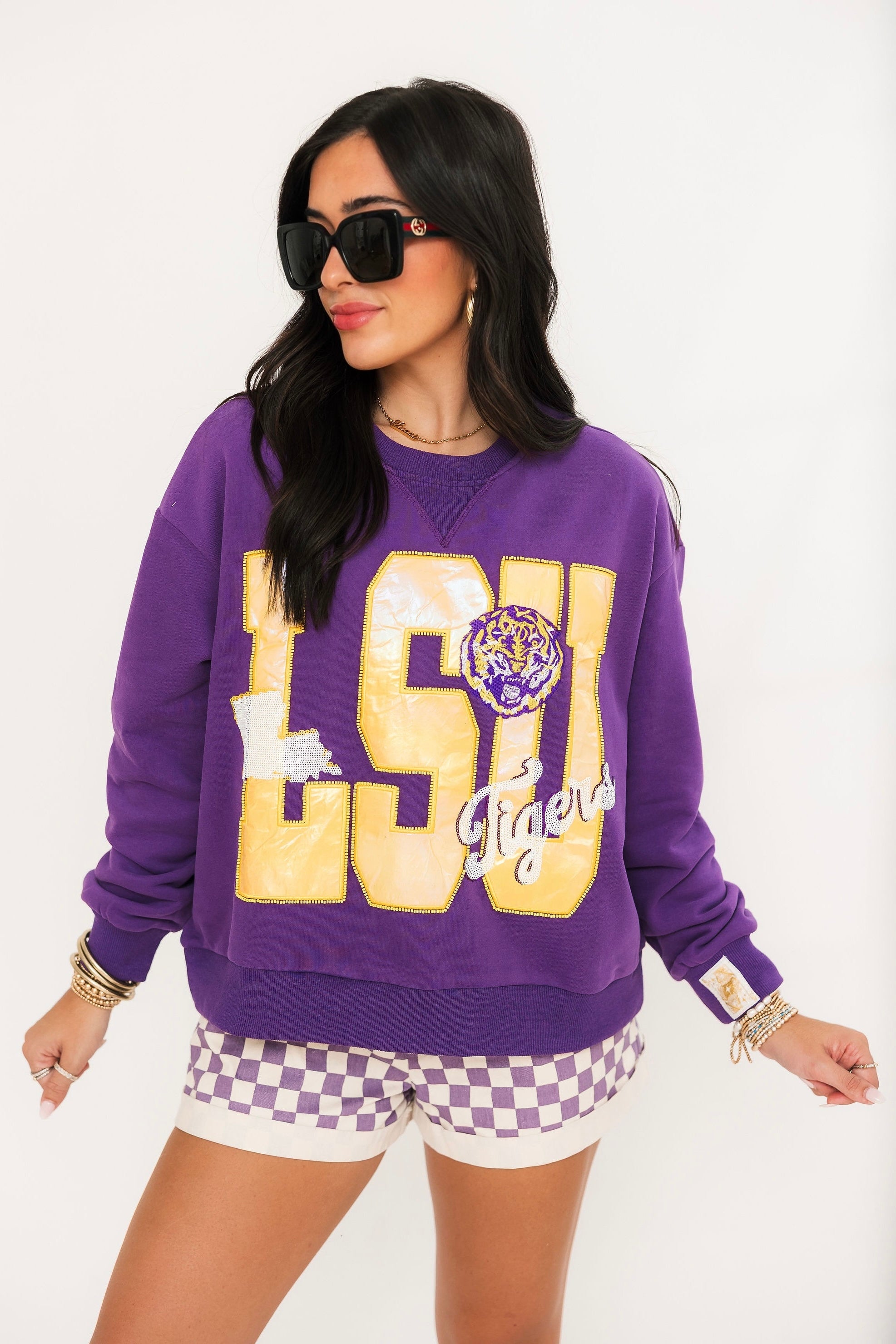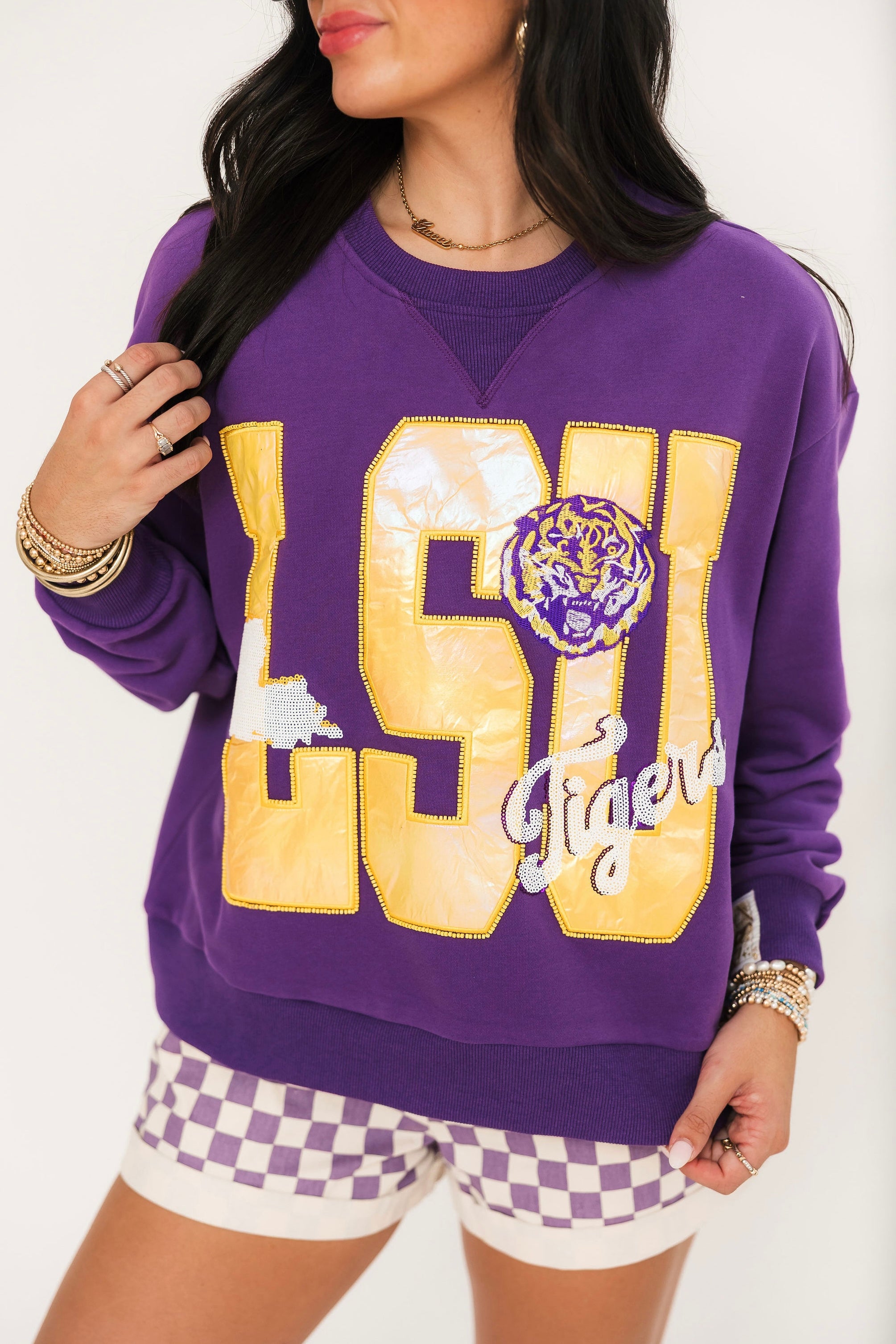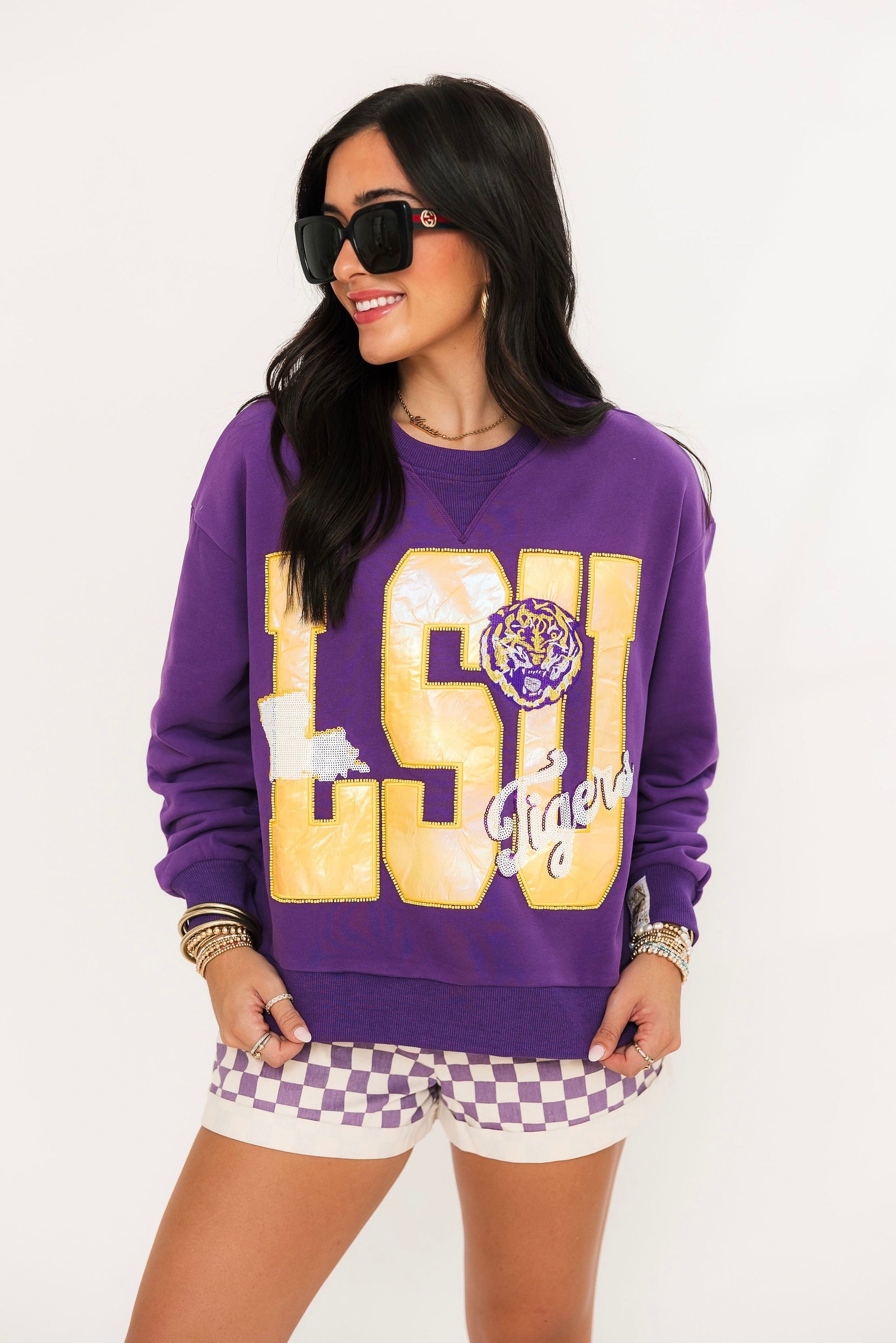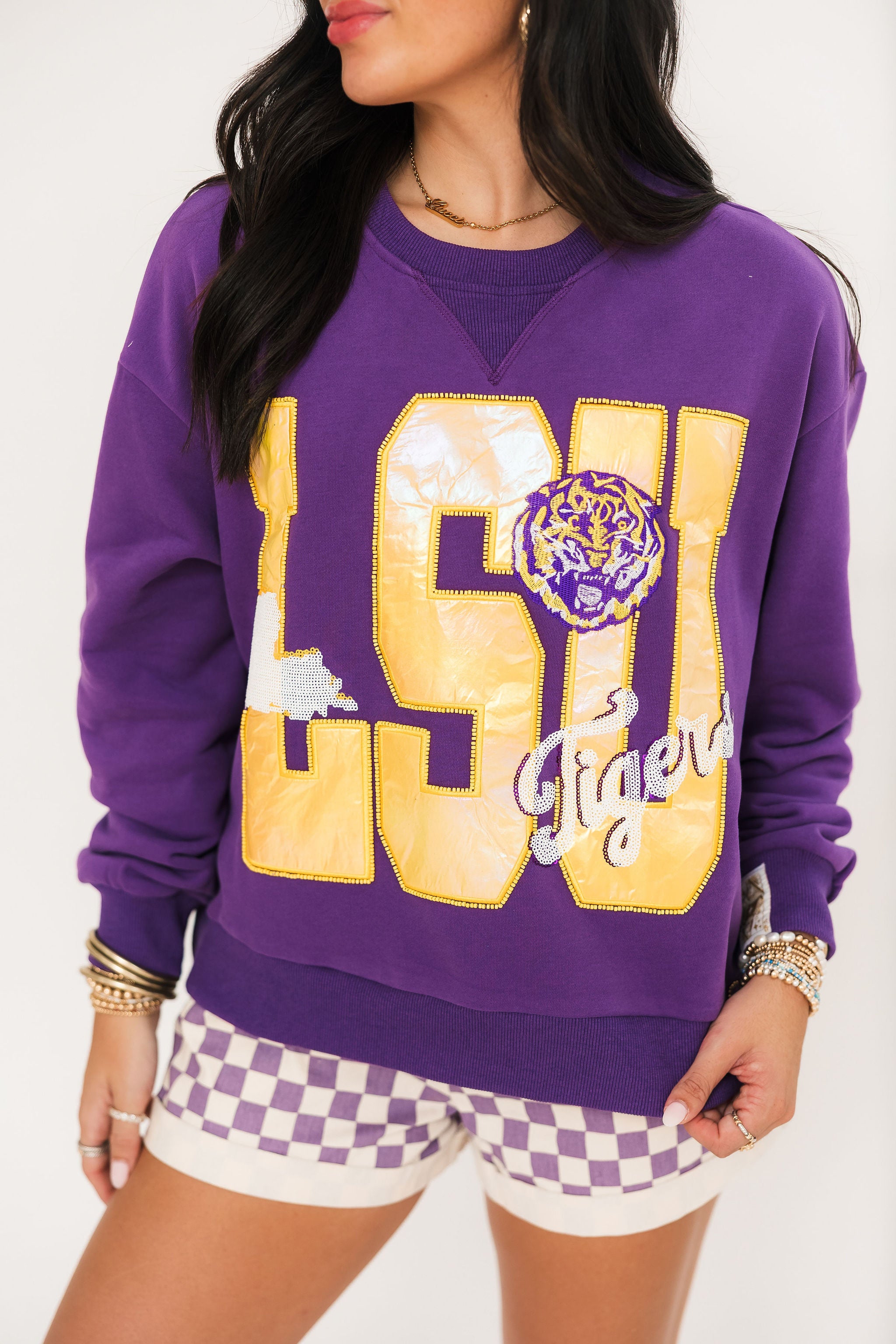 Queen of Sparkles LSU Metallic Icons Sweatshirt 💜💛🐯