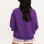 Shine bright in Tiger style! This cozy purple sweatshirt features a bold metallic gold “LSU” across the front, topped with three sparkling icons: the Louisiana state outline, a fierce tiger graphic, and the word “TIGER” — all bringing serious spirit and sparkle. Whether you’re at the tailgate or Tiger Stadium, this crewneck is the ultimate piece for repping LSU in standout style. Sage is wearing an XS.