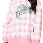 Licensed Pink & White Gingham Glinda Crown Sweater | Queen Of Sparkles