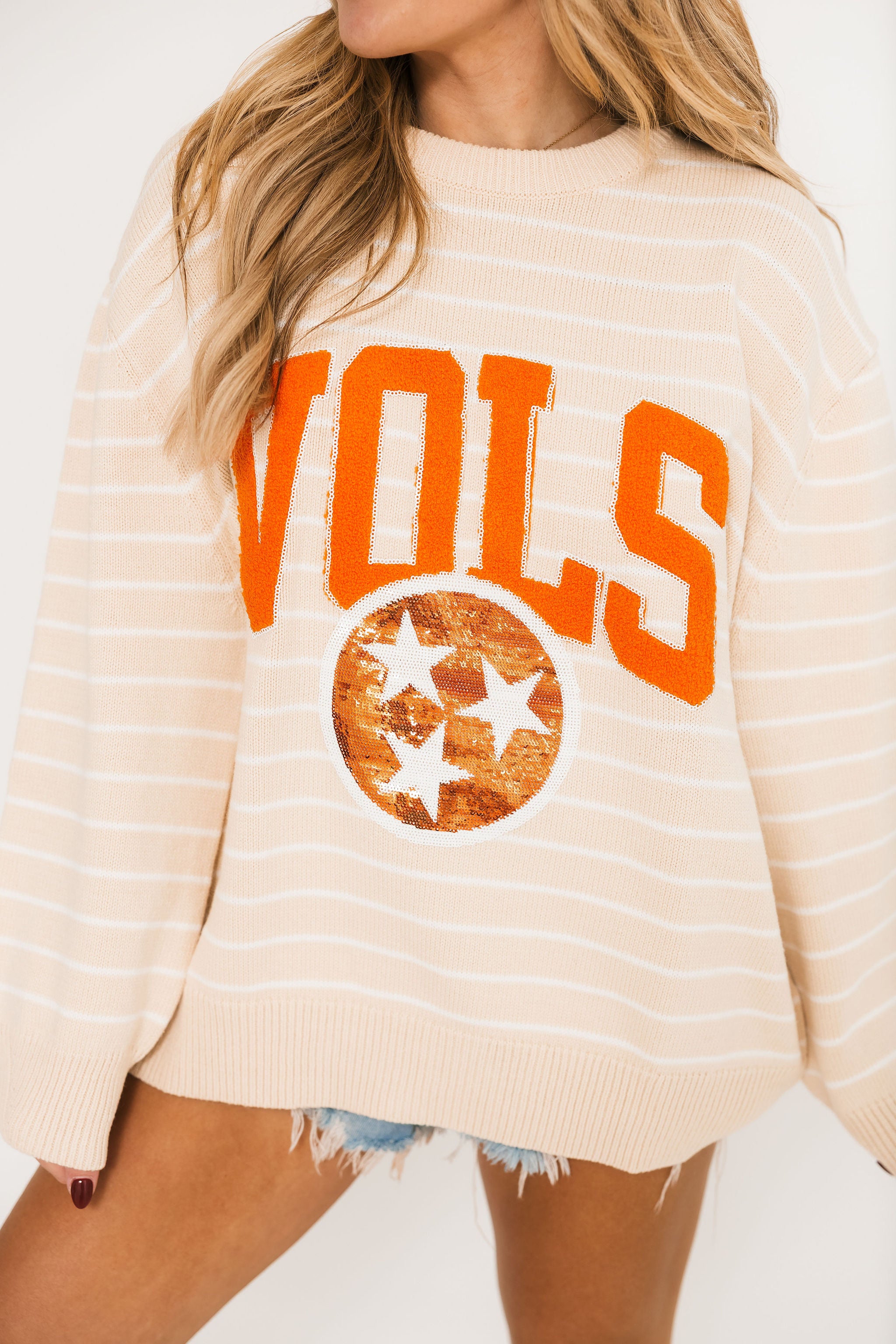 Licensed Tennessee Beige Stripe Vintage Team Sweater | Queen Of Sparkles
