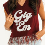 Licensed Texas A&M 'Gig Em' Feather Bottom Tank Sweater | Queen Of Sparkles