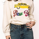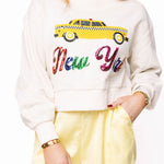 Show off your city style with the Queen Of Sparkles Light Beige 'New York' City Icon Sweatshirt. Designed with a relaxed fit, crewneck, and long sleeves, it’s the perfect mix of comfort and trend. Finished with a fun New York taxi graphic, this piece brings a touch of sparkle to your everyday look.