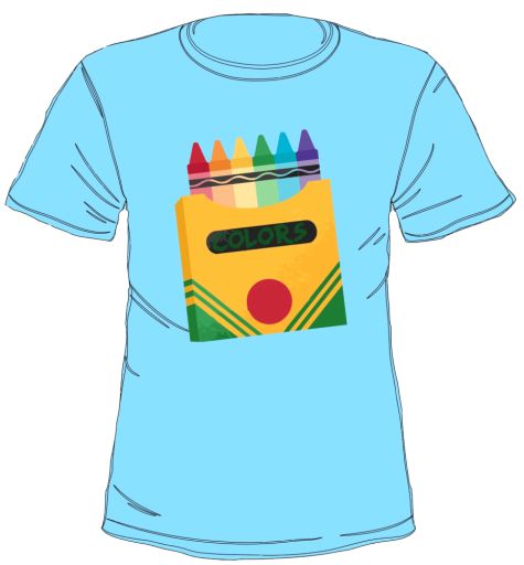 - Light blue tee featuring a fun, sparkly crayon box graphic on the front for cheerful, creative vibes