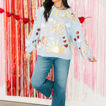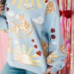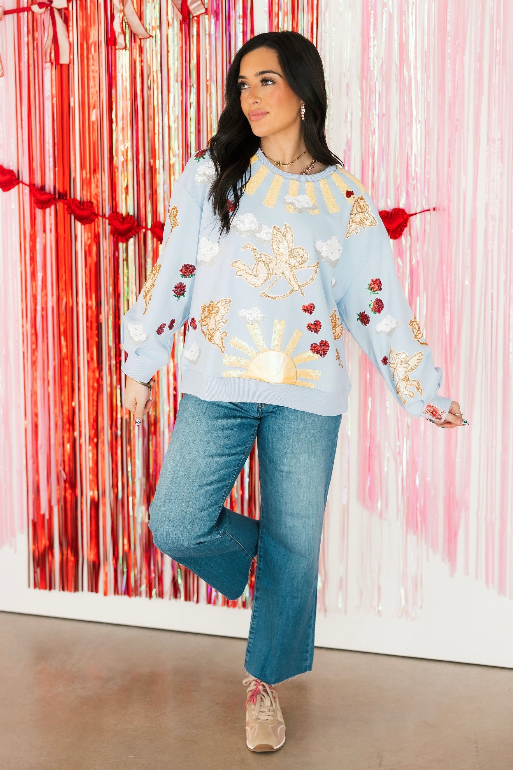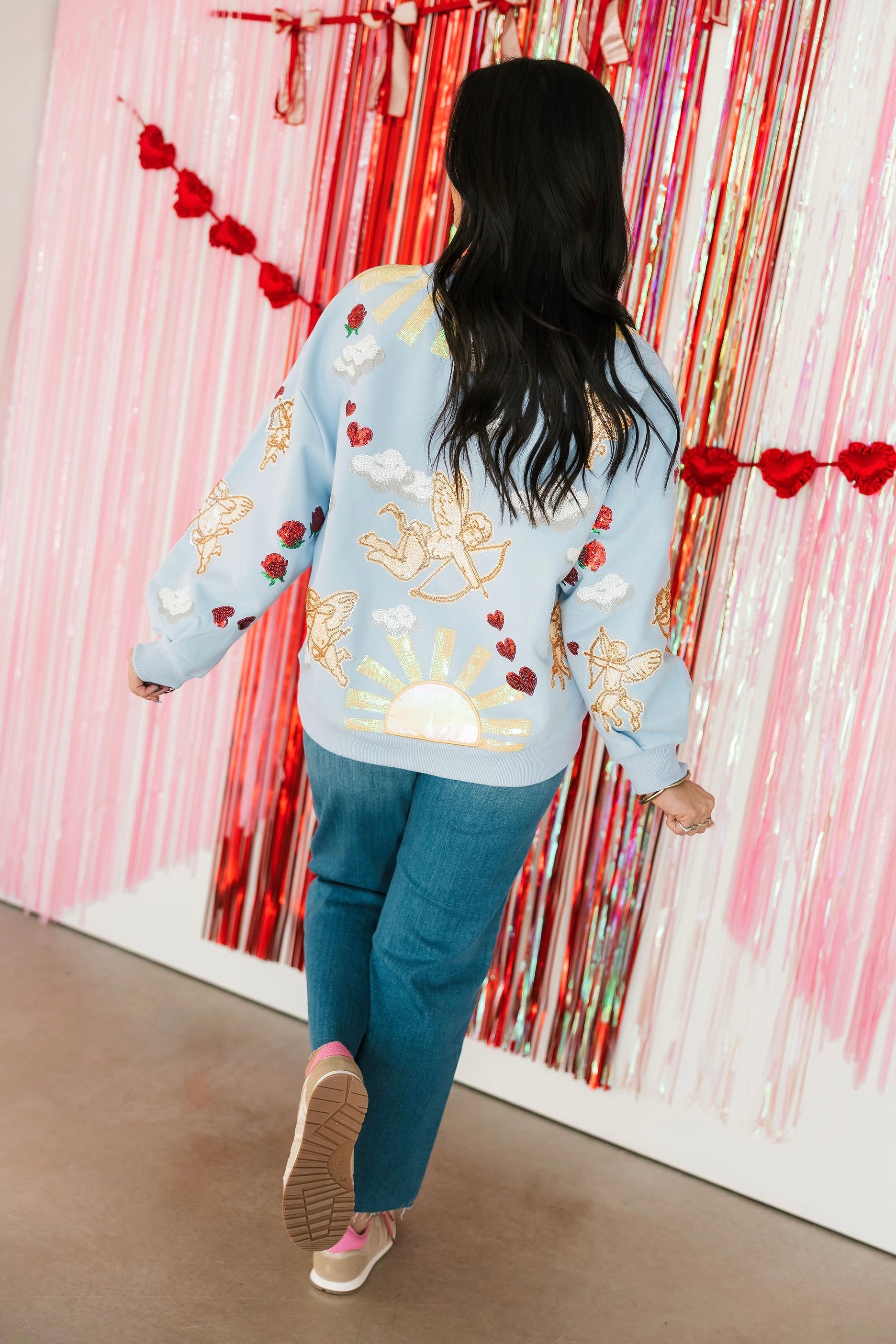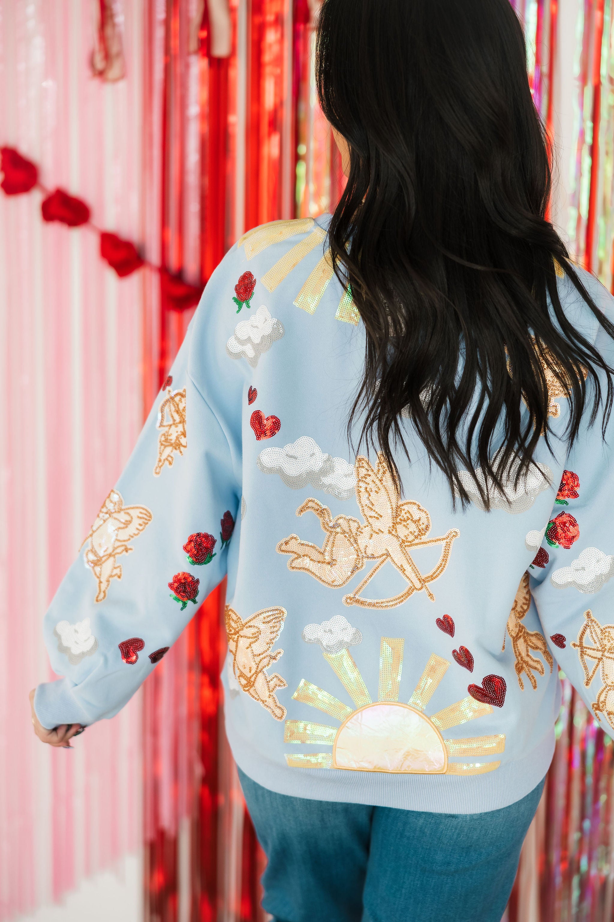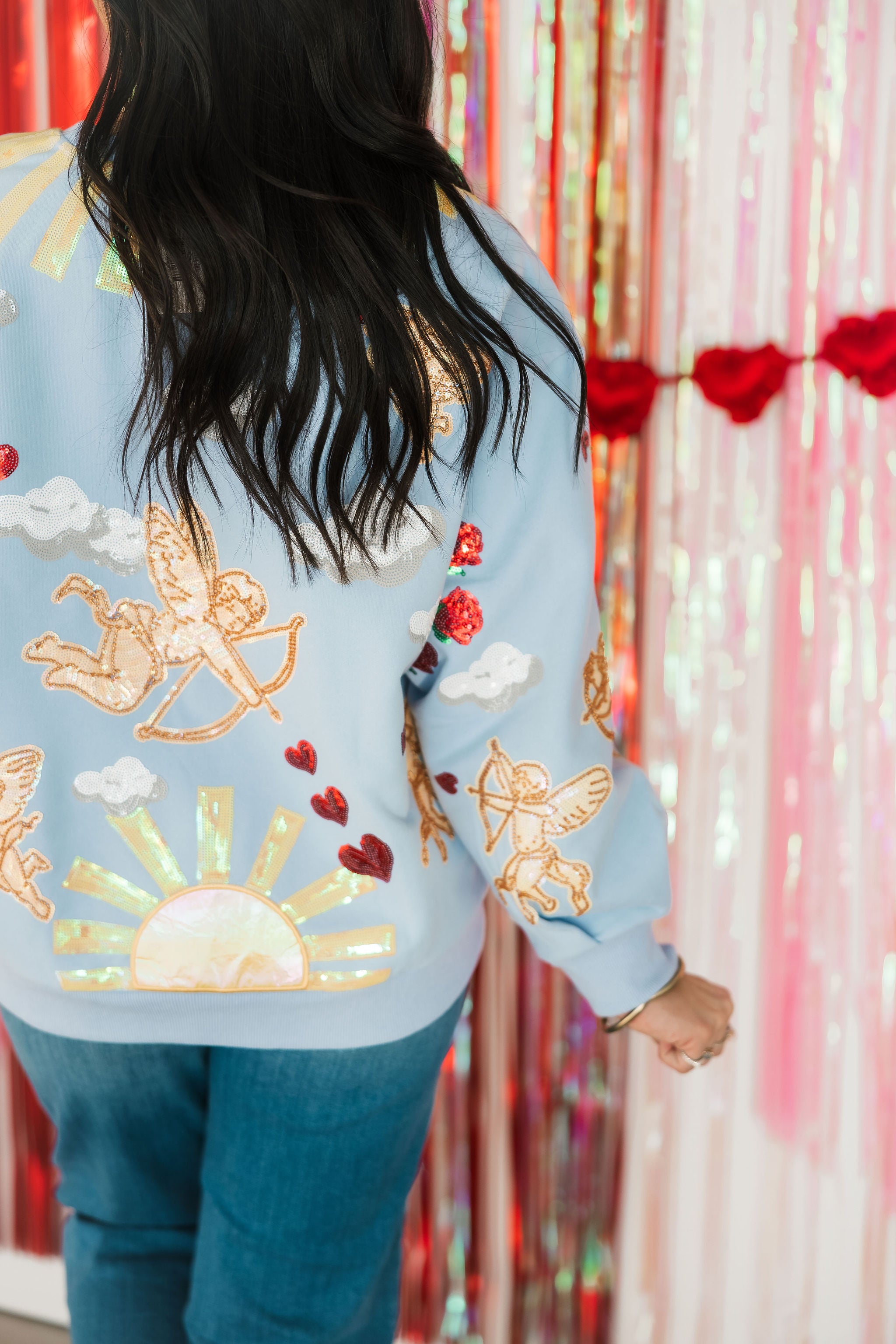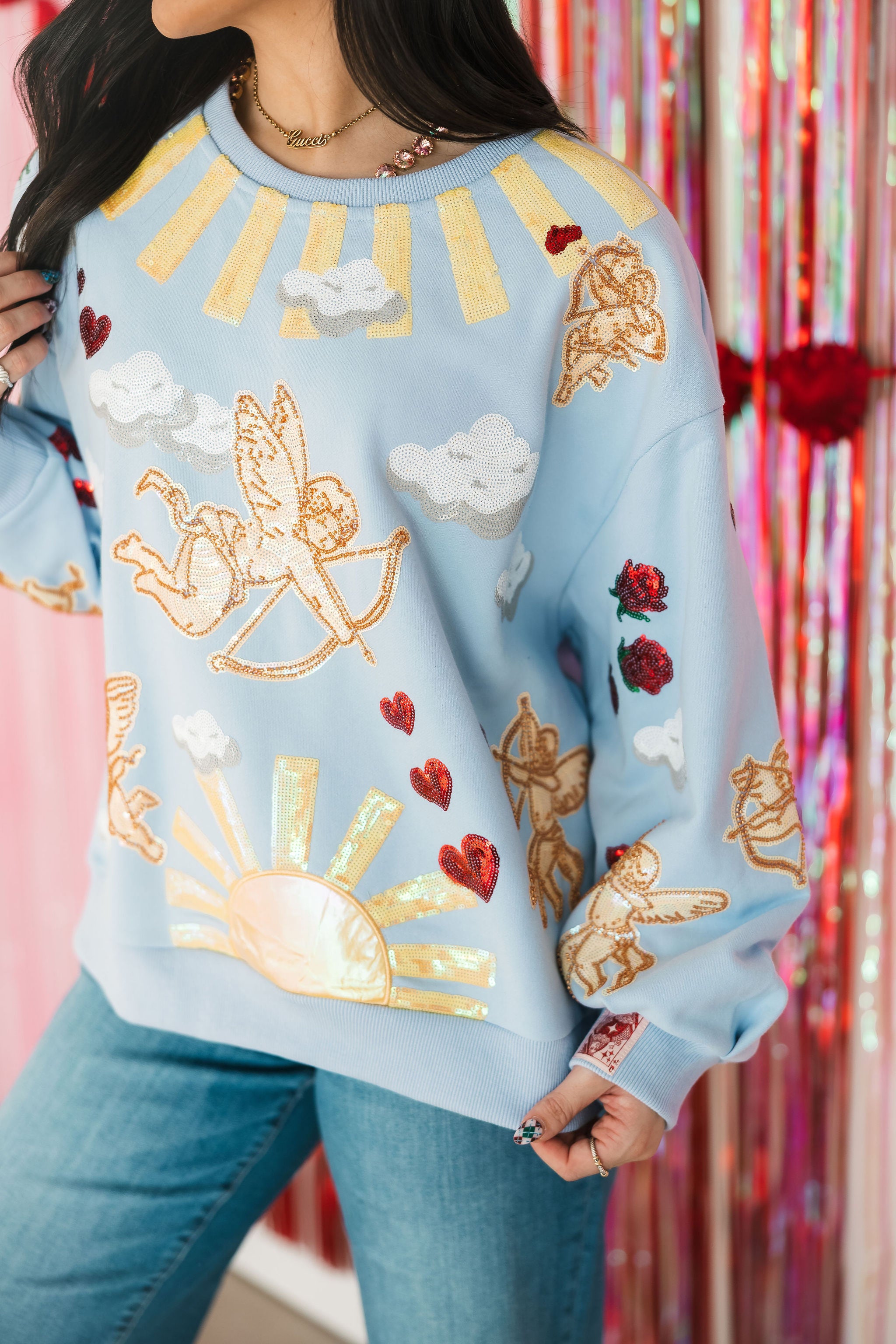 Light Blue Cupid In The Sky Sweatshirt | Queen Of Sparkles