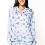 Light Blue Multi Christmas Icon Long Sleeve Pj Top | Queen Of Sparkles