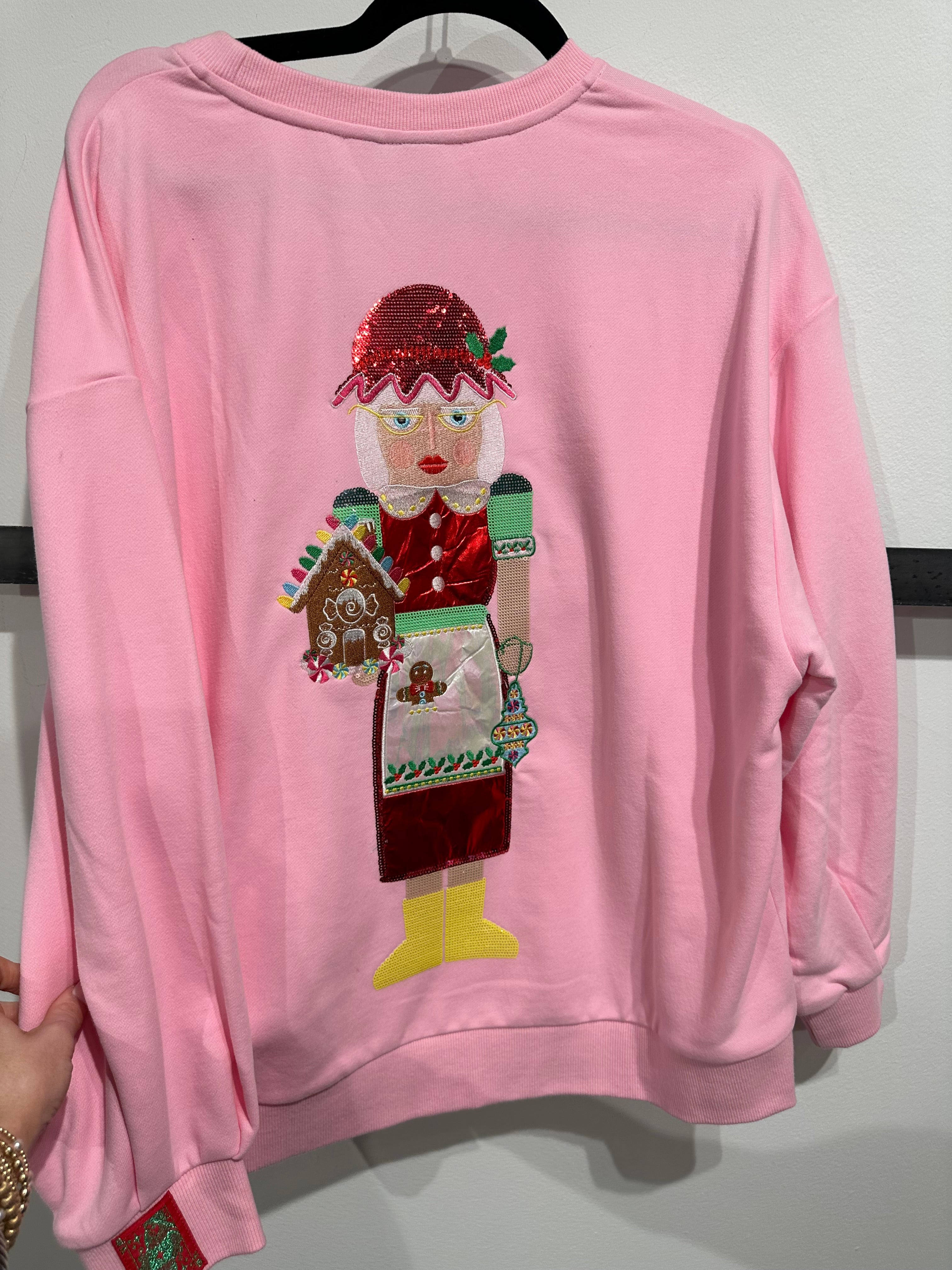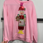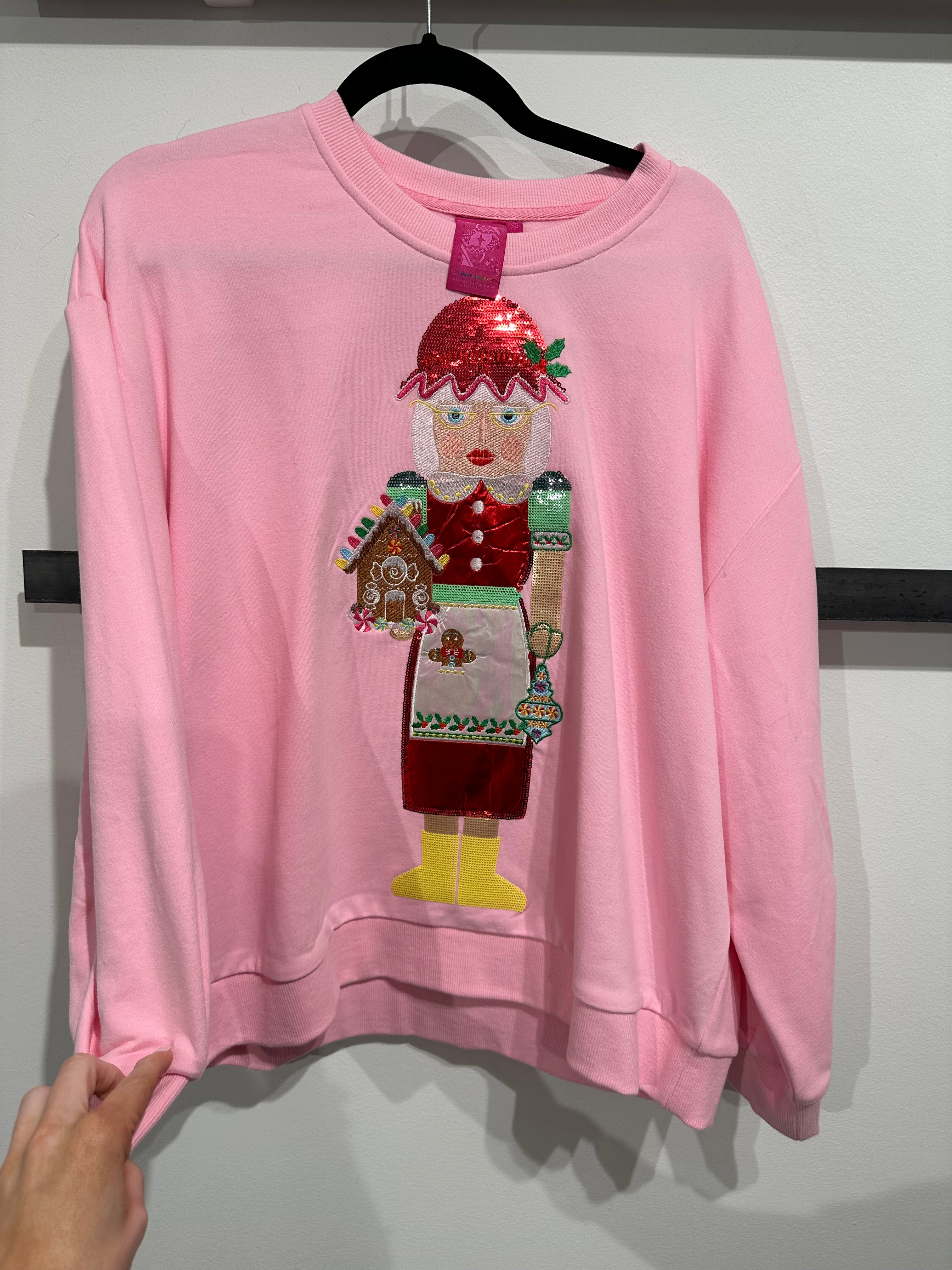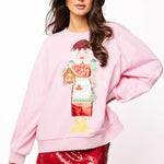 The Queen Of Sparkles Light Pink Mrs. Clause Sweatshirt features a relaxed fit with a classic crewneck and long sleeves. Decorated with a sparkling Mrs. Clause graphic, this cozy piece is perfect for spreading holiday cheer, casual festive outings, or adding a whimsical touch to your seasonal wardrobe.
