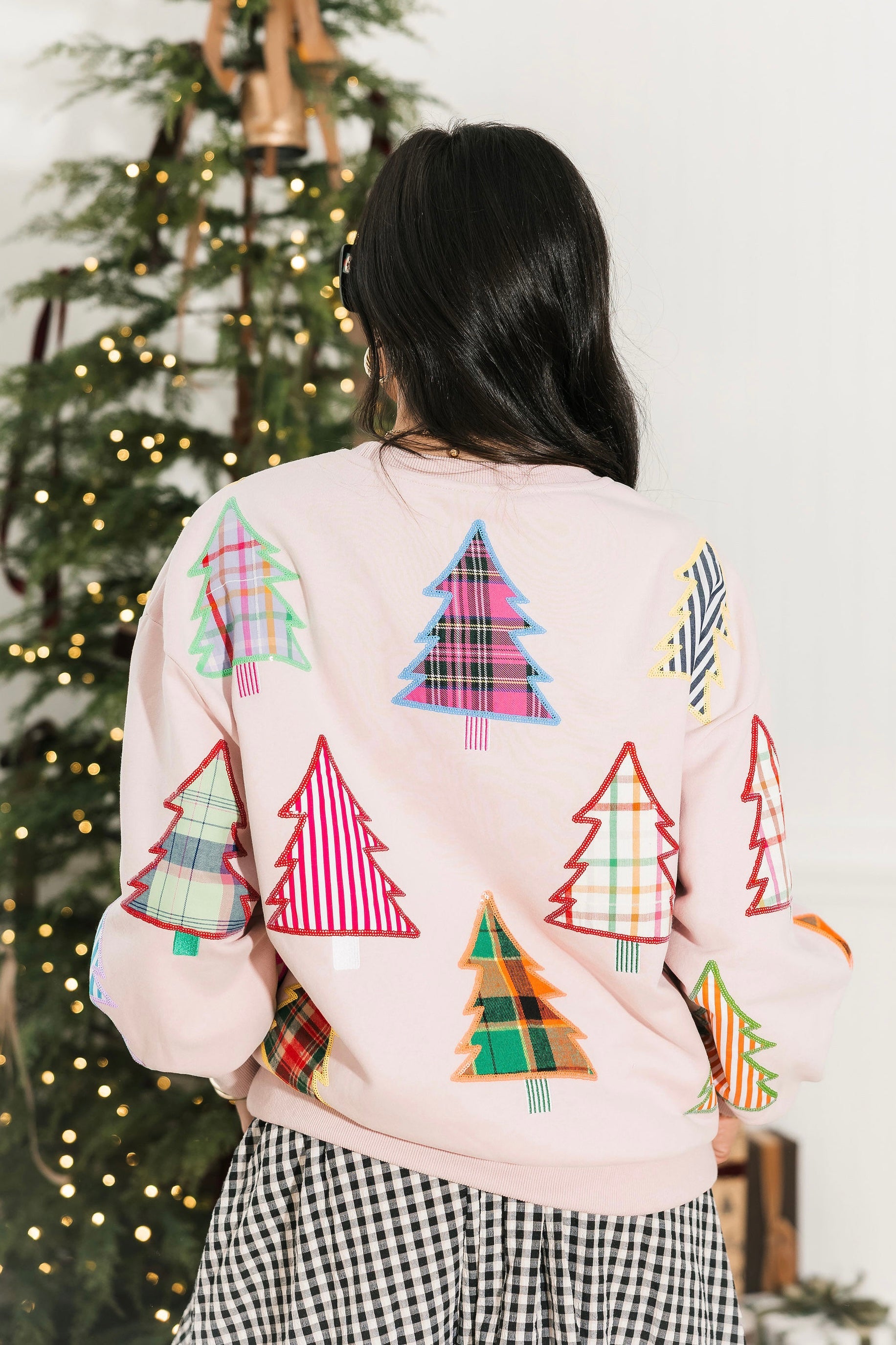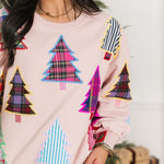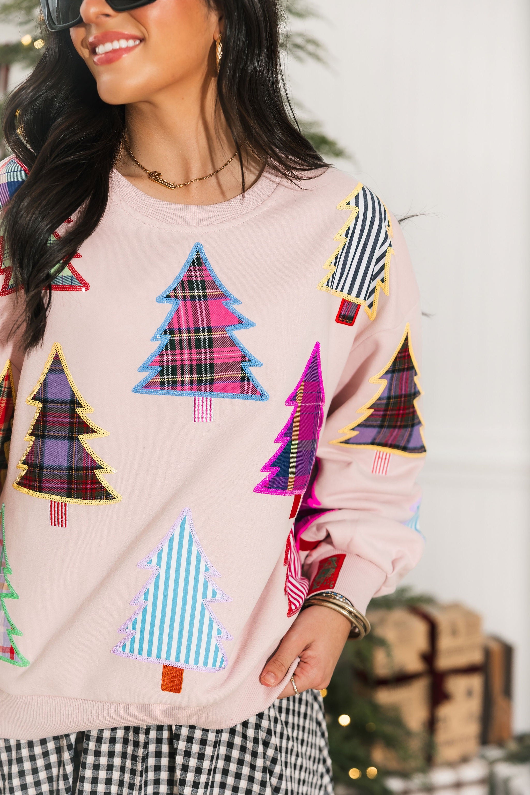 Light Pink Multi Plaid & Stripe Christmas Tree Sweatshirt | Queen Of Sparkles