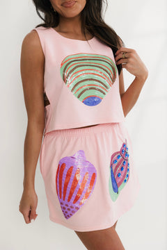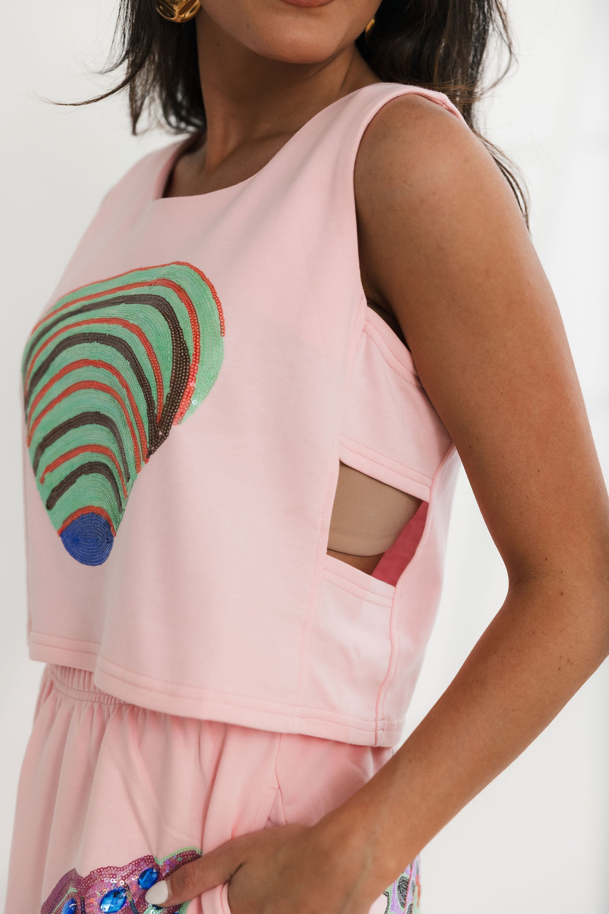 Light Pink Multi Shell Cut Out Side Tank | Queen Of Sparkles