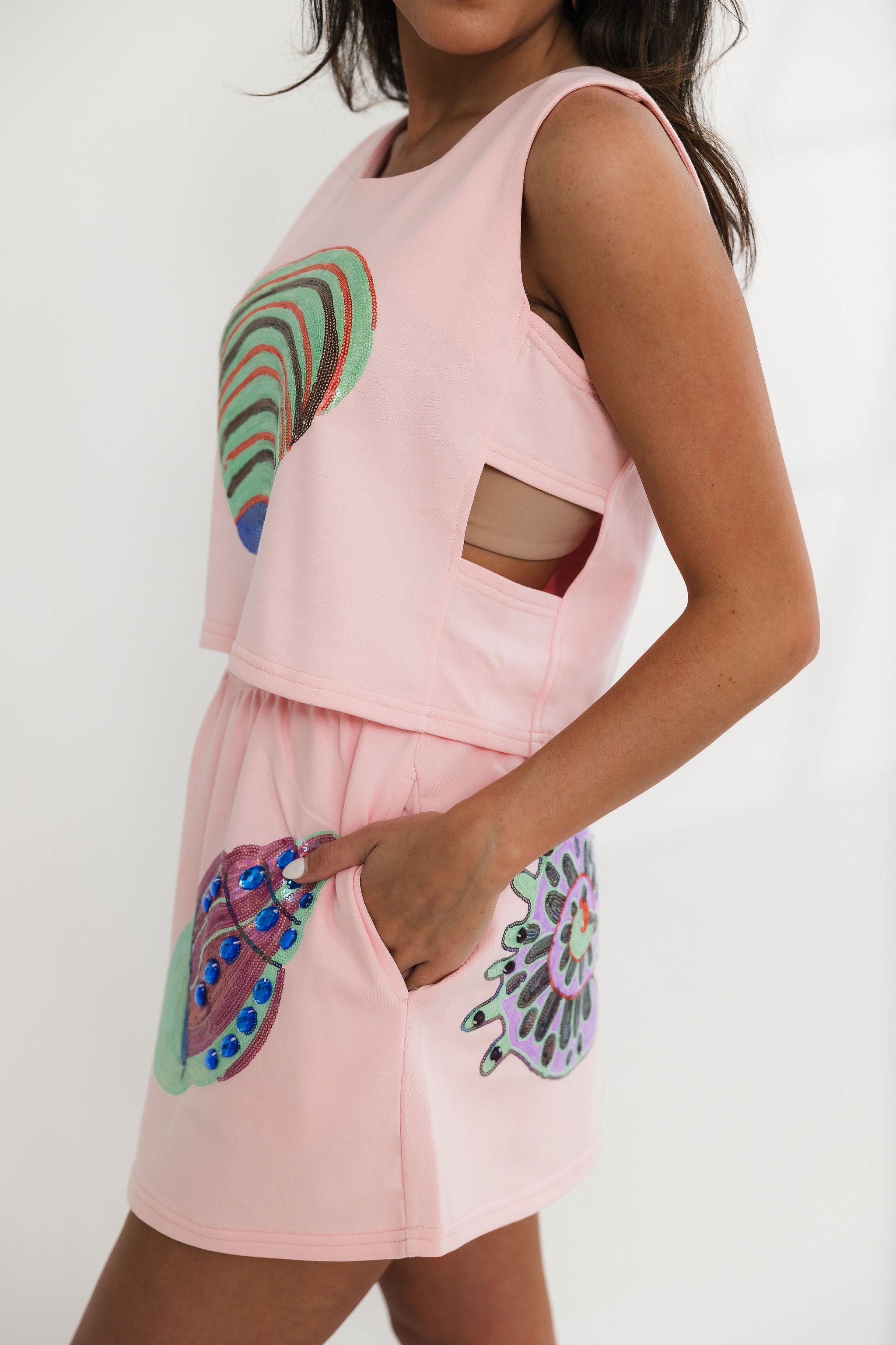 Queen Of Sparkles Light Pink Multi Shell Skort