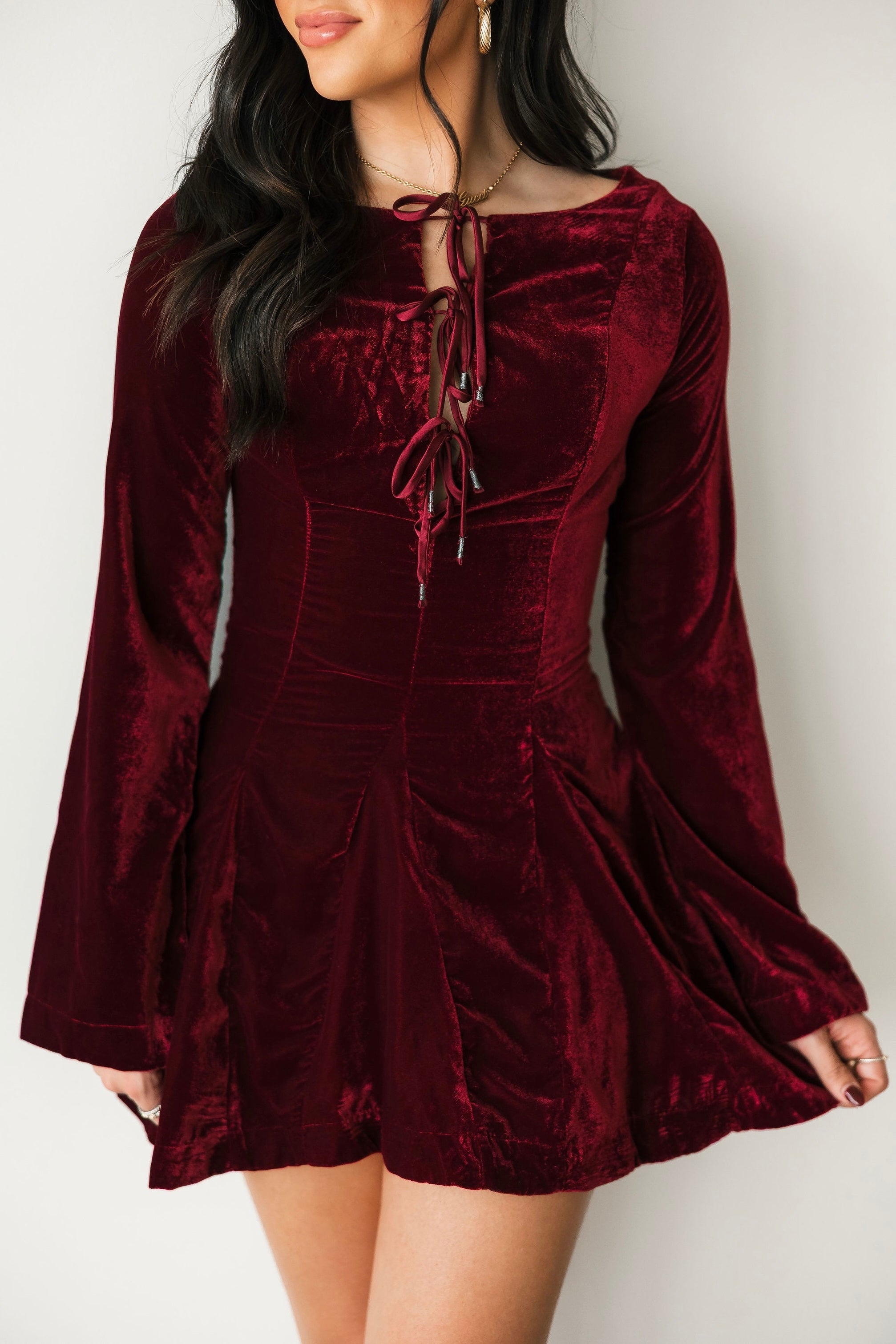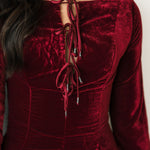 The Linney Velvet Mini in Cabernet is a dreamy blend of luxe texture and timeless charm. Crafted in a deep cabernet velvet, this relaxed-fit mini features long sleeves and a sweet tie-bow detail at the front for a feminine finish. The mini length adds just the right amount of fun while the rich hue brings all the seasonal elegance. Soft, flattering, and easy to style — it’s a standout piece you’ll want to wear again and again. Sage is wearing a 2.