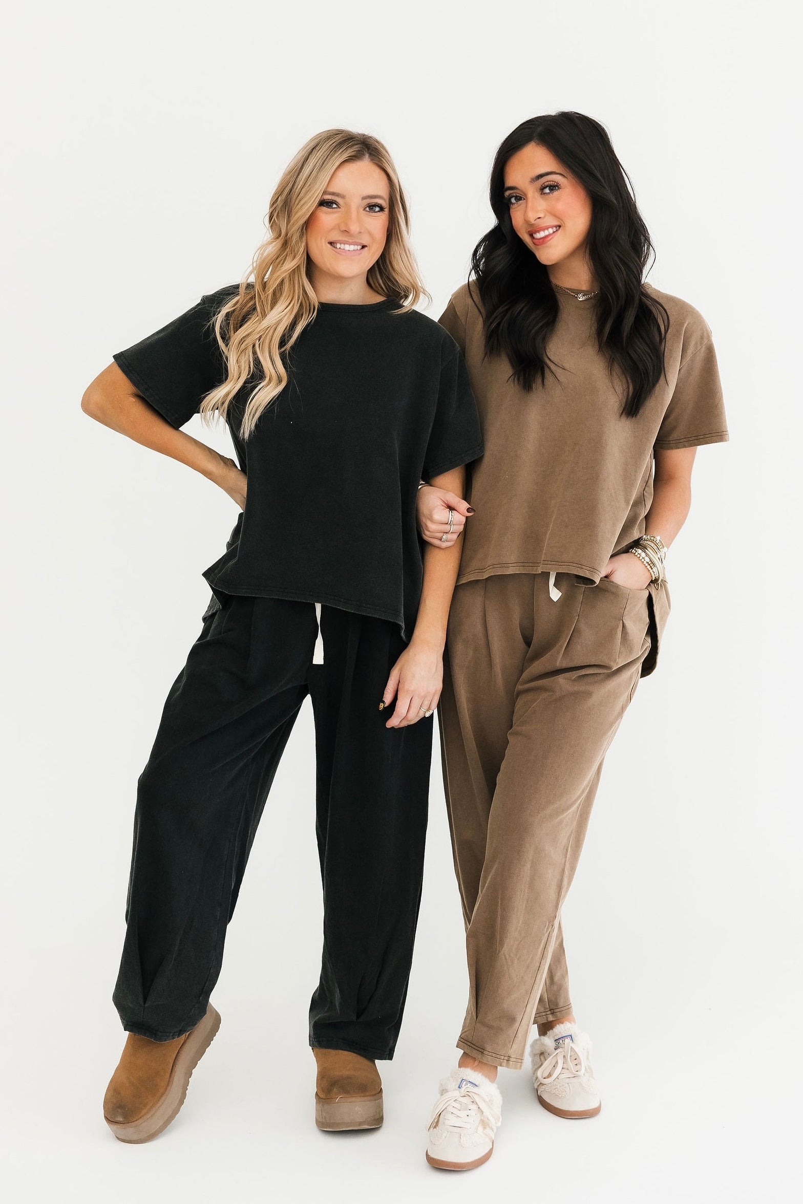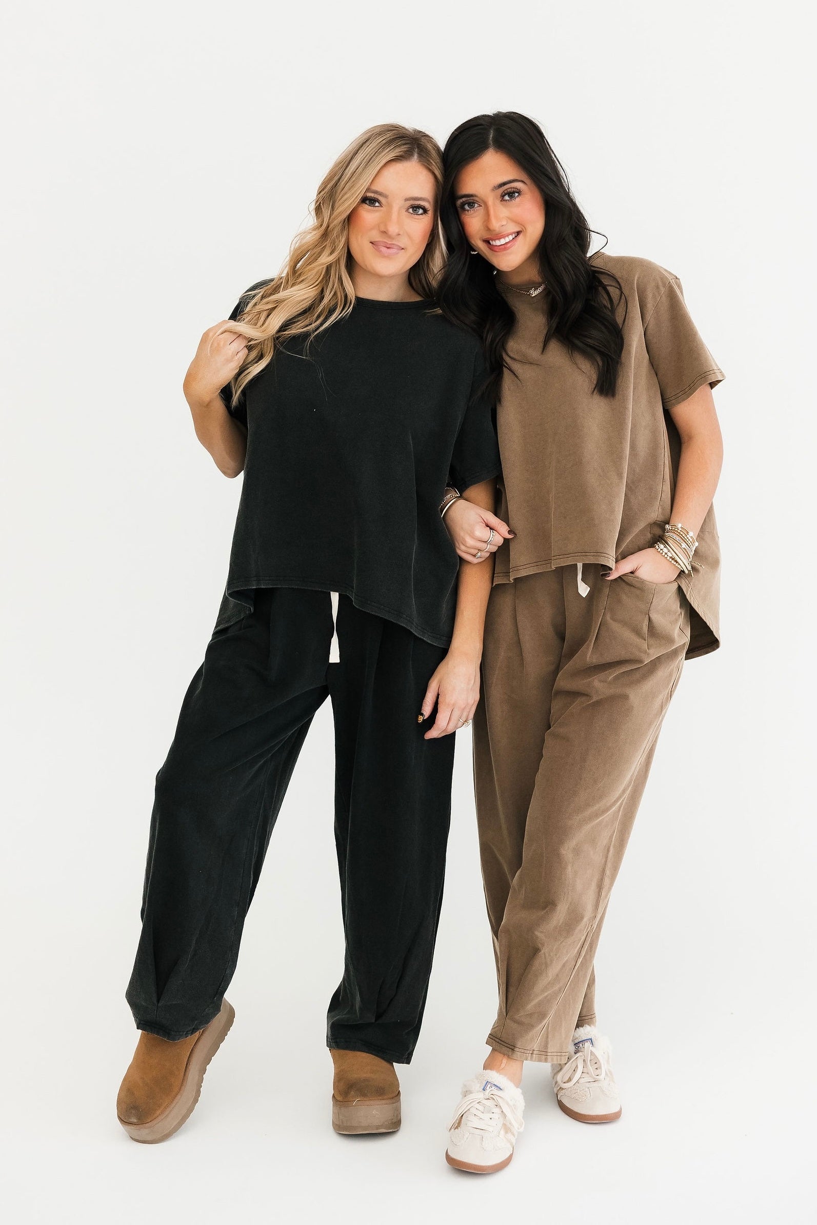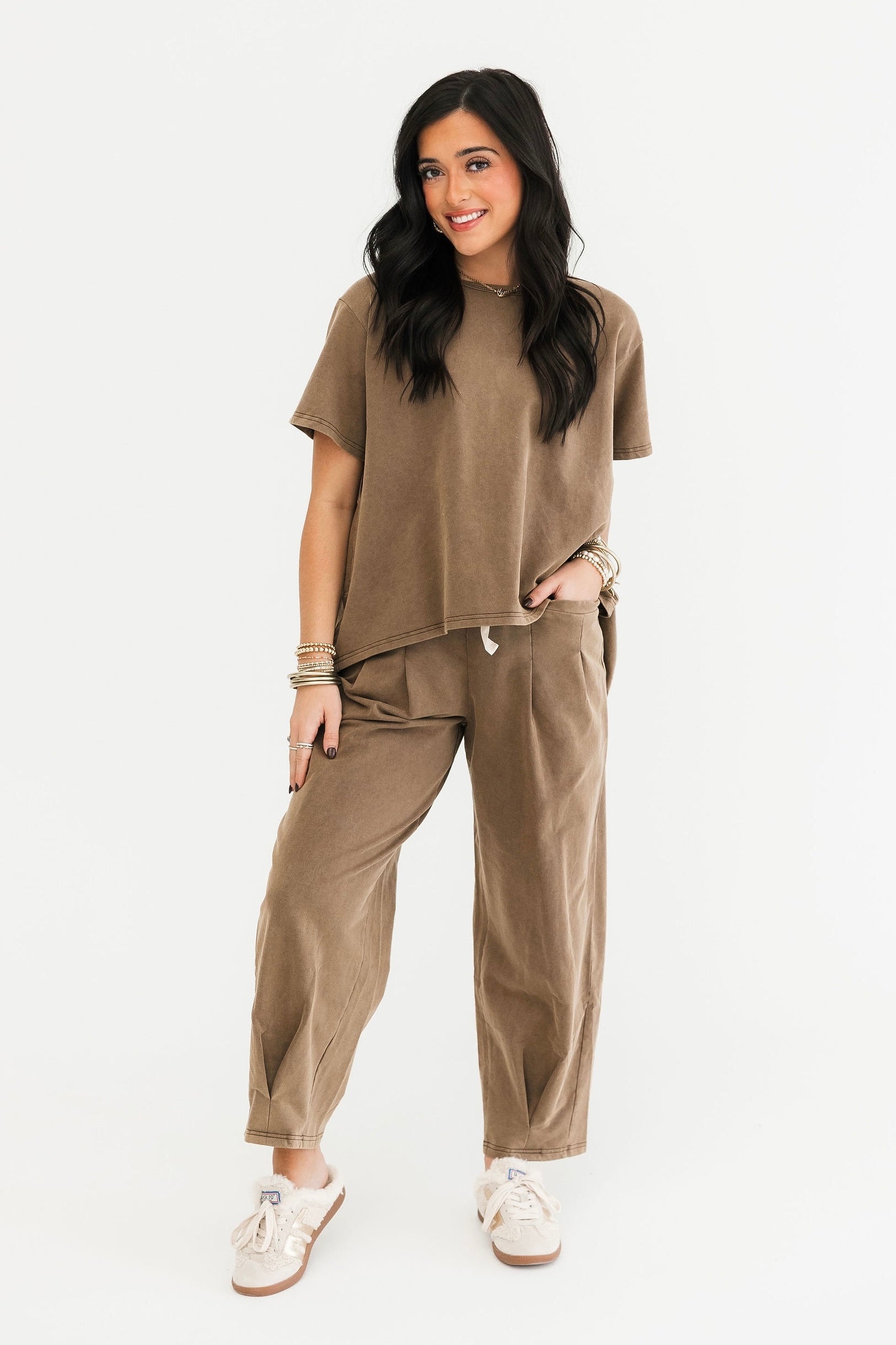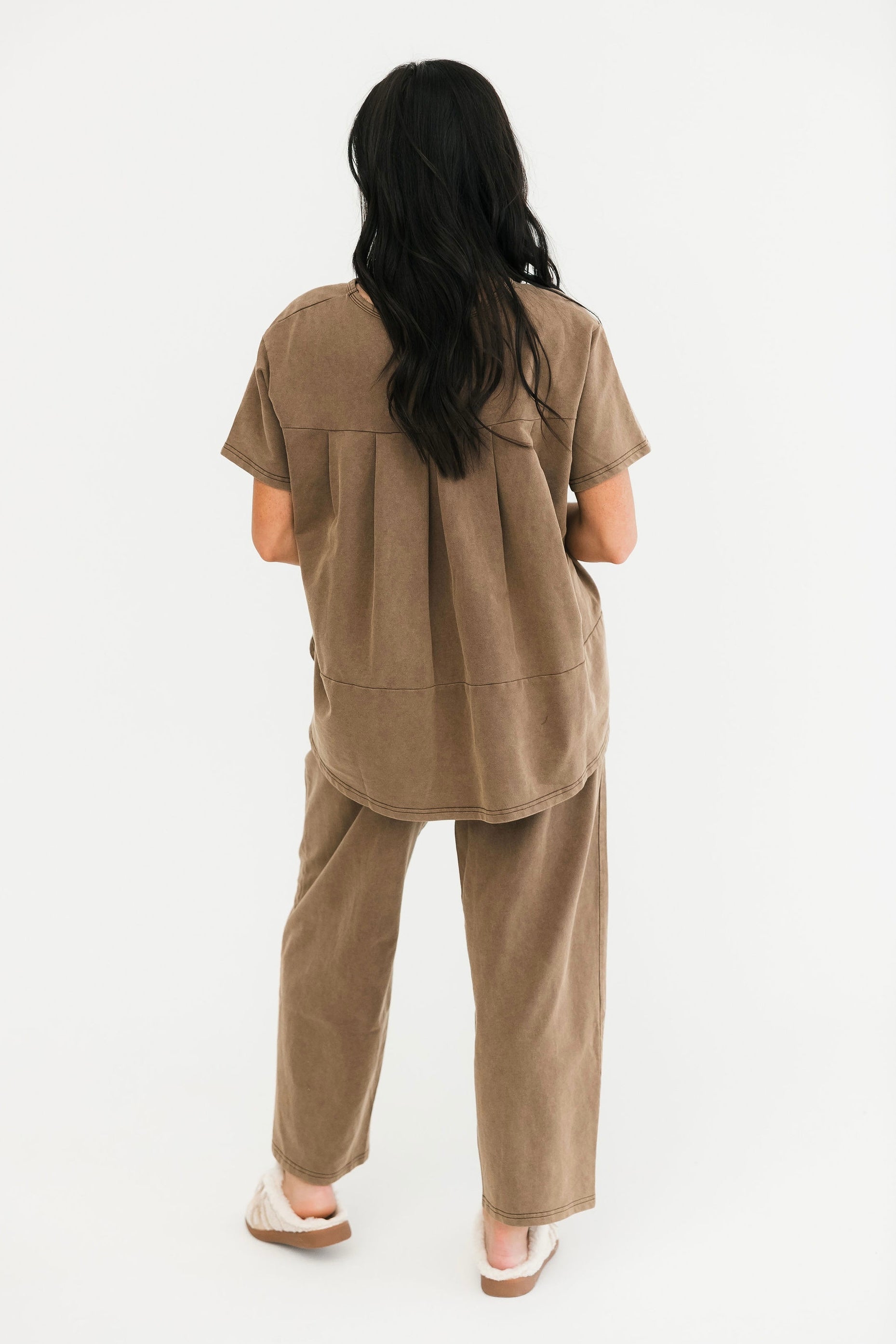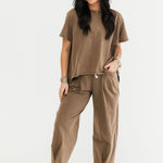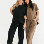 The Luxe Leisure Set is a dreamy blend of softness and sophistication. The top features an oversized silhouette with subtle back pleats and a flattering hi-lo hem that gives it that perfect relaxed flow. The matching bottoms offer a wide-leg fit with an elastic drawstring waist for custom comfort and oversized pockets for that laid-back, luxe feel. Wear the pieces together for a polished cozy moment or mix and match with your wardrobe favorites — either way, it’s an instant outfit upgrade. Sage is wearing a small.