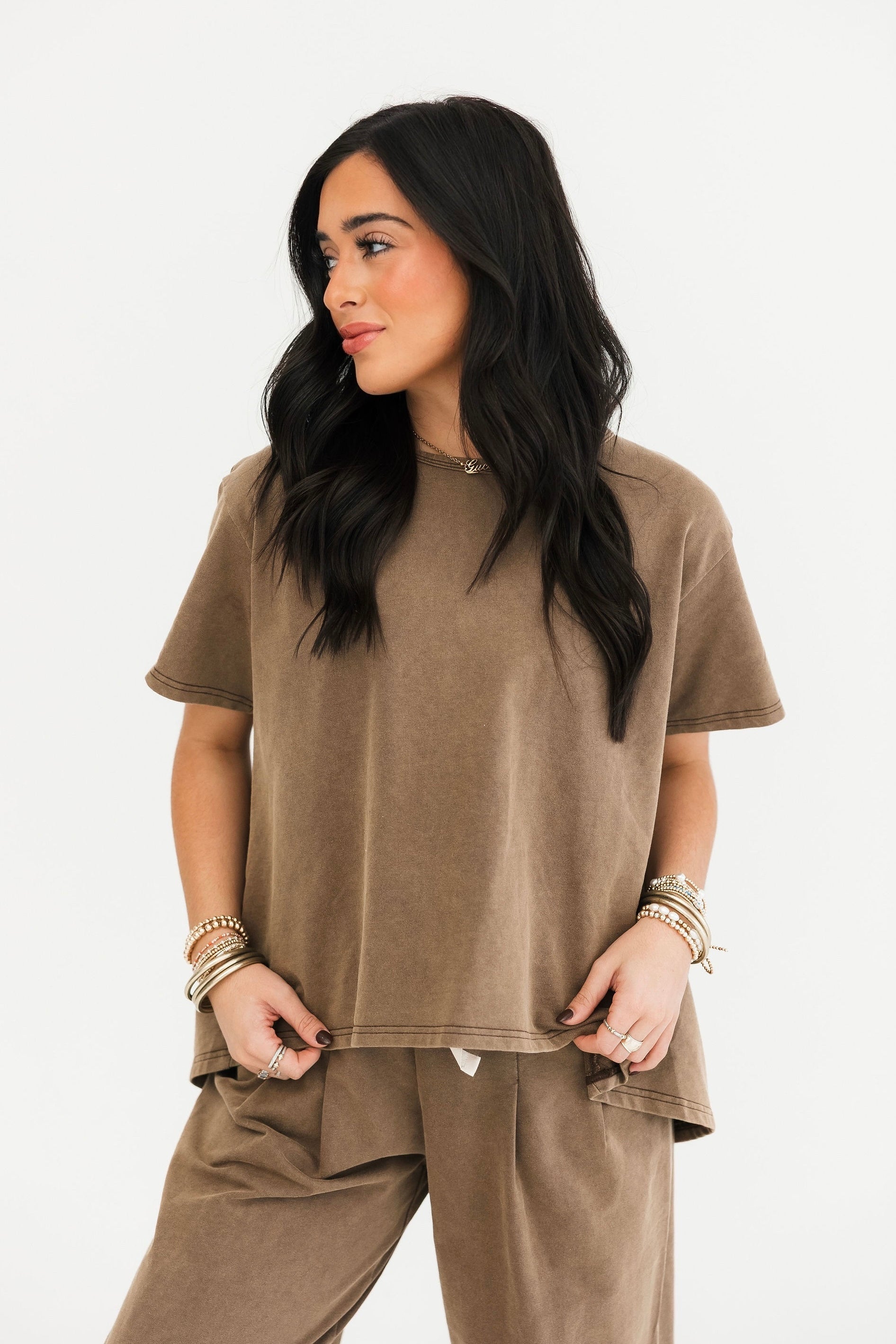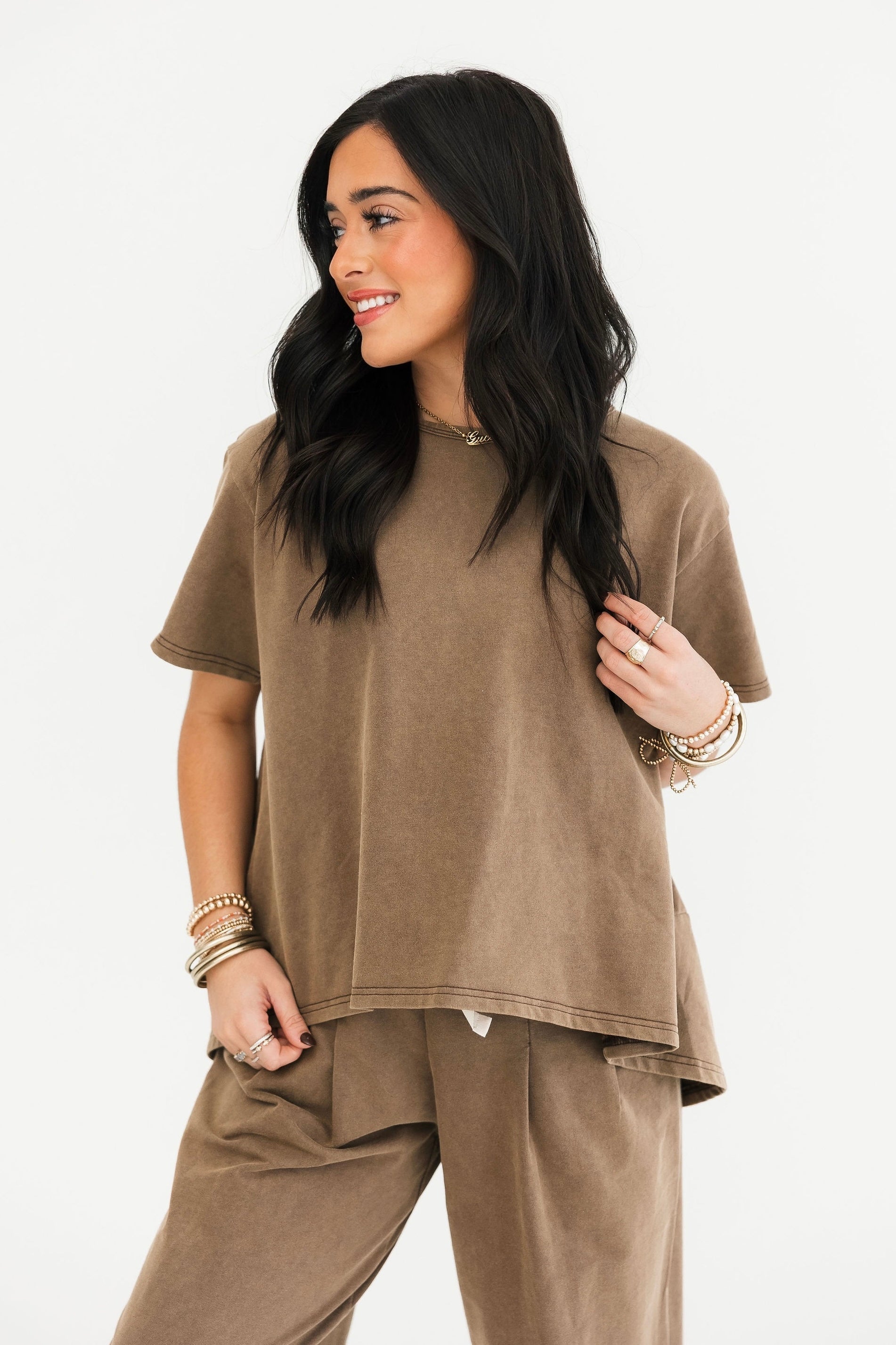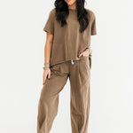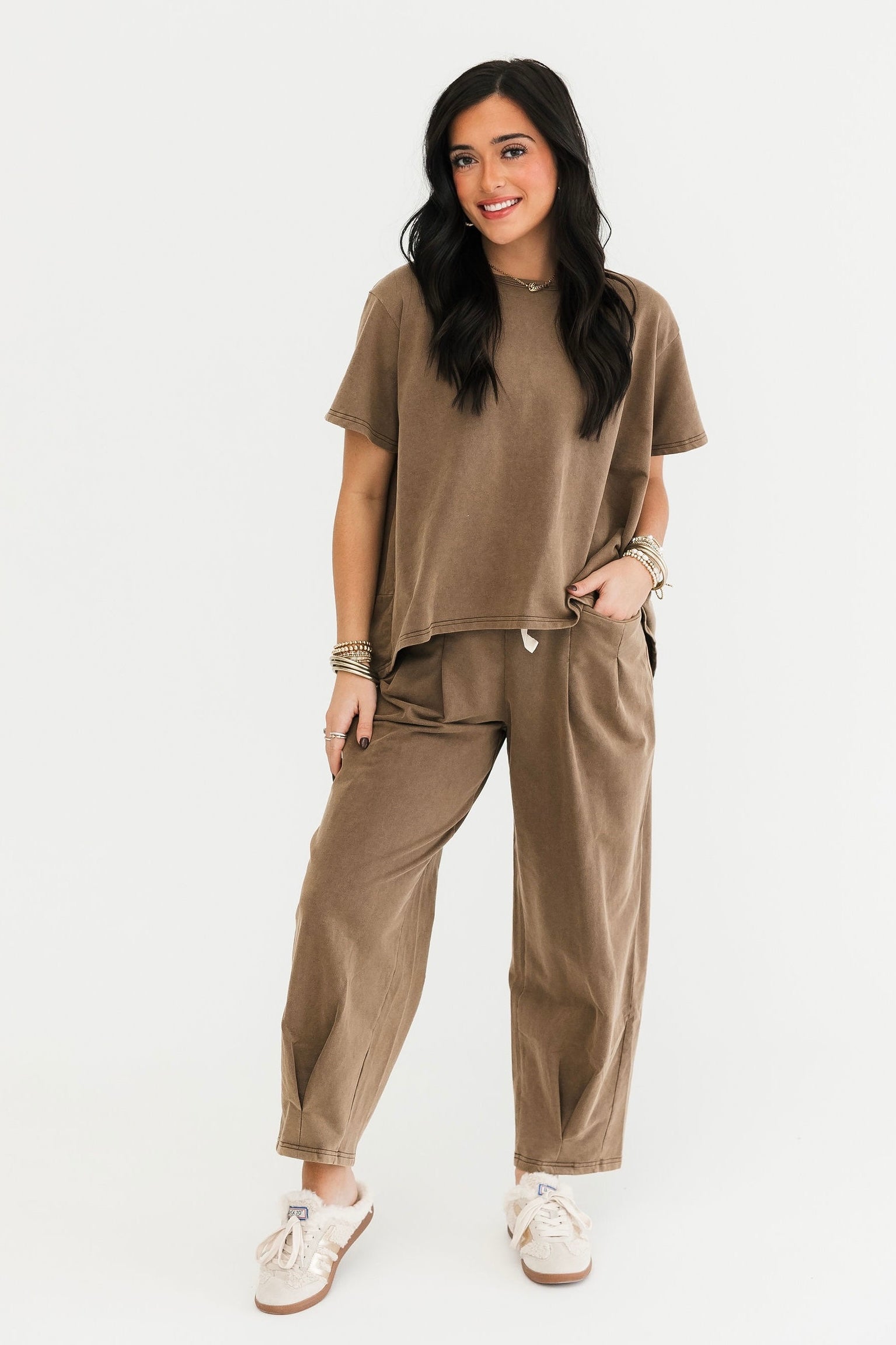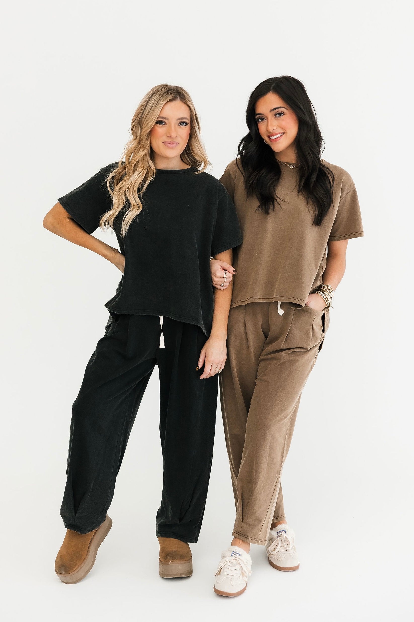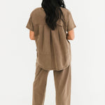 The Luxe Leisure Set is a dreamy blend of softness and sophistication. The top features an oversized silhouette with subtle back pleats and a flattering hi-lo hem that gives it that perfect relaxed flow. The matching bottoms offer a wide-leg fit with an elastic drawstring waist for custom comfort and oversized pockets for that laid-back, luxe feel. Wear the pieces together for a polished cozy moment or mix and match with your wardrobe favorites — either way, it’s an instant outfit upgrade. Sage is wearing a small.