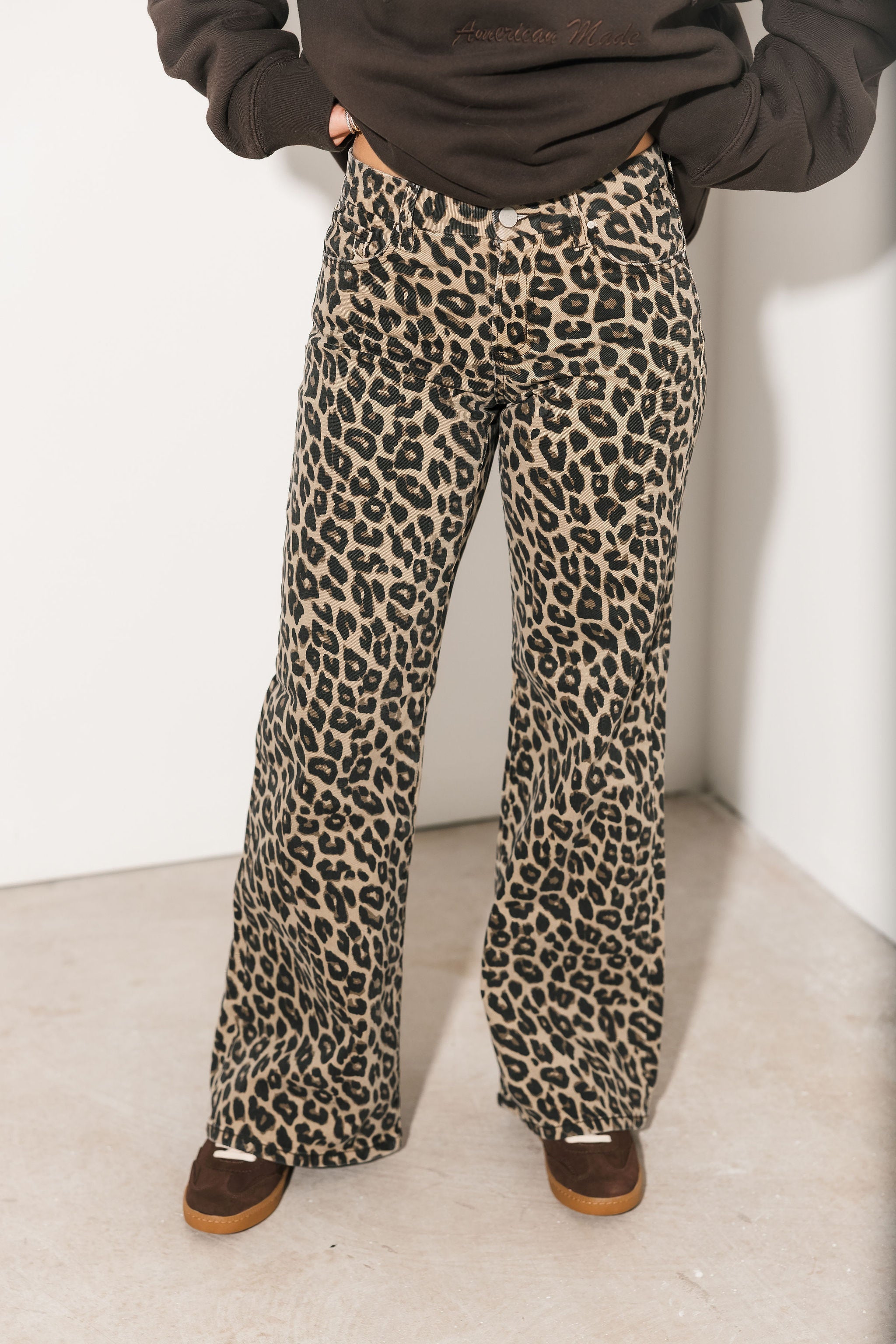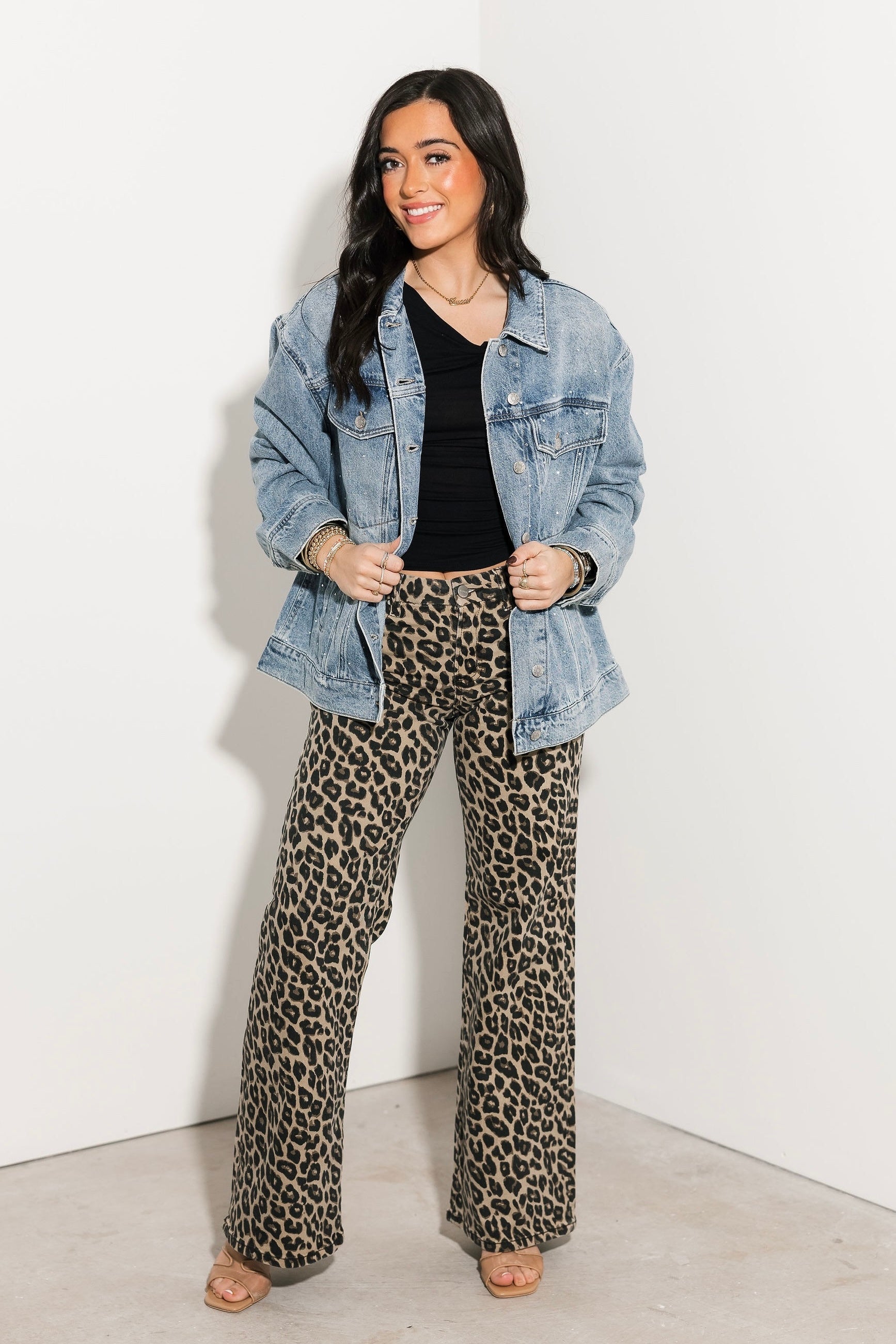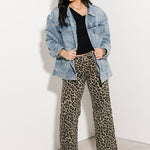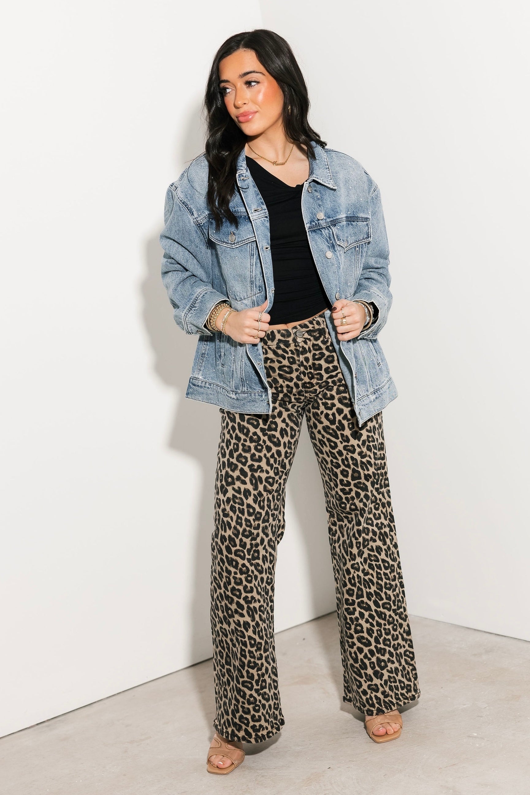 The Risen Mali Wide Leg Jeans feature a flattering mid-rise waist and wide-leg silhouette, finished with an all-over leopard print. Comfortable, stylish, and eye-catching, they’re perfect for adding a bold, trendy touch to any outfit.