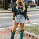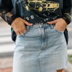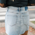 A classic denim mini with a lived-in vibe, this skirt features a faded medium wash, a flattering high-rise waist, and a subtle front seam for vintage-inspired charm. The rigid-yet-stretchy fabric gives you that true denim look with just enough comfort for all-day wear.