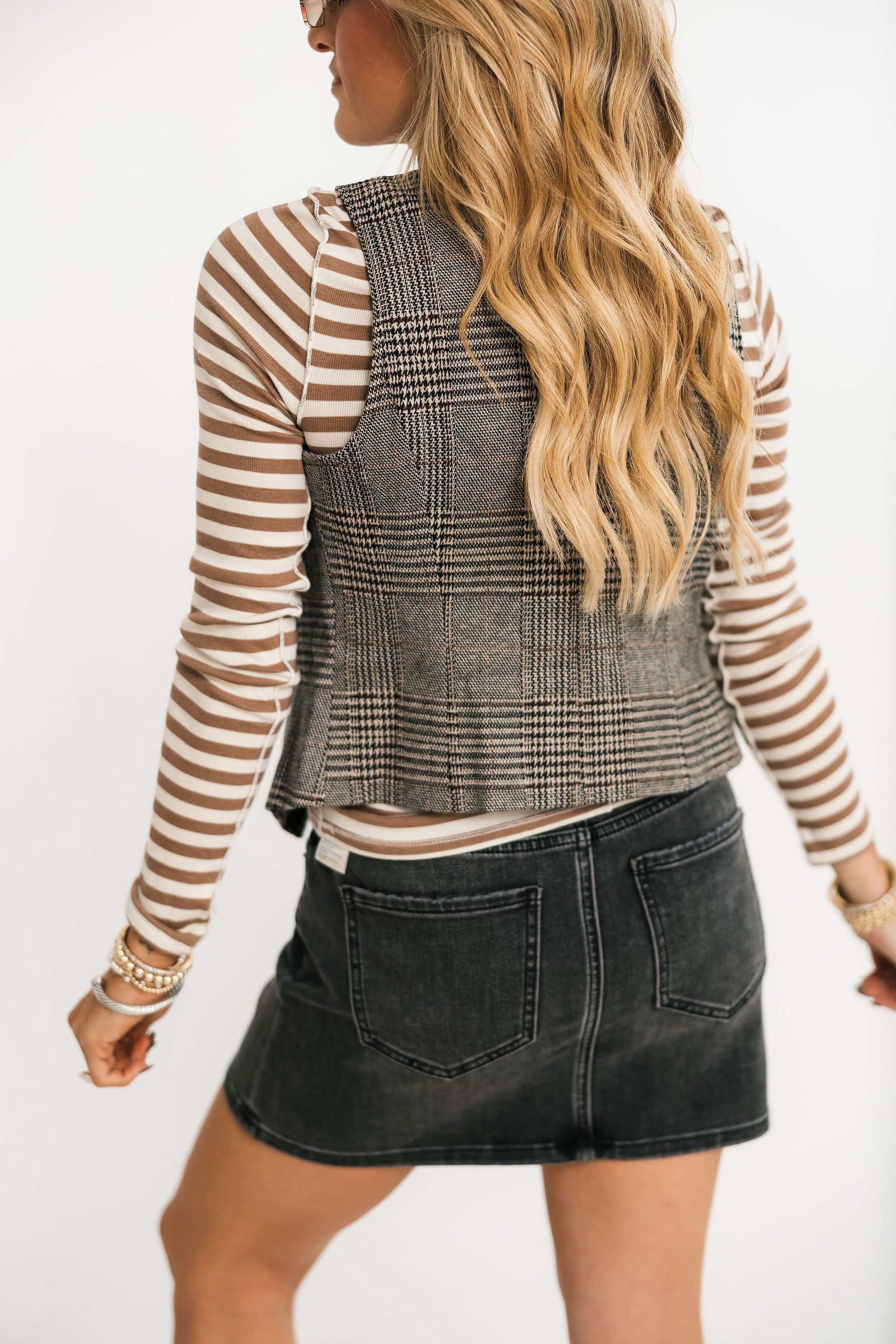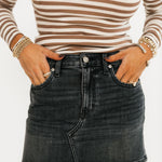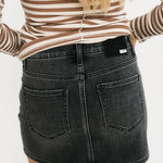 The Malibu Mini in Spade is an easy little denim mini in a vintage-inspired, faded black wash. Constructed from our rigid 100% cotton for a true denim feel.