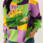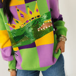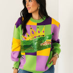 Mardi Gras Checkered Alligator Queen Sweater | Queen Of Sparkles