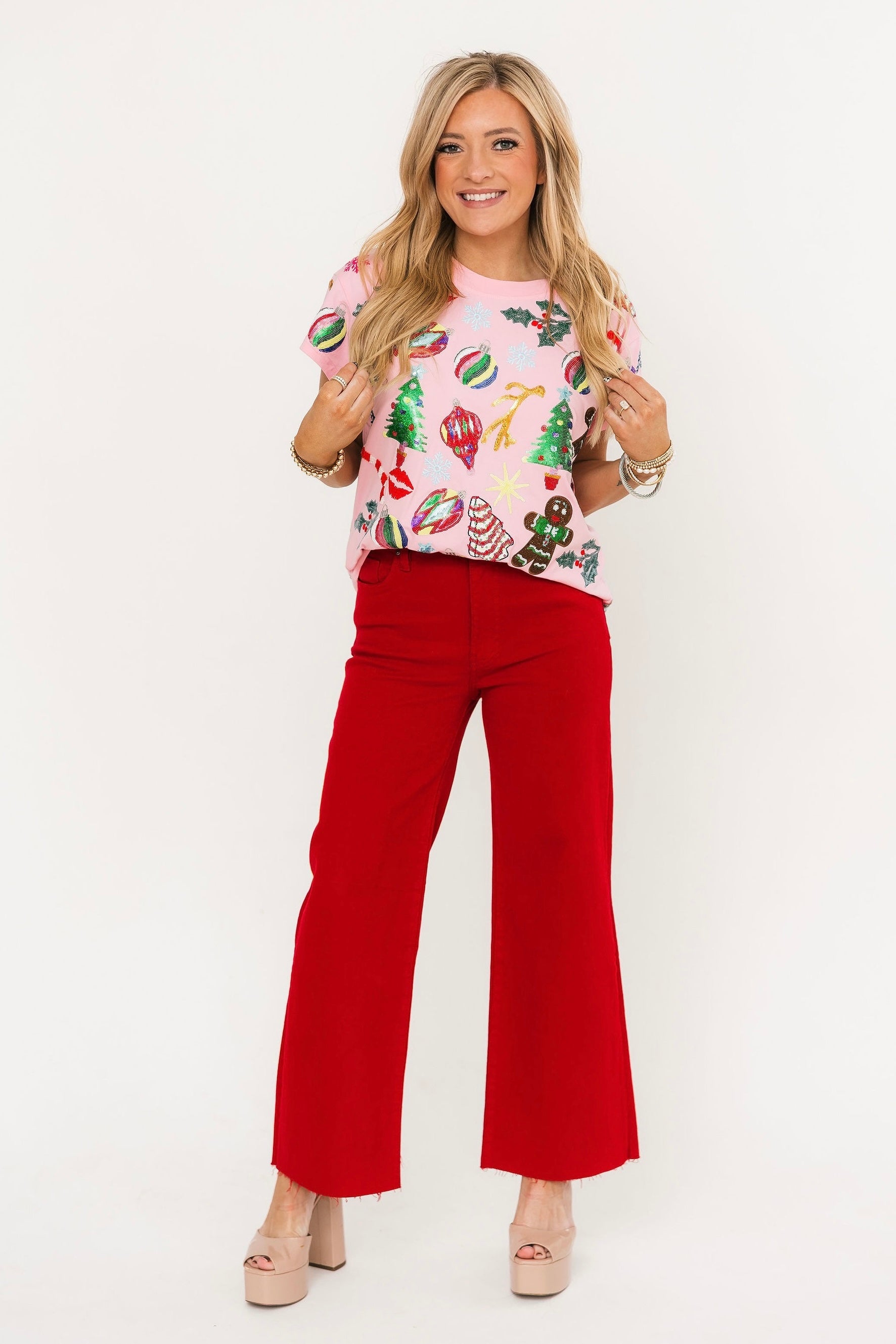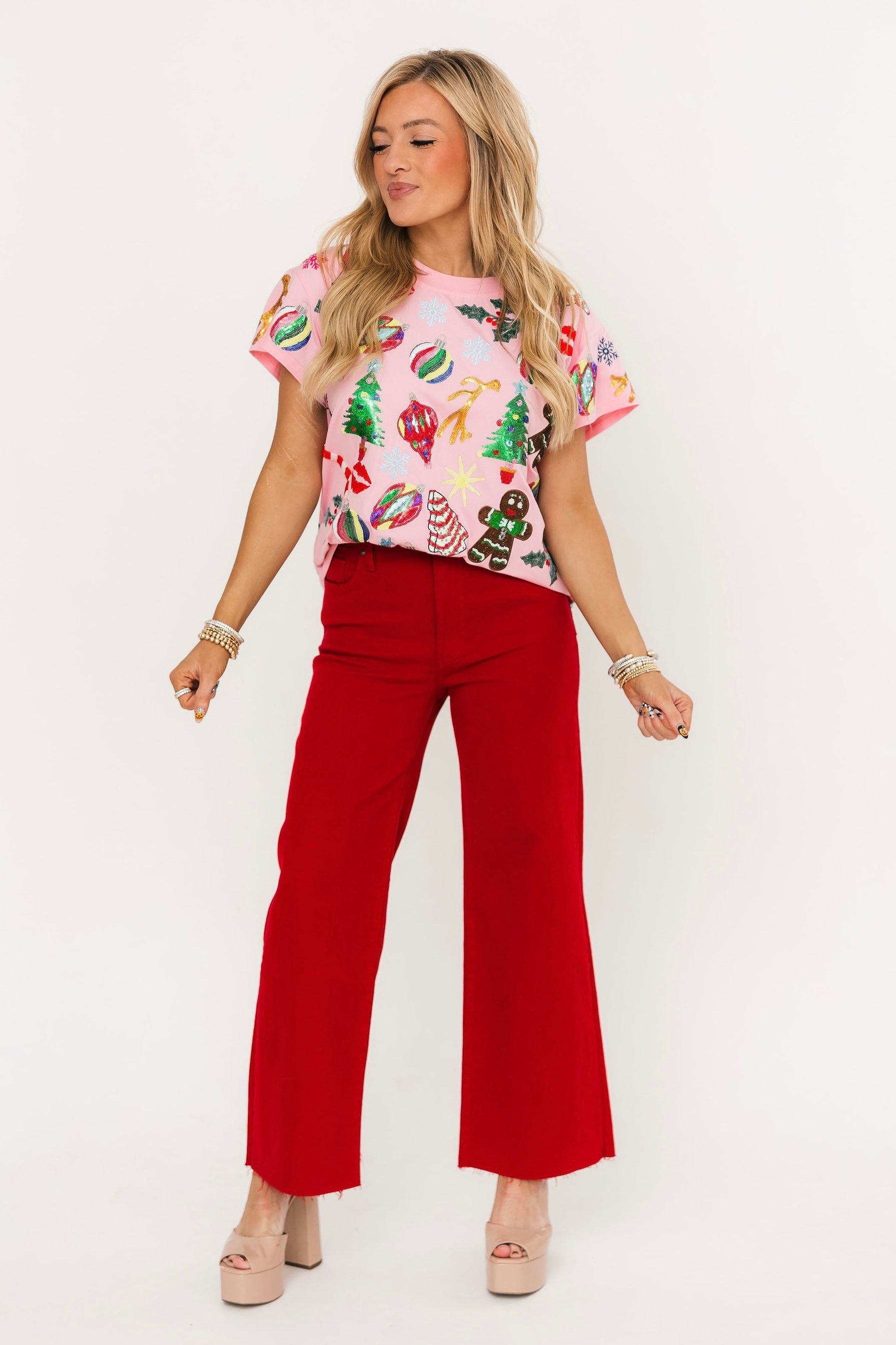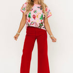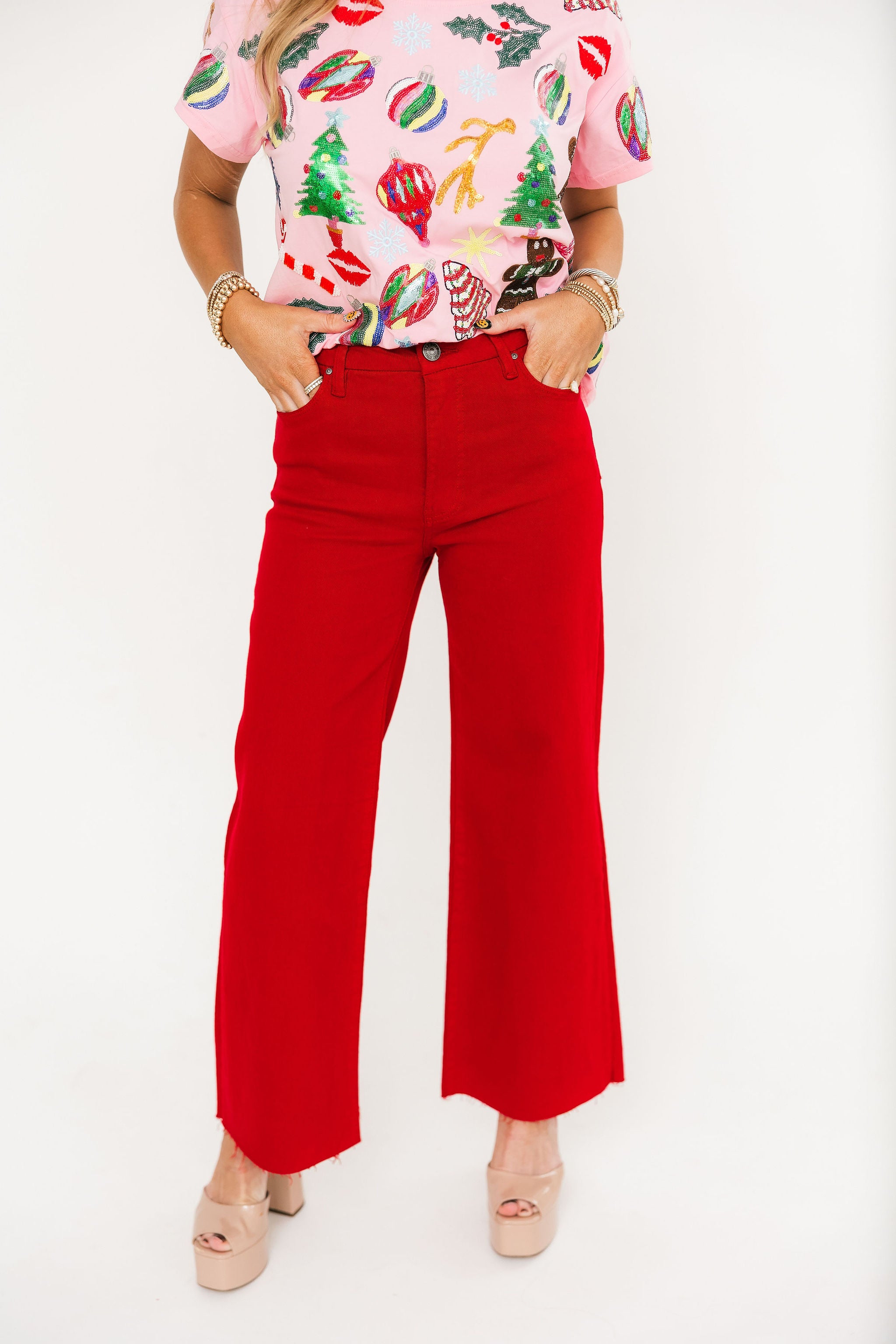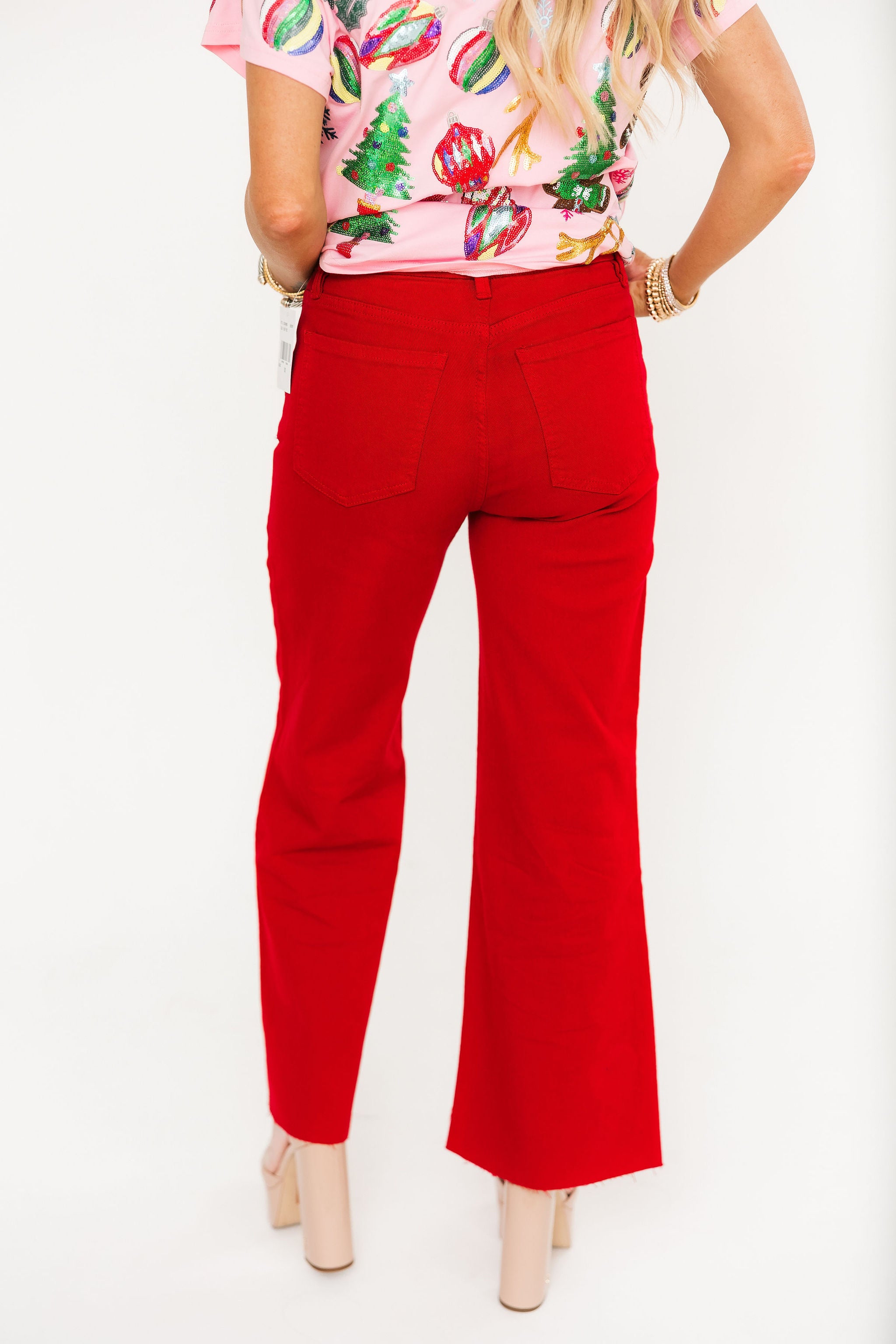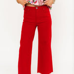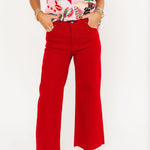 Meg High Rise Wide Leg Raw Hem | Ruby Red