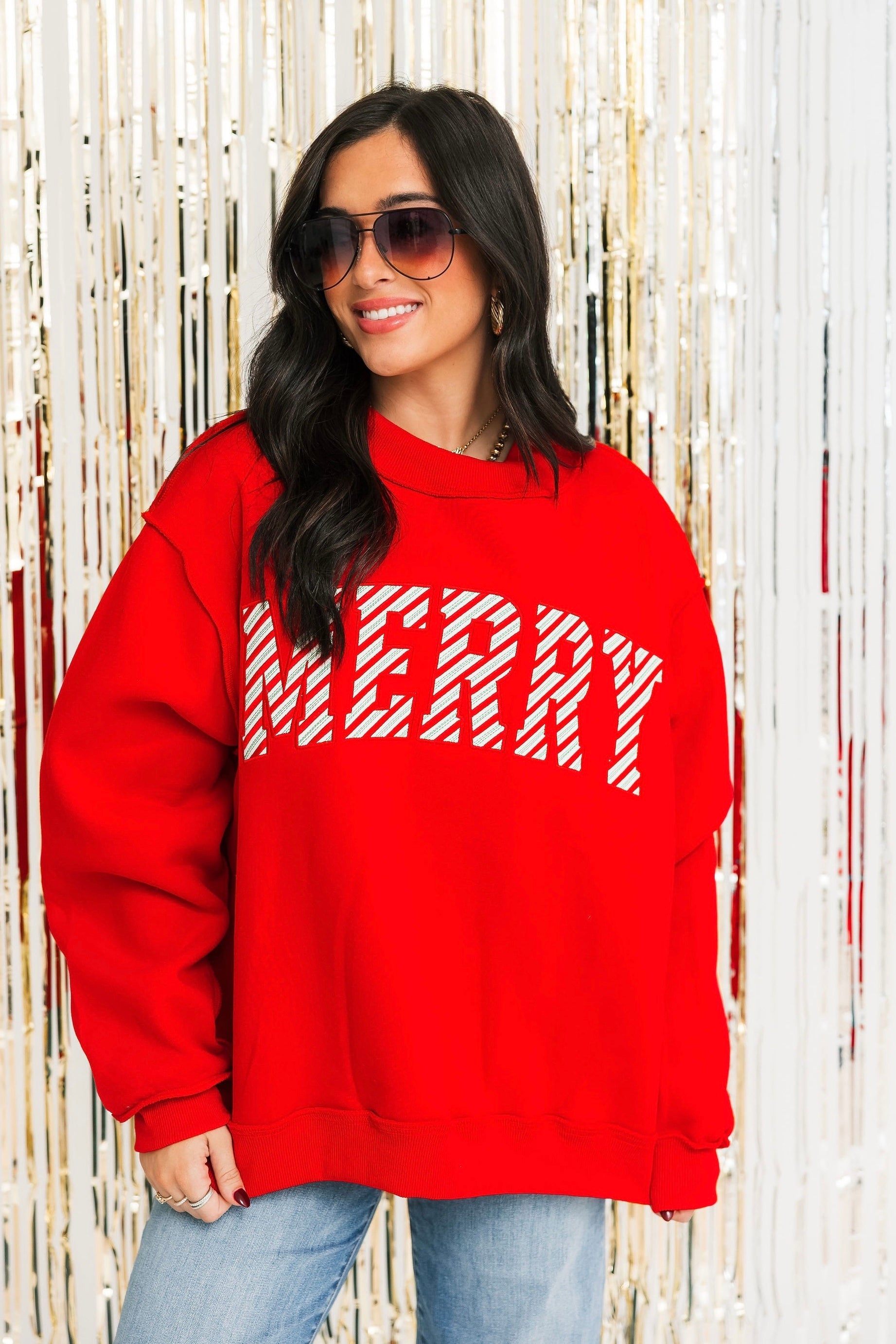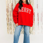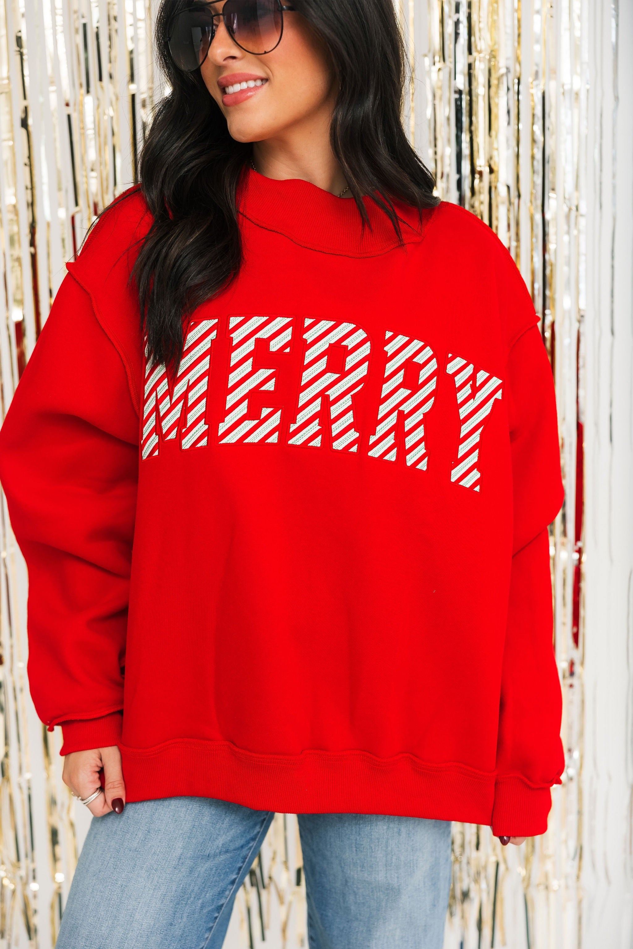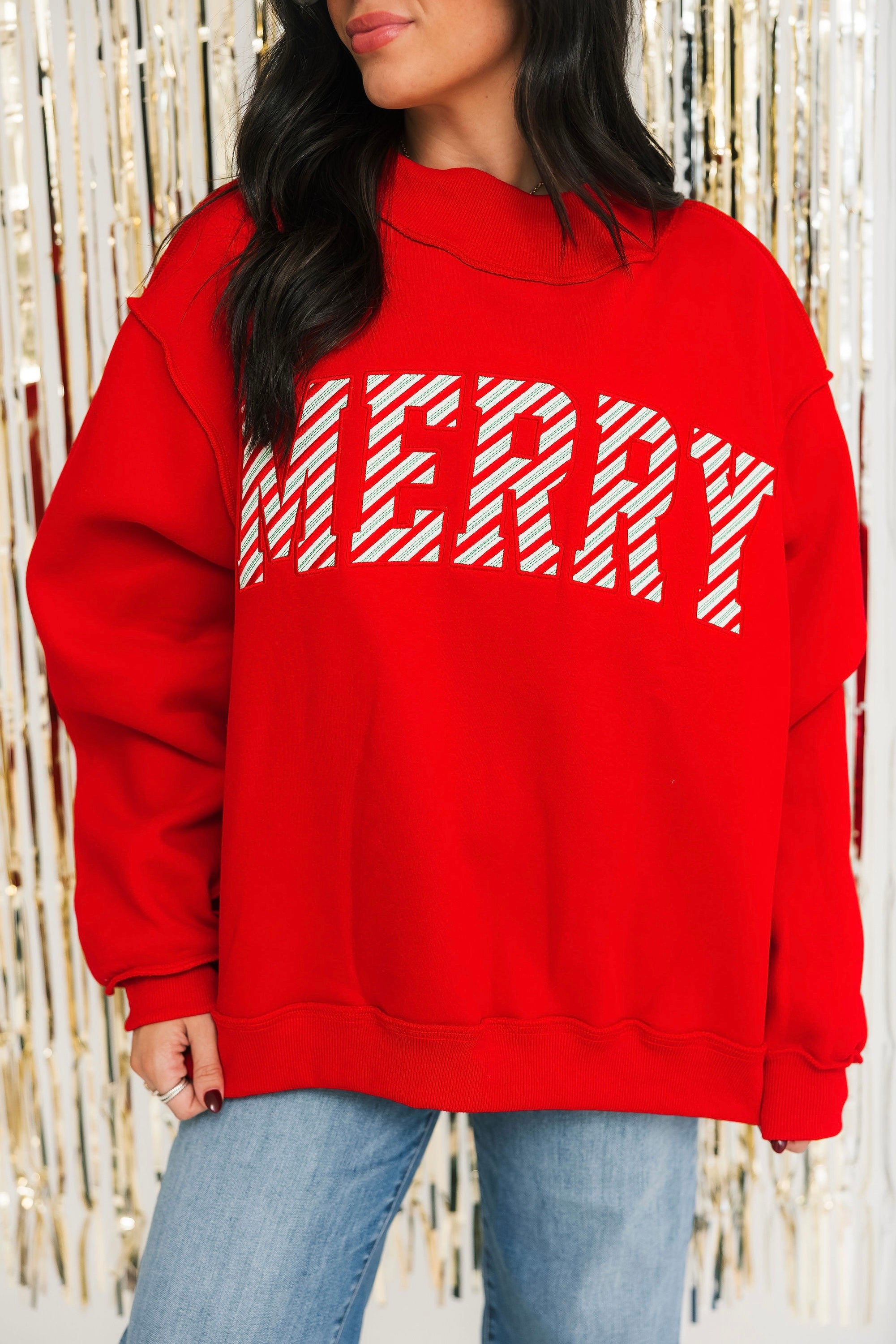 Merry Embroidered Mock Neck Sweatshirt | Red