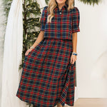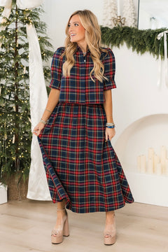 Merry Meadow Midi Skirt | Navy Plaid