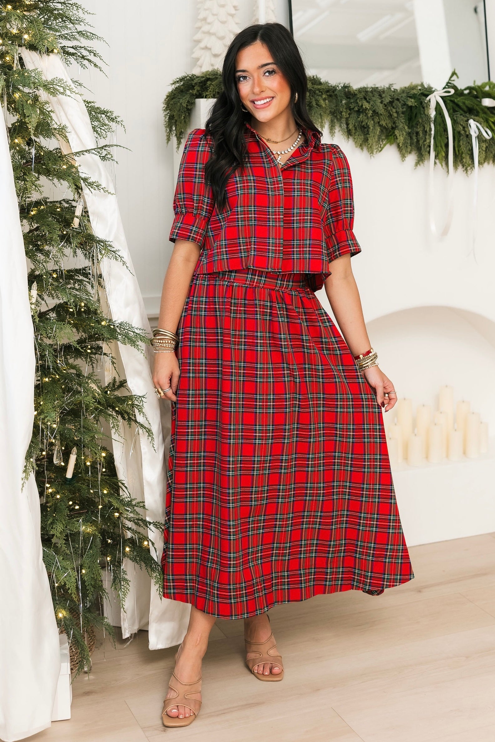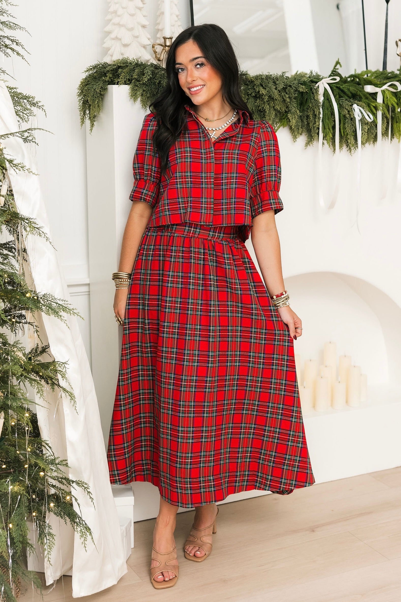 Merry Meadow Midi Skirt | Red Plaid