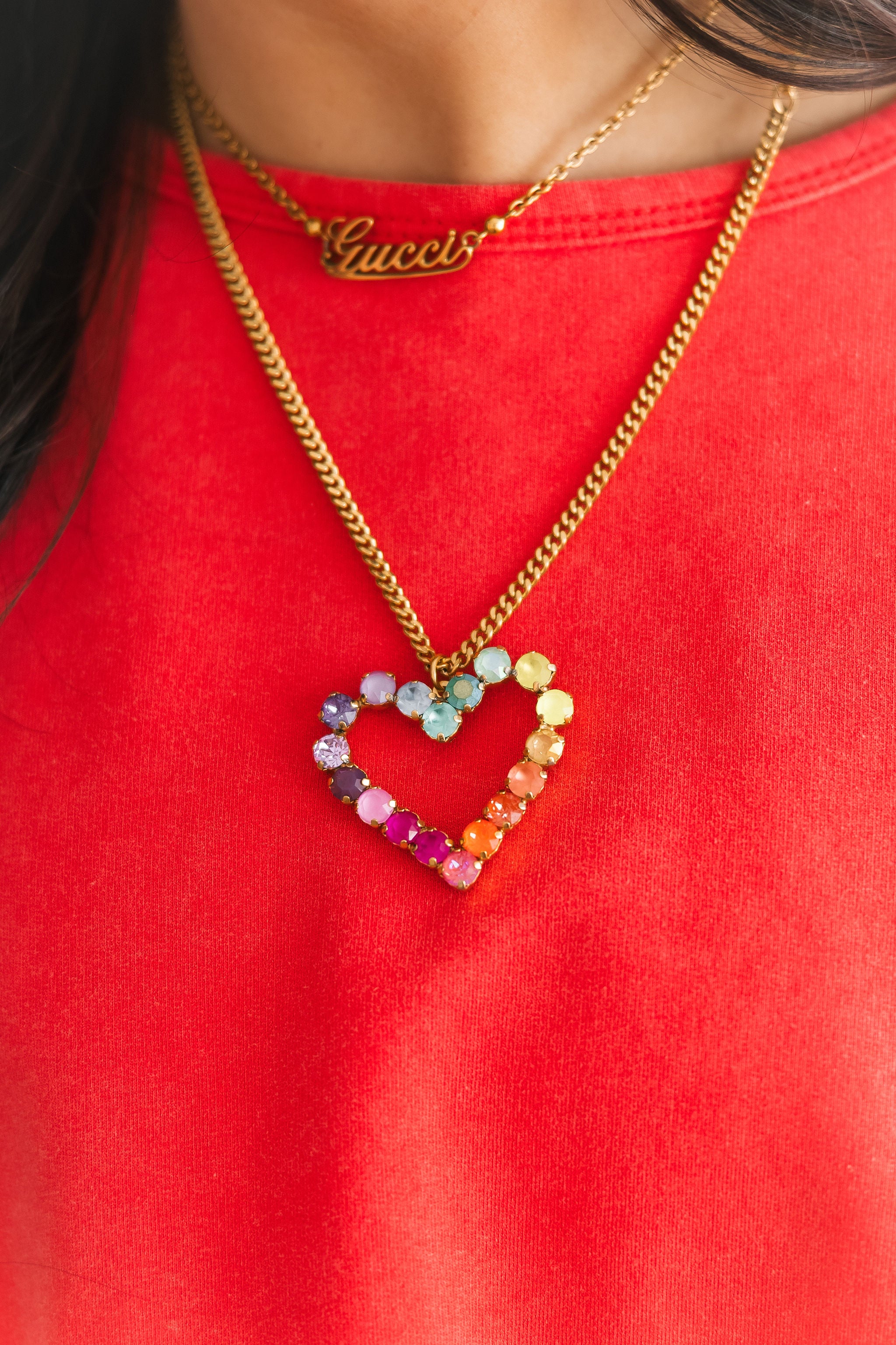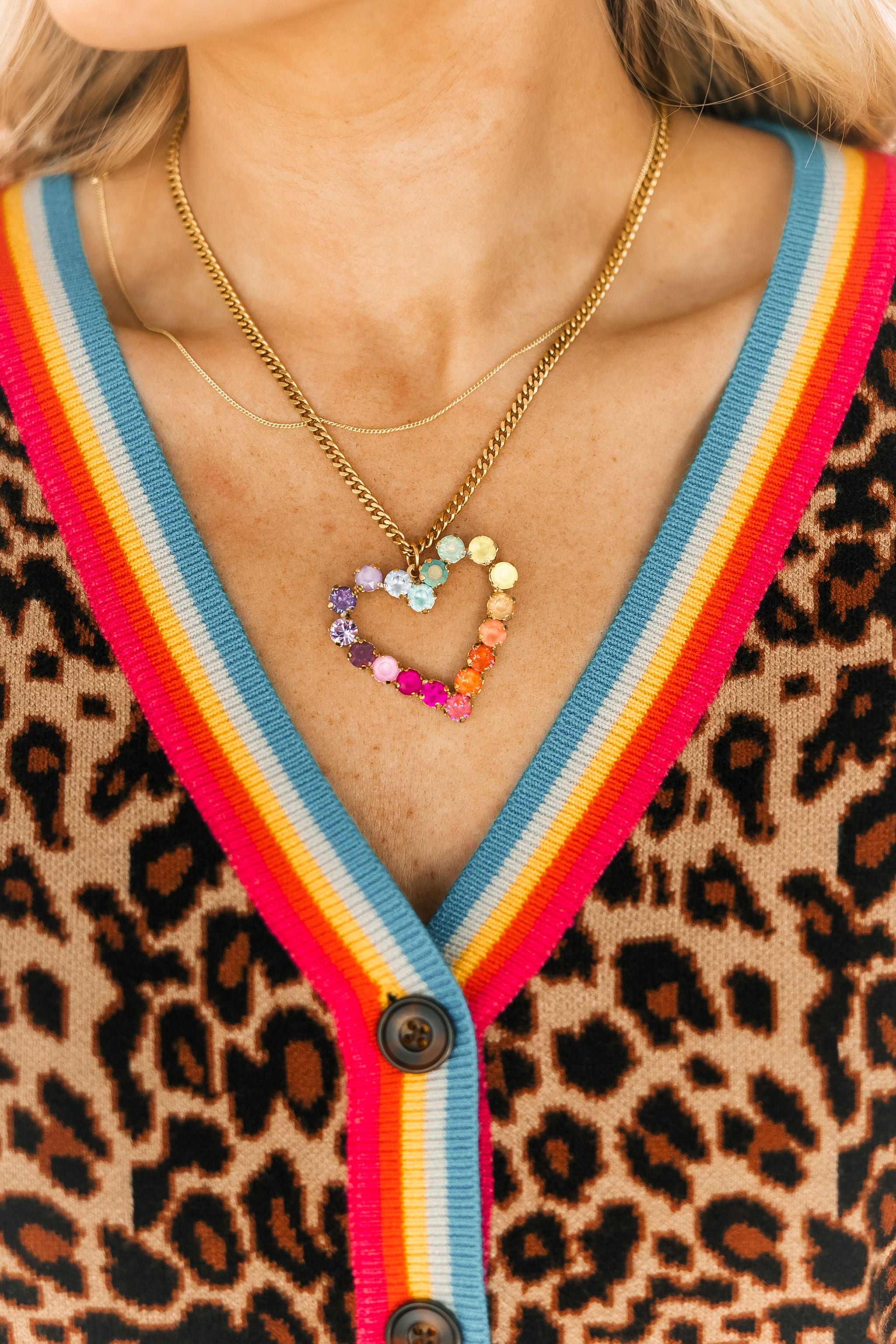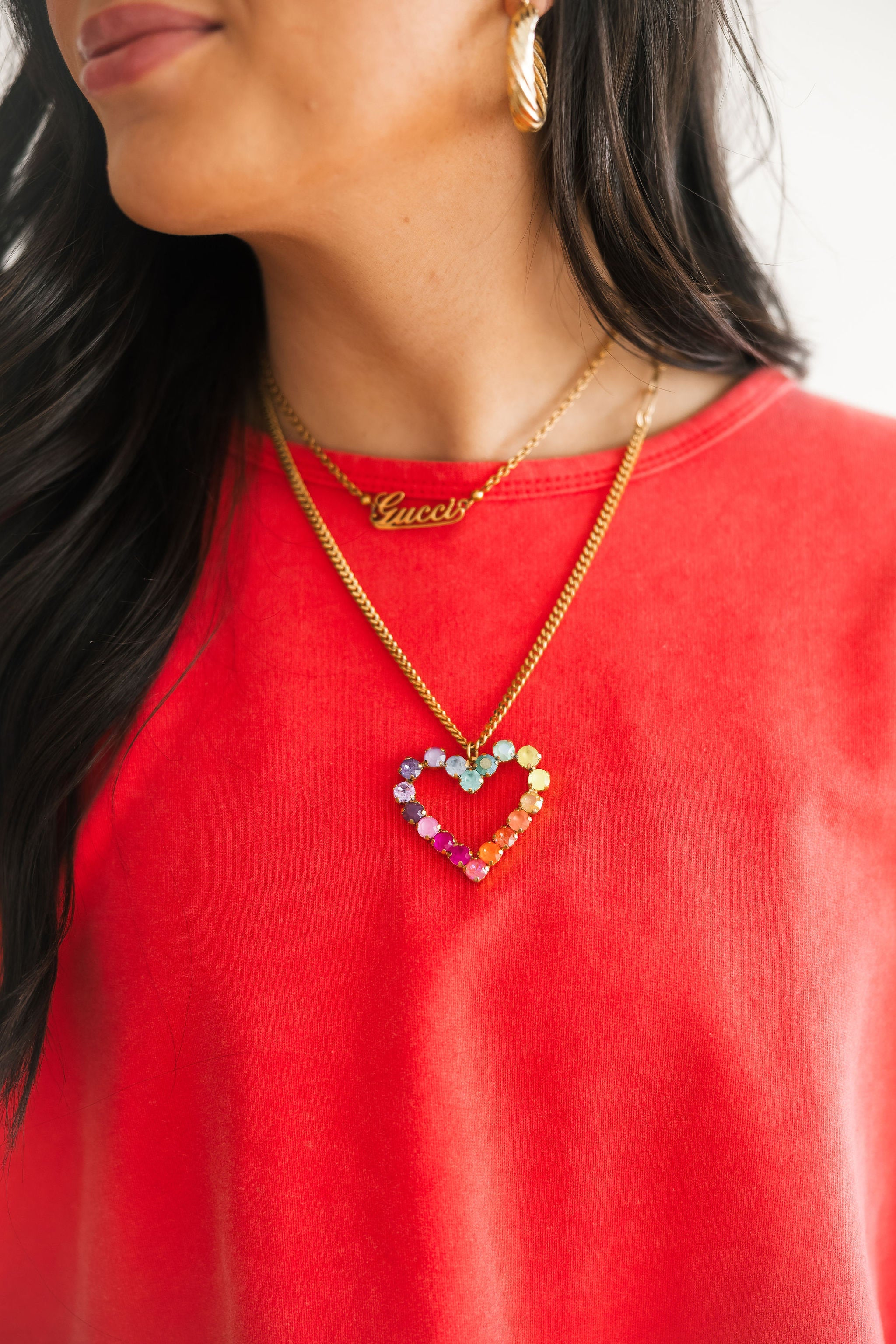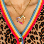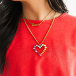 The TOVA Mini Heart Pop Necklace in Candy Crush features a delicate heart pendant with vibrant, candy-colored enamel. Its dainty design makes it perfect for layering or wearing alone, adding a whimsical, Valentine-ready touch to any look.