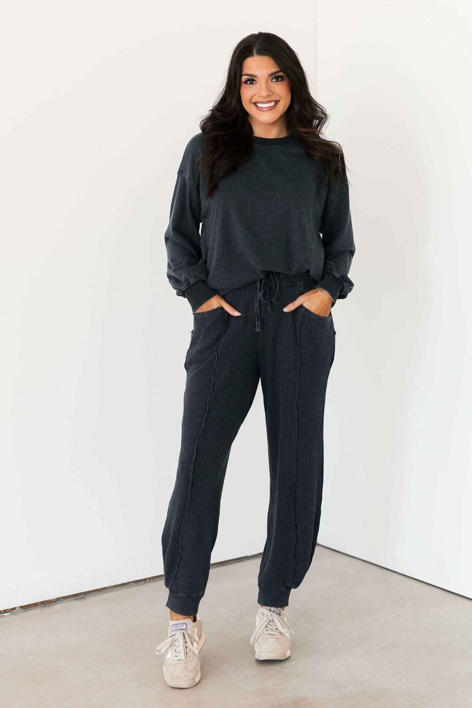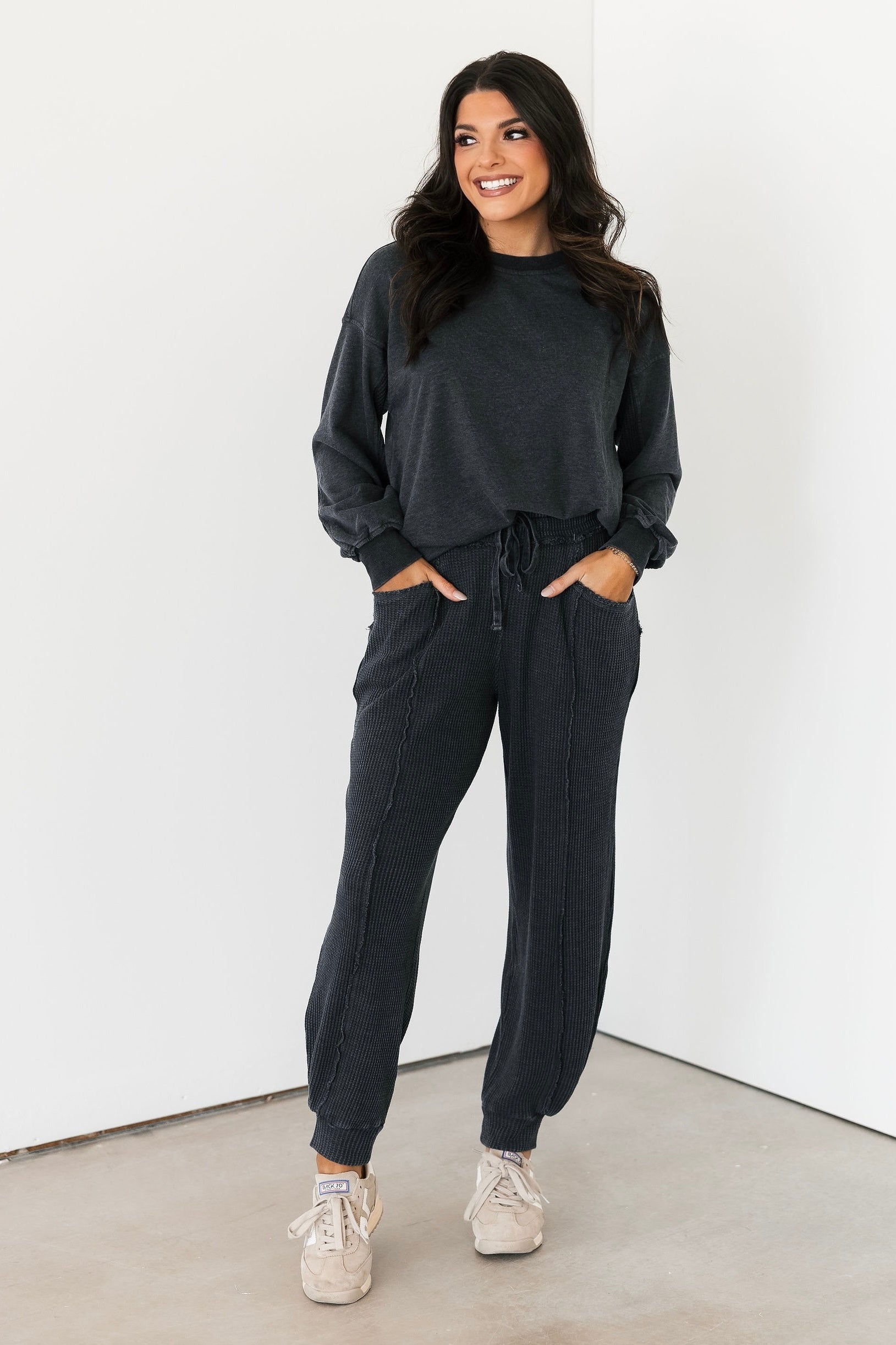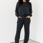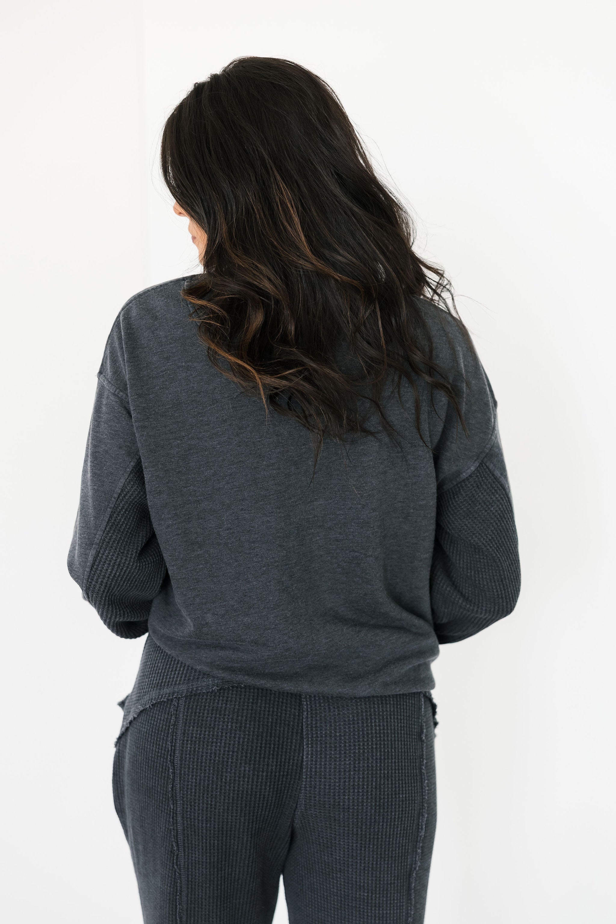 The Mixed Textures Crewneck in Black features a relaxed, lightweight fit with breathable comfort you can wear year-round. Designed with dropped shoulders, long sleeves, and raw edge details, it has a lived-in feel that’s effortlessly laid-back while still looking put together. Harli is wearing a medium.