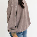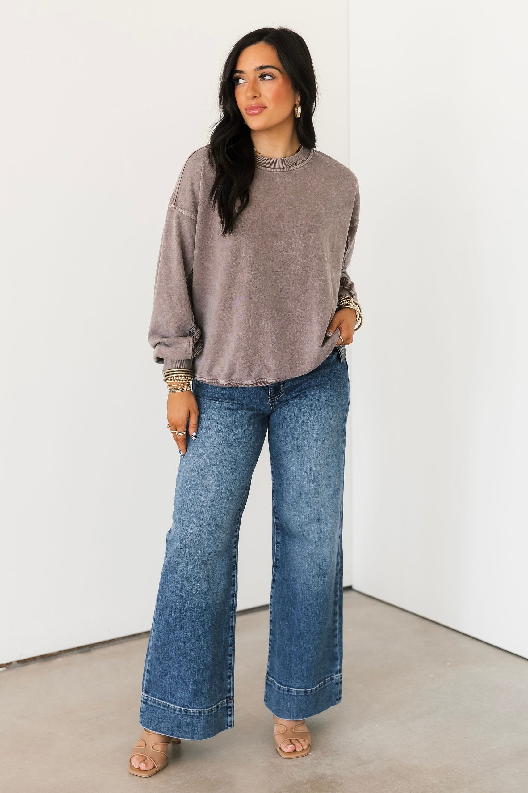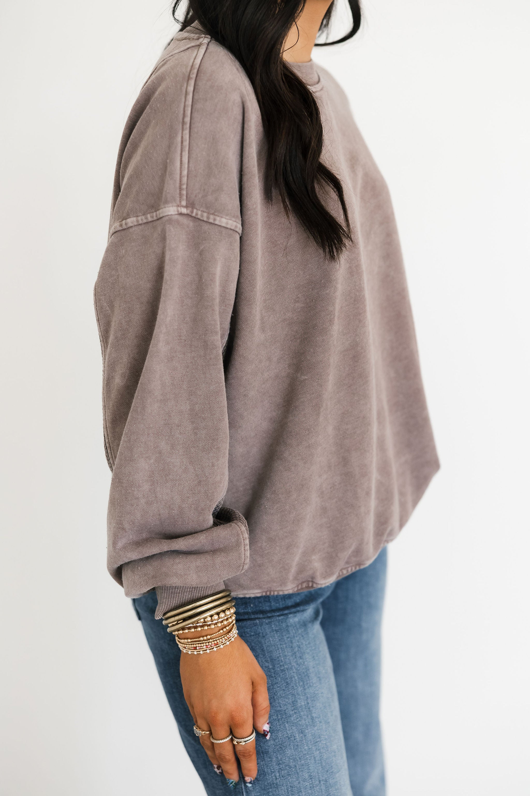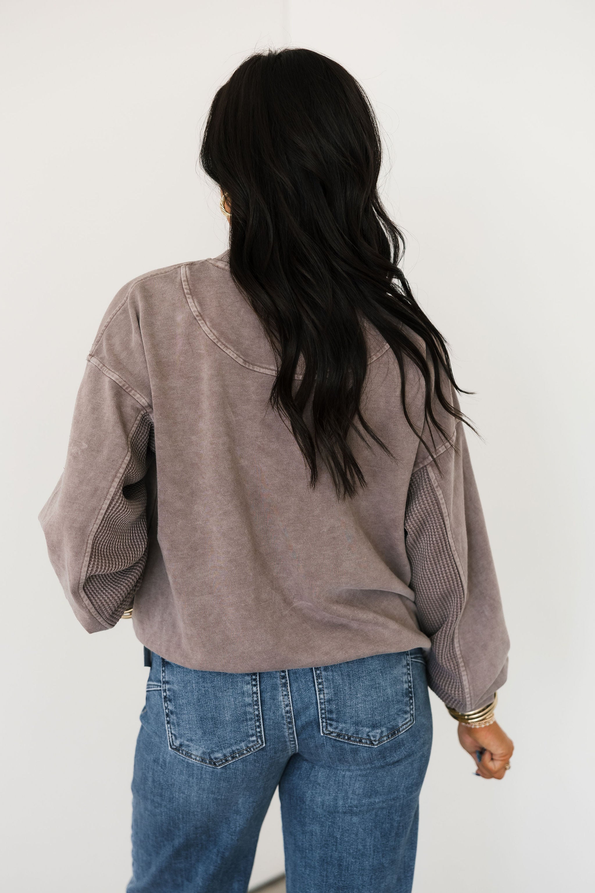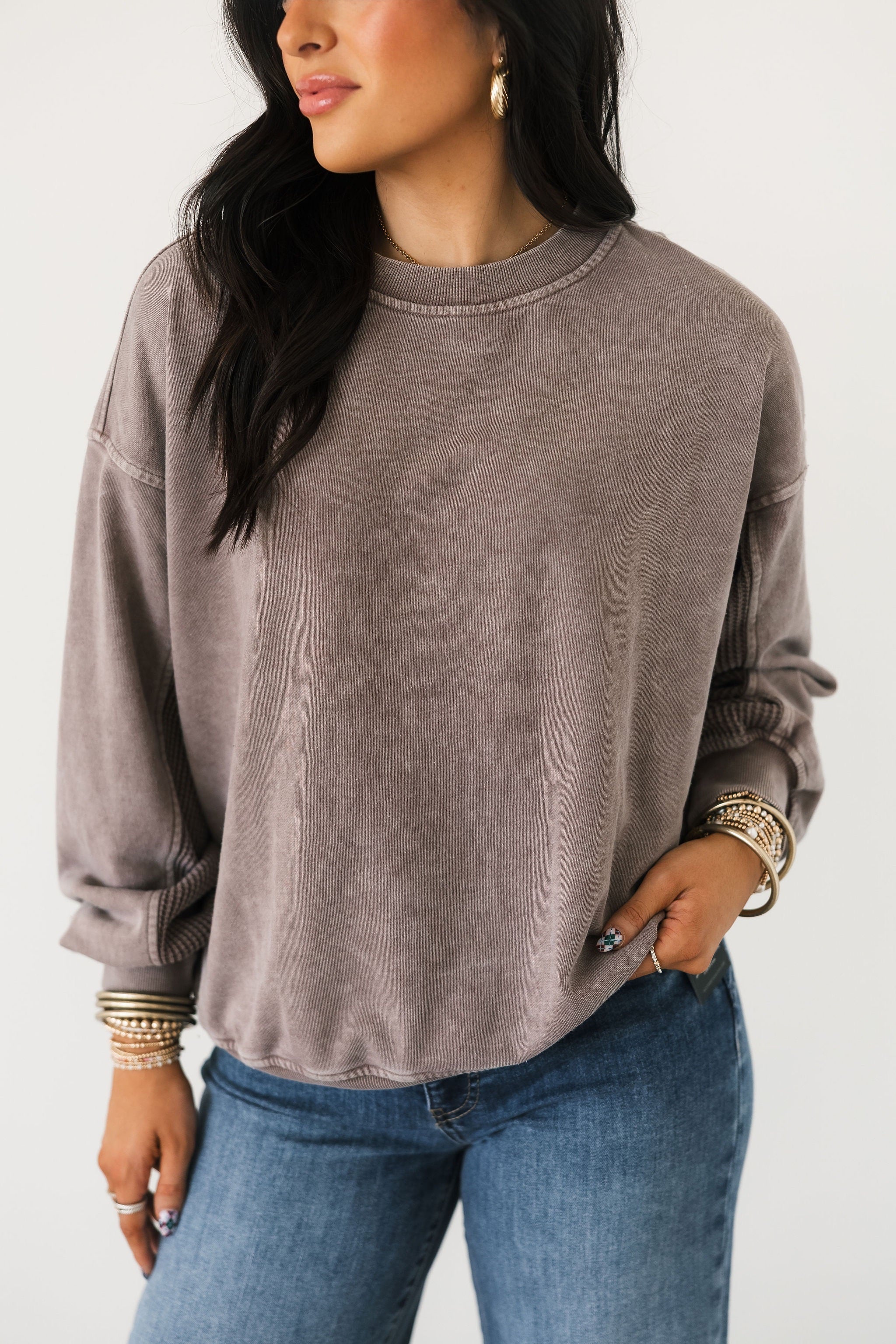 The Mixed Textures Crewneck in Mocha features a relaxed, lightweight fit with breathable comfort you can wear year-round. Designed with dropped shoulders, long sleeves, and raw edge details, it has a lived-in feel that’s effortlessly laid-back while still looking put together. Sage is wearing a small.