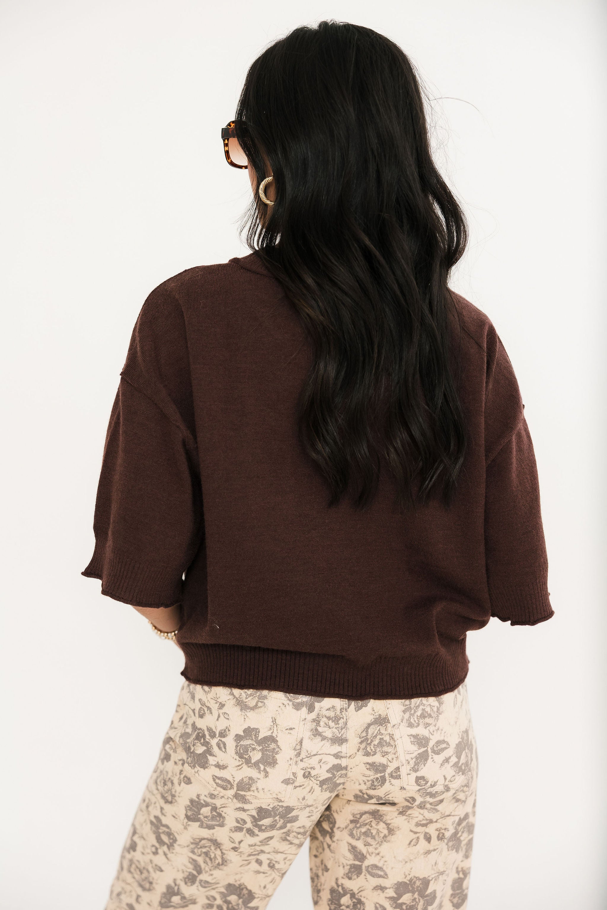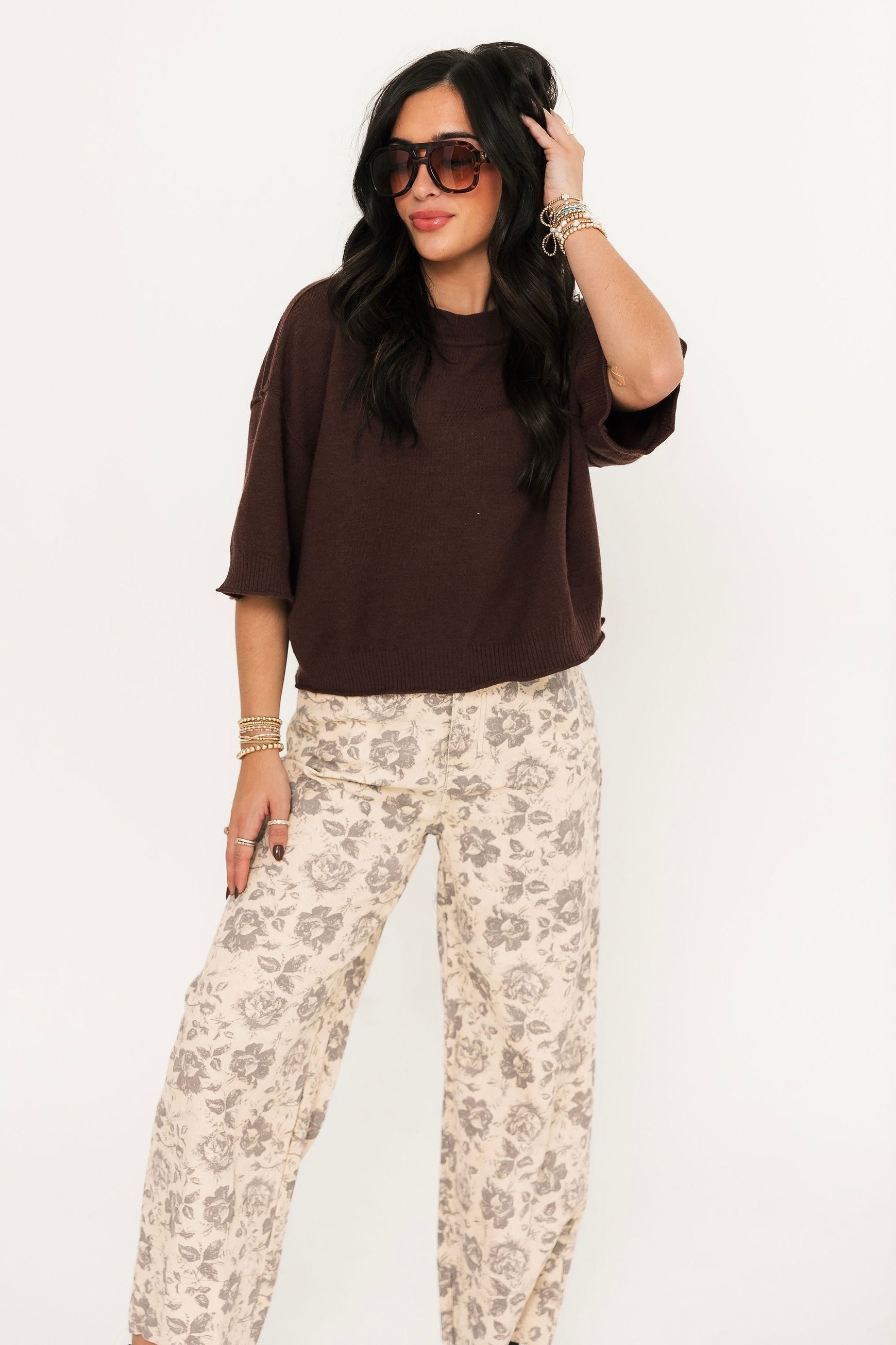 Effortless and elevated, the Moonlight Knit Sweater Top in Chocolate is your go-to for relaxed style with a refined touch. Featuring a slouchy, relaxed fit and 3/4 length sleeves, this knit drapes beautifully for all-day comfort. The rich chocolate hue makes it versatile enough to style with denim, skirts, or layered under a blazer. A timeless piece that transitions seamlessly from casual coffee runs to evening plans. Sage is wearing a small.