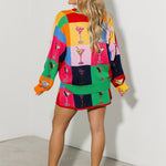 Multi Checkered Cosmo Button Up Sweater | Queen Of Sparkles