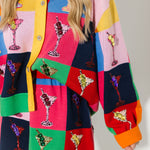 Queen Of Sparkles Multi Checkered Cosmo Button Up Sweater