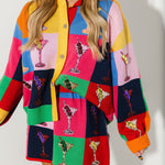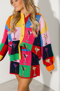 - Why We ❤ It: A playful twist on cozy—this sparkling checkered cardigan with martini glass details is the perfect mix of comfort and festive flair.