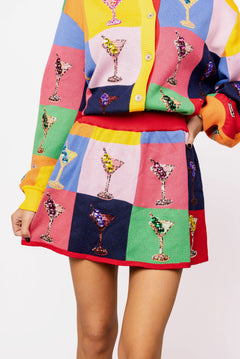 The Queen Of Sparkles Multi Checkered Cosmo Button Up Sweater is a statement piece made for celebration. With its bold checkered knit, sparkling martini glass details, and classic button-up silhouette, it’s versatile enough to wear solo or layered. Pair it with denim for a fun night out or style it with the matching Cosmo Knit Skirt for the ultimate head-turning holiday set.