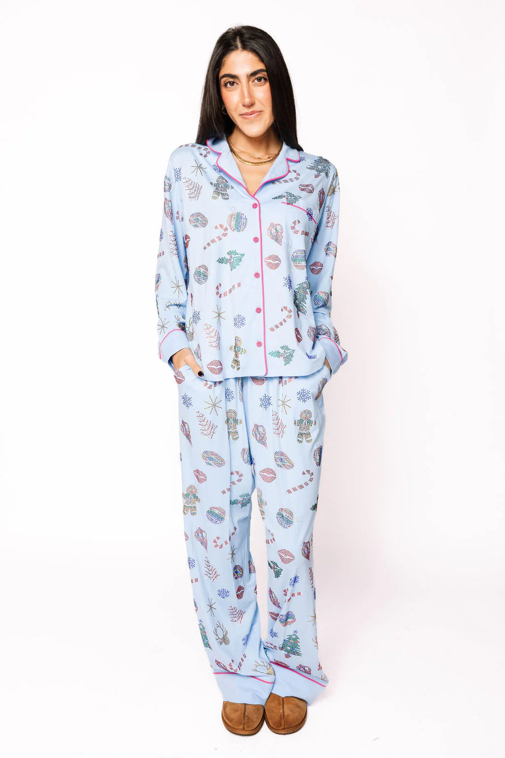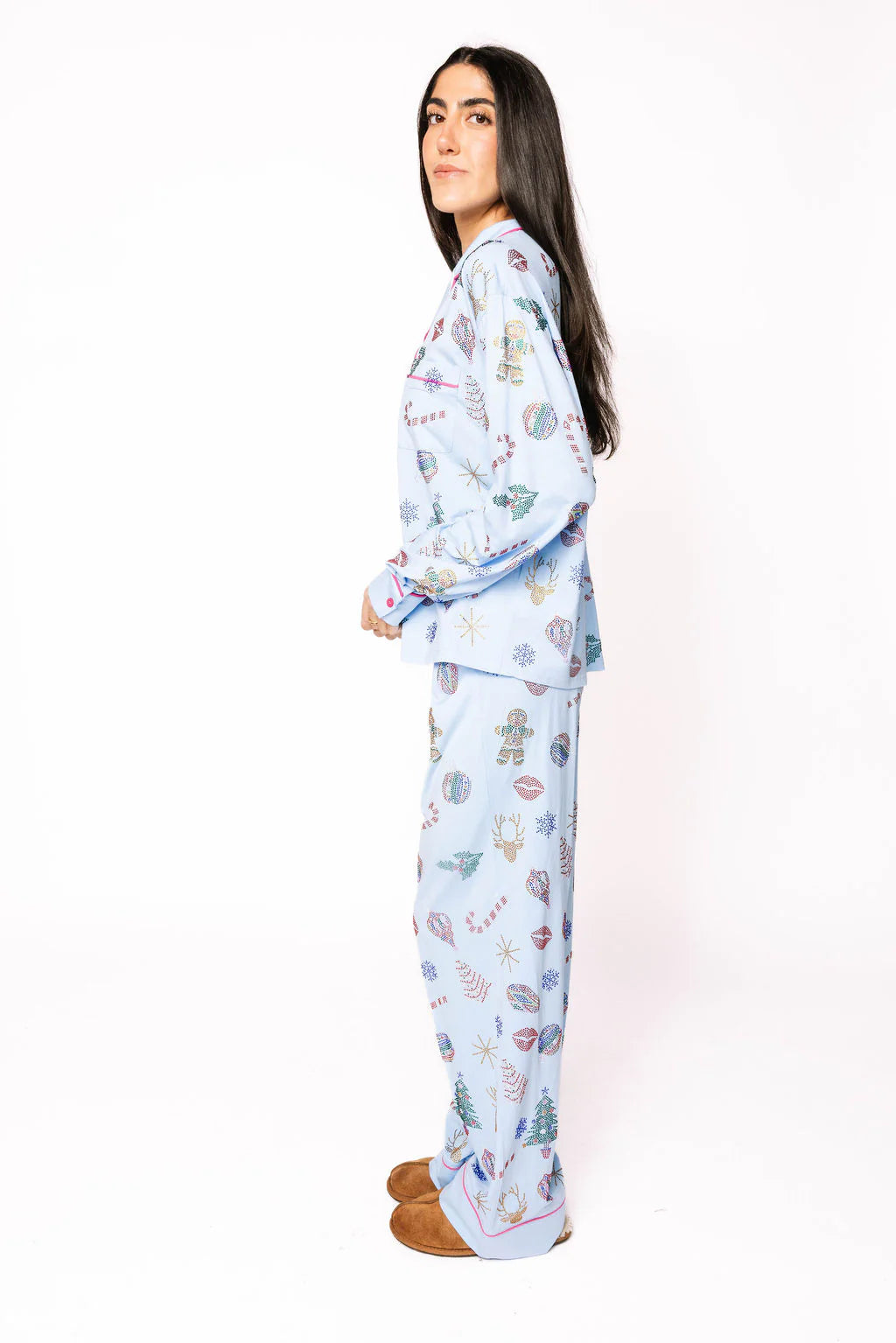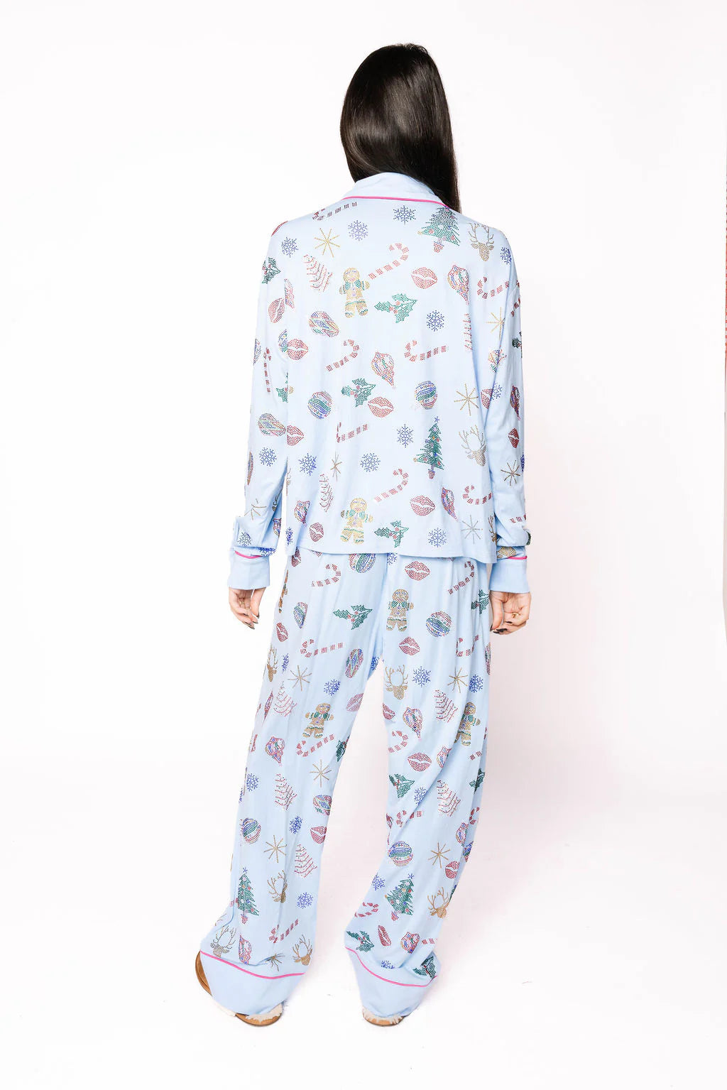 - Why We ❤ It: Festive comfort meets sparkle—holiday icons make this cozy pajama pant extra special.
