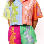Queen Of Sparkles Multi Colorblock Easter Bunny Cotton Short