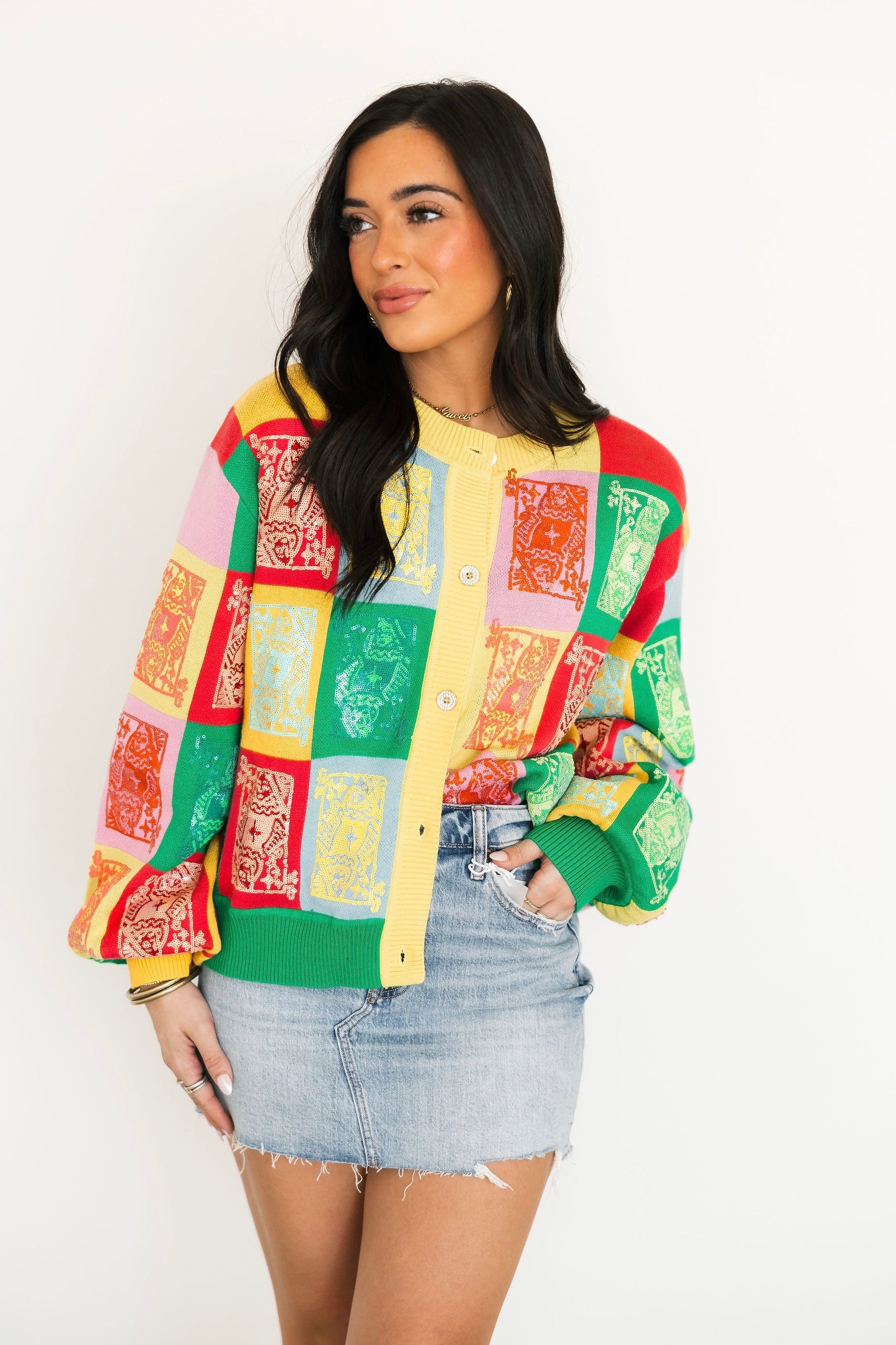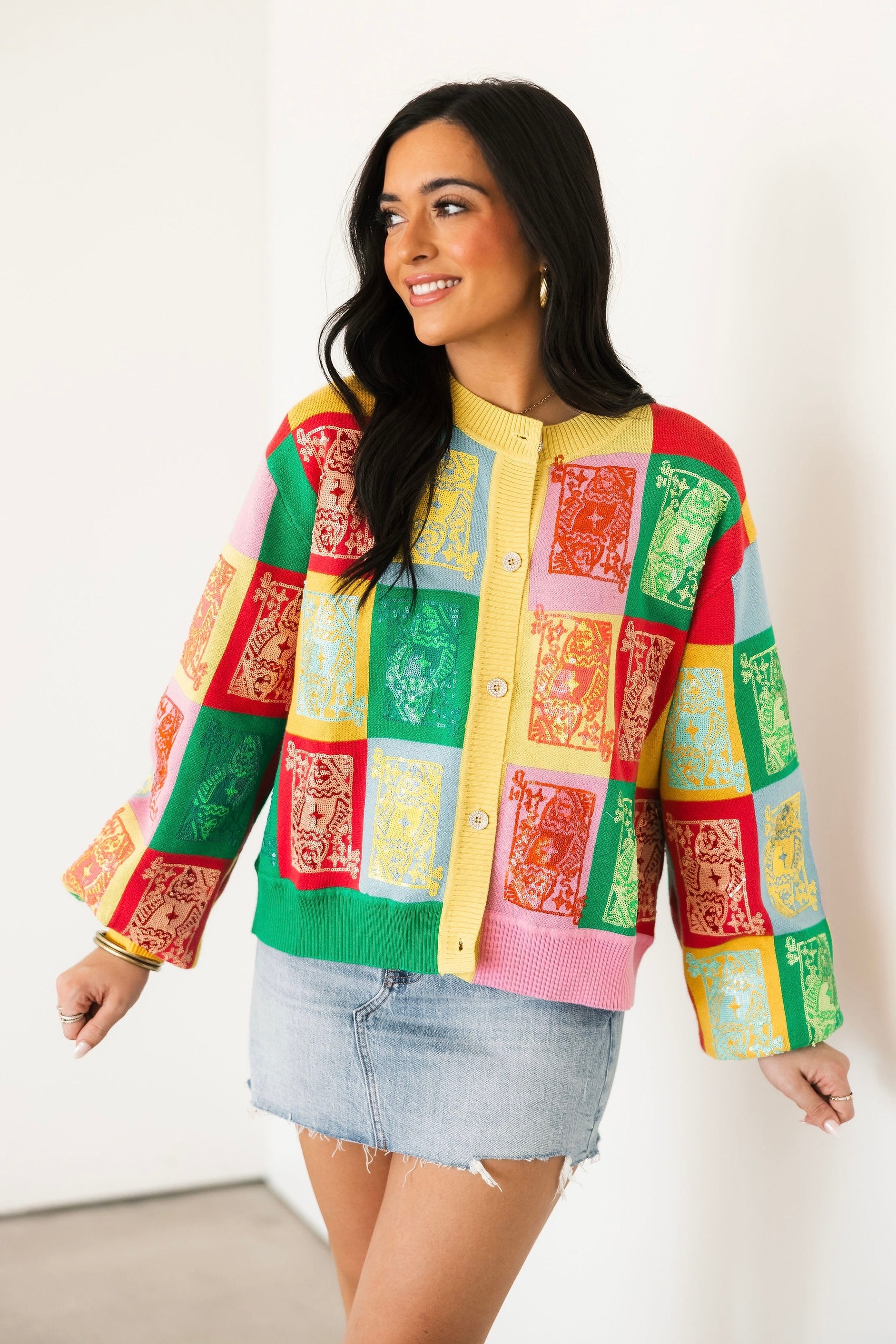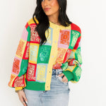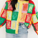 Queen Of Sparkles Multi Colorblock Logo Button Up Cardigan