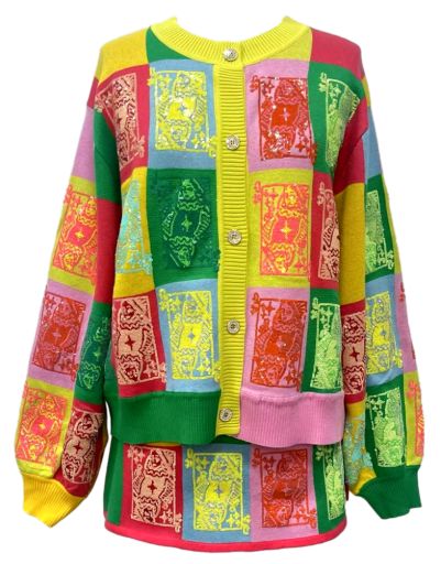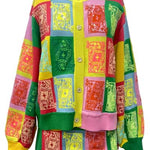 The Queen Of Sparkles Multi Colorblock Logo Button Up Cardigan features a relaxed fit with long sleeves, a classic crewneck, and a full front button closure. Perfect for layering over tees or tanks, it’s an easygoing piece that brings a playful, colorful touch to any outfit.