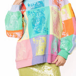 The Queen Of Sparkles Multi Colorblock QOS Card Logo Sweatshirt is designed with an intentionally oversized fit for that relaxed, throw-on-and-go look. Featuring a classic crew neckline, long sleeves, and eye-catching colorblock detailing with the signature QOS card logo, it blends comfort with statement style. Soft and easy to wear, it’s the kind of sweatshirt you’ll reach for when you want something fun that still feels effortless.