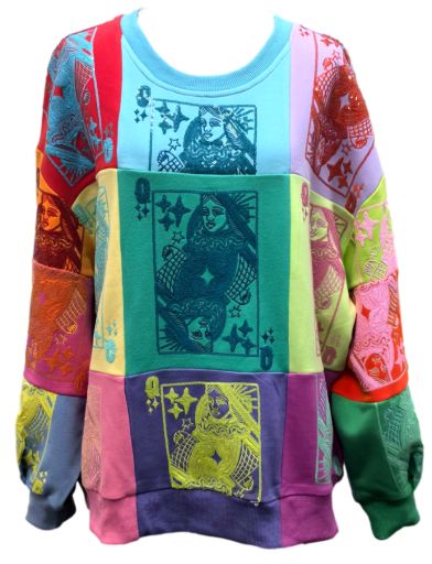 Multi Colorblock QOS Card Logo Sweatshirt | Queen Of Sparkles