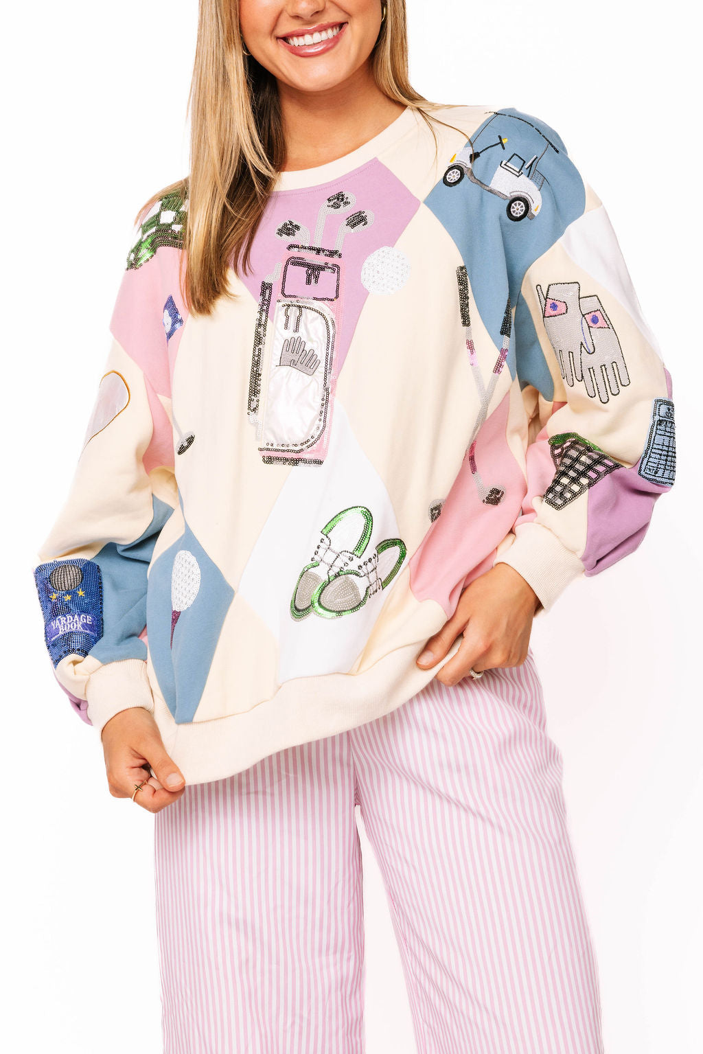 Multi Diamond Print Golf Icon Sweatshirt | Queen Of Sparkles