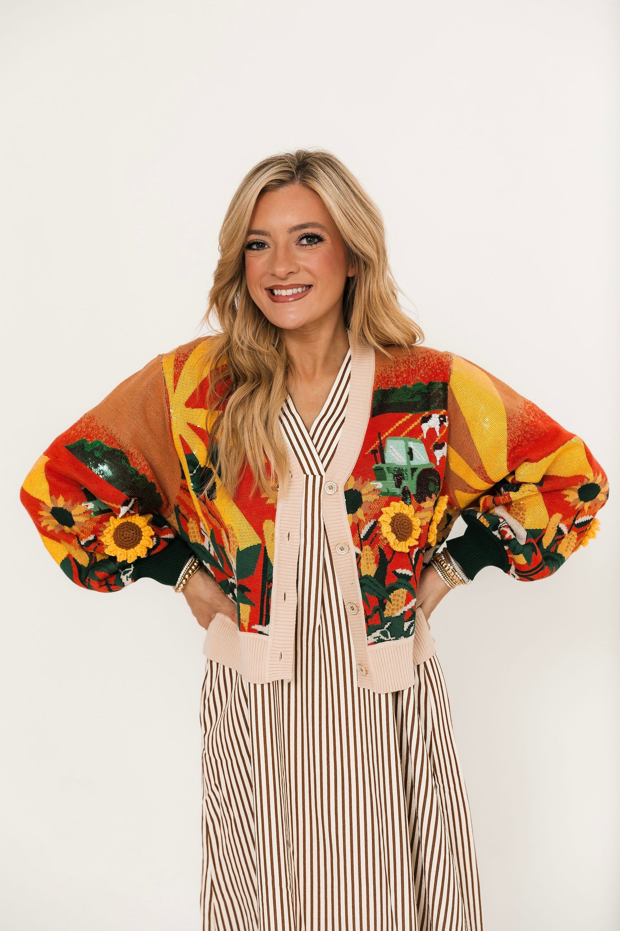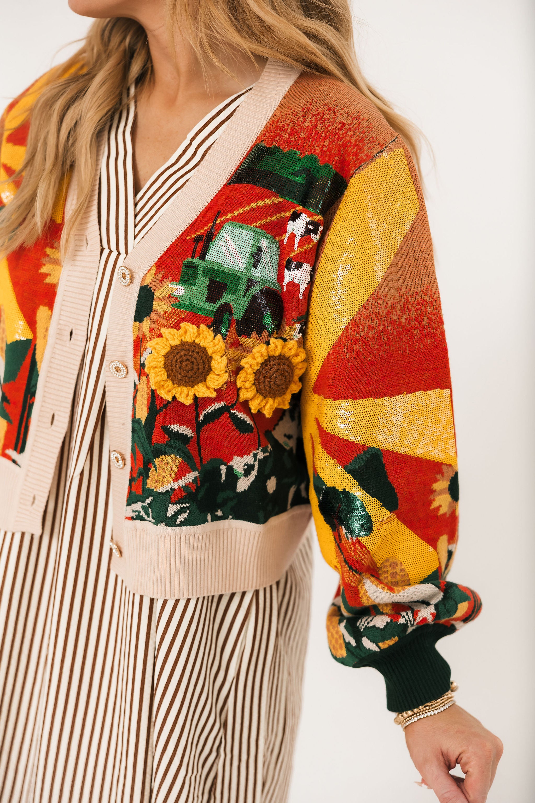 Multi Farm With Knit Sunflowers Button Up Cardigan | Queen Of Sparkles
