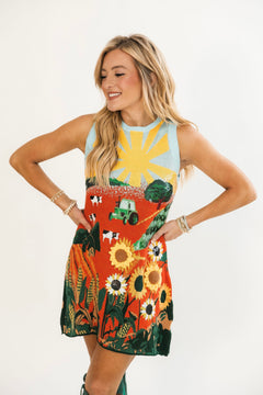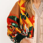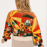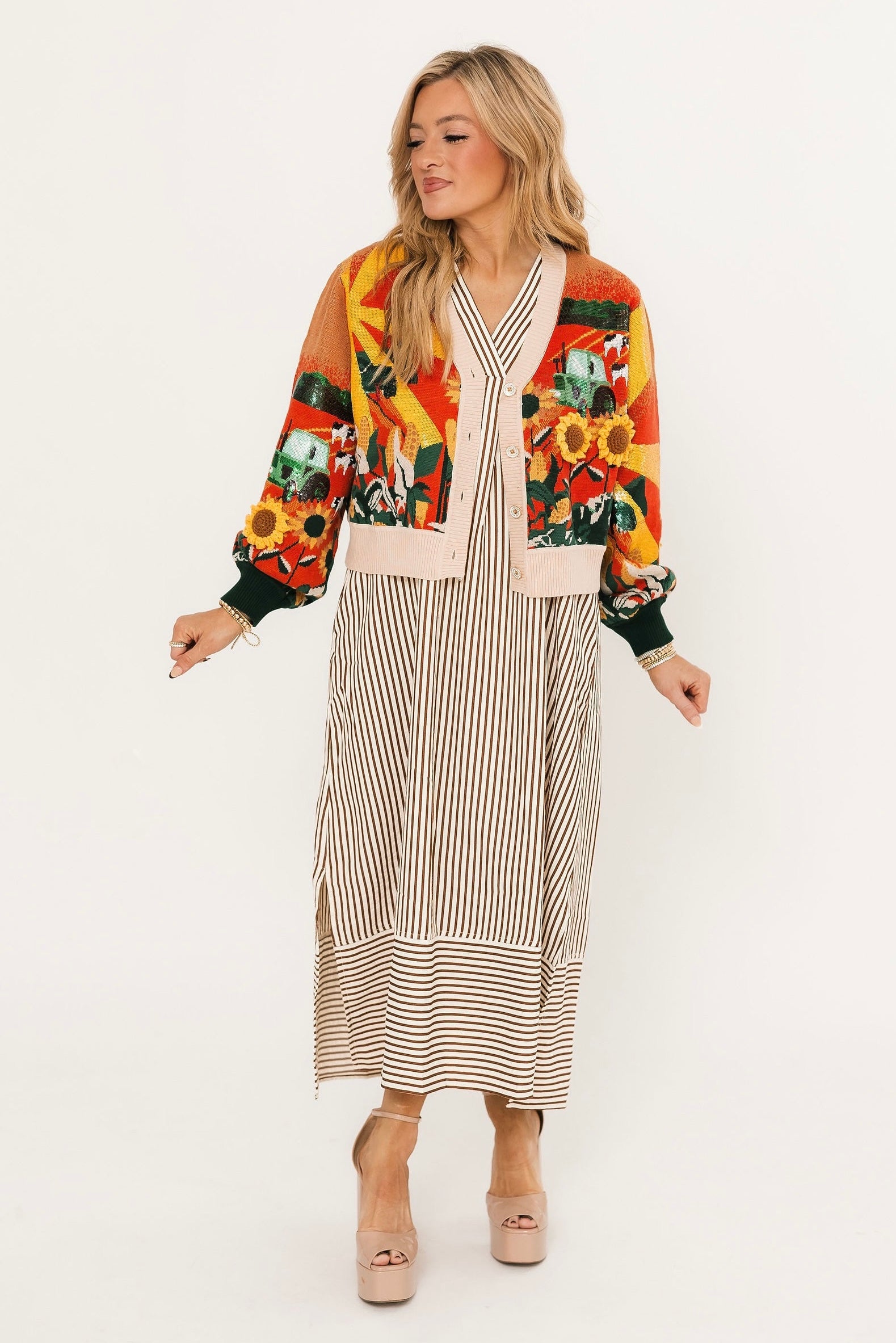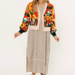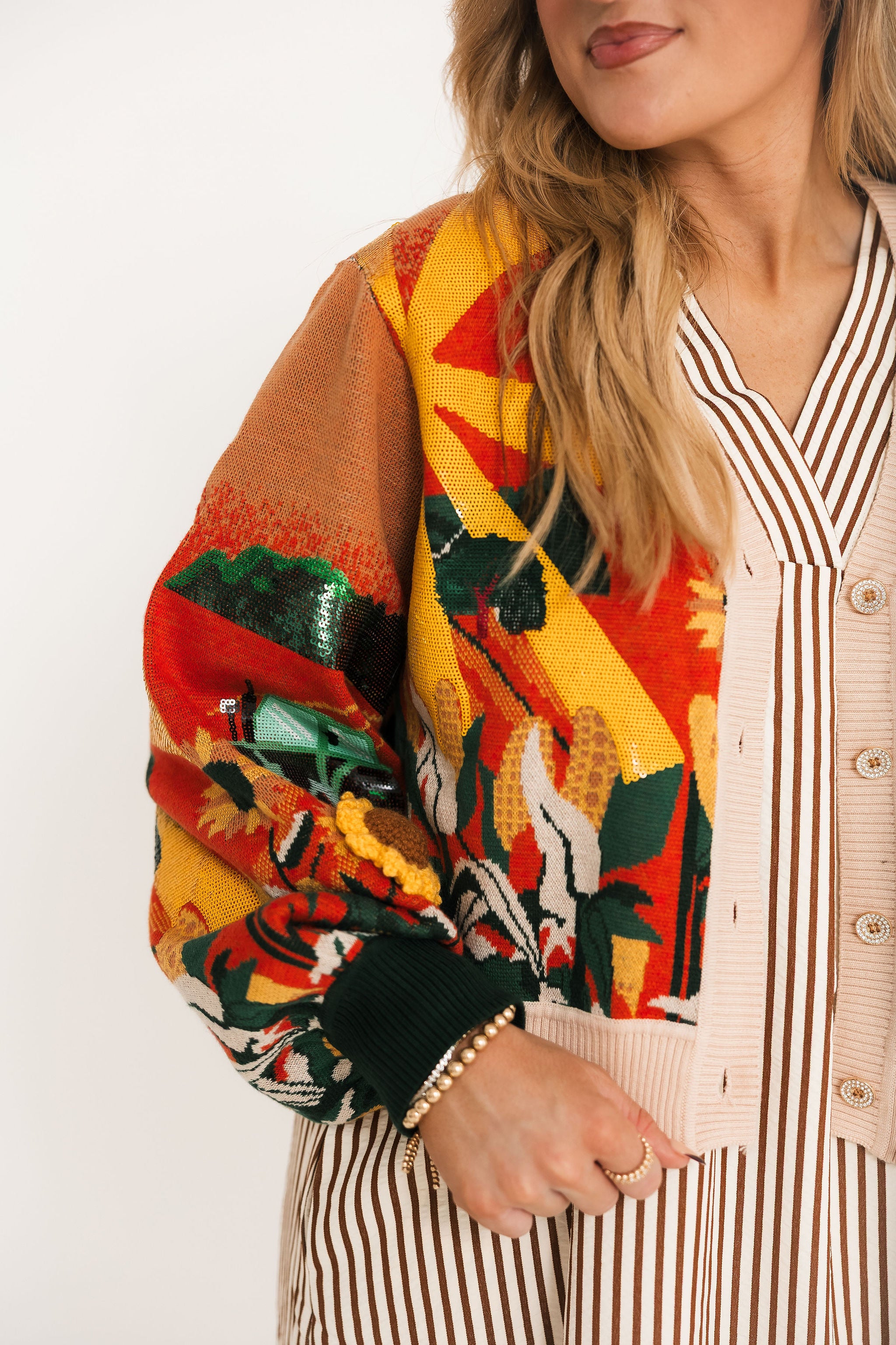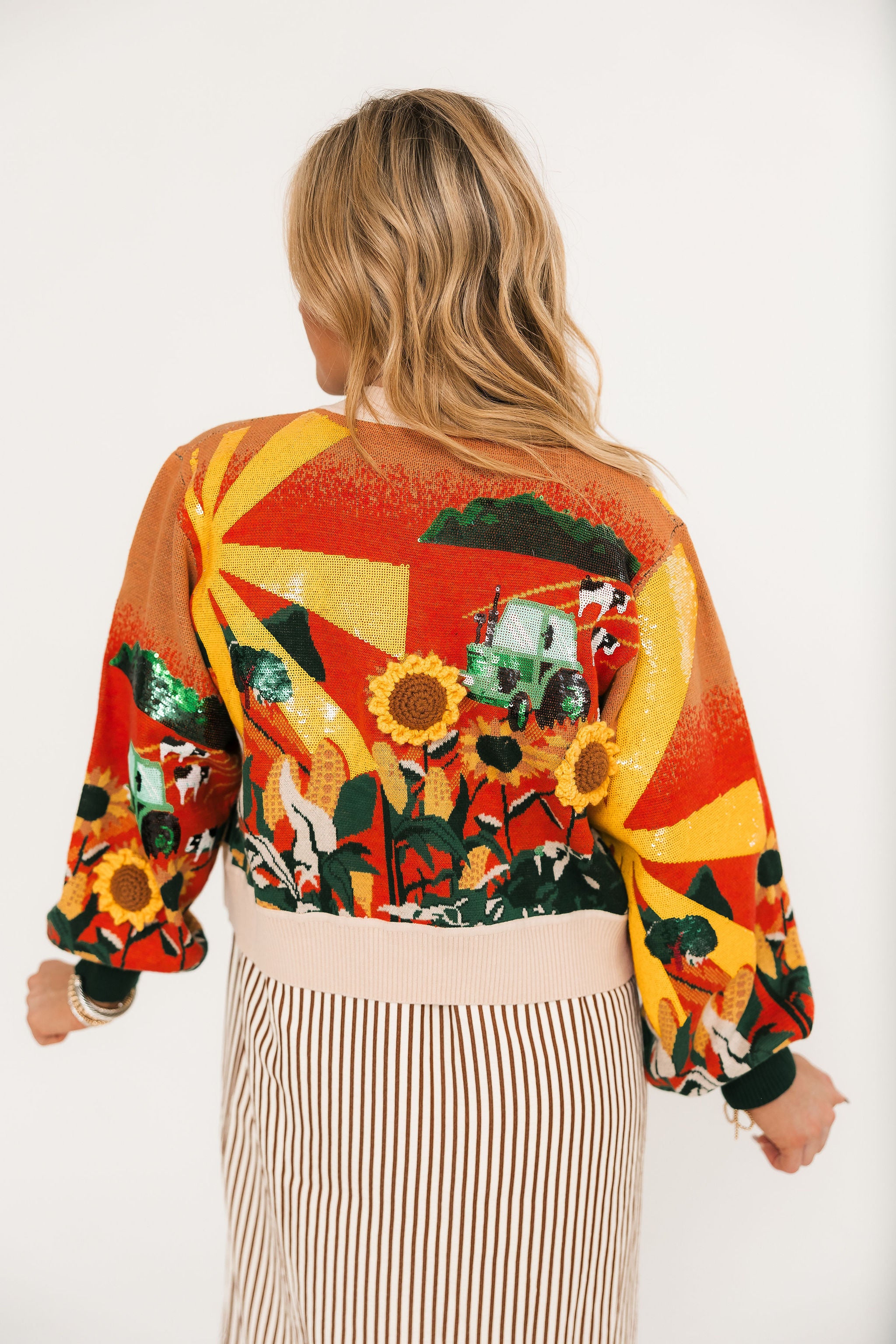 Queen Of Sparkles Multi Farm With Knit Sunflowers Button Up Cardigan