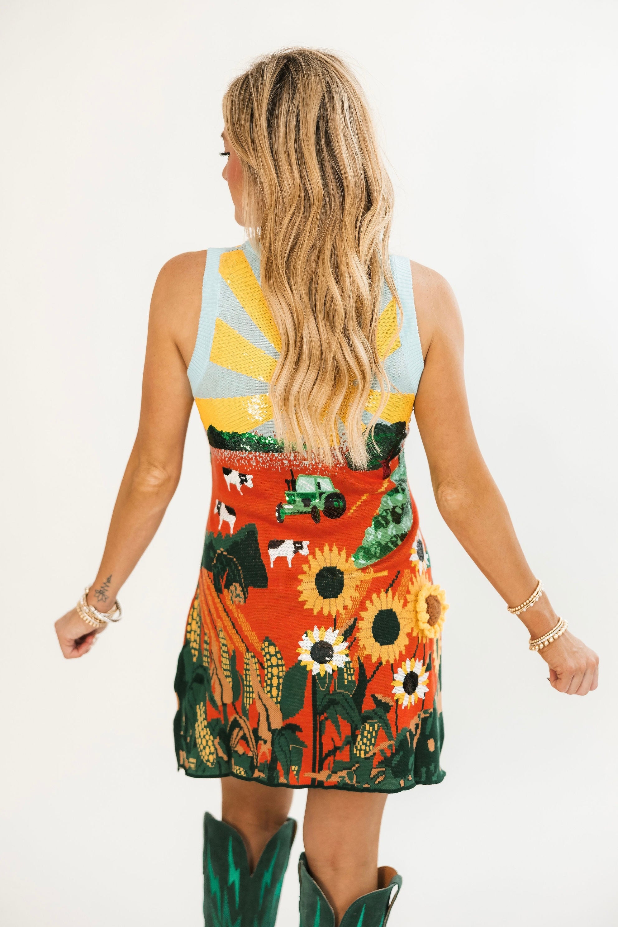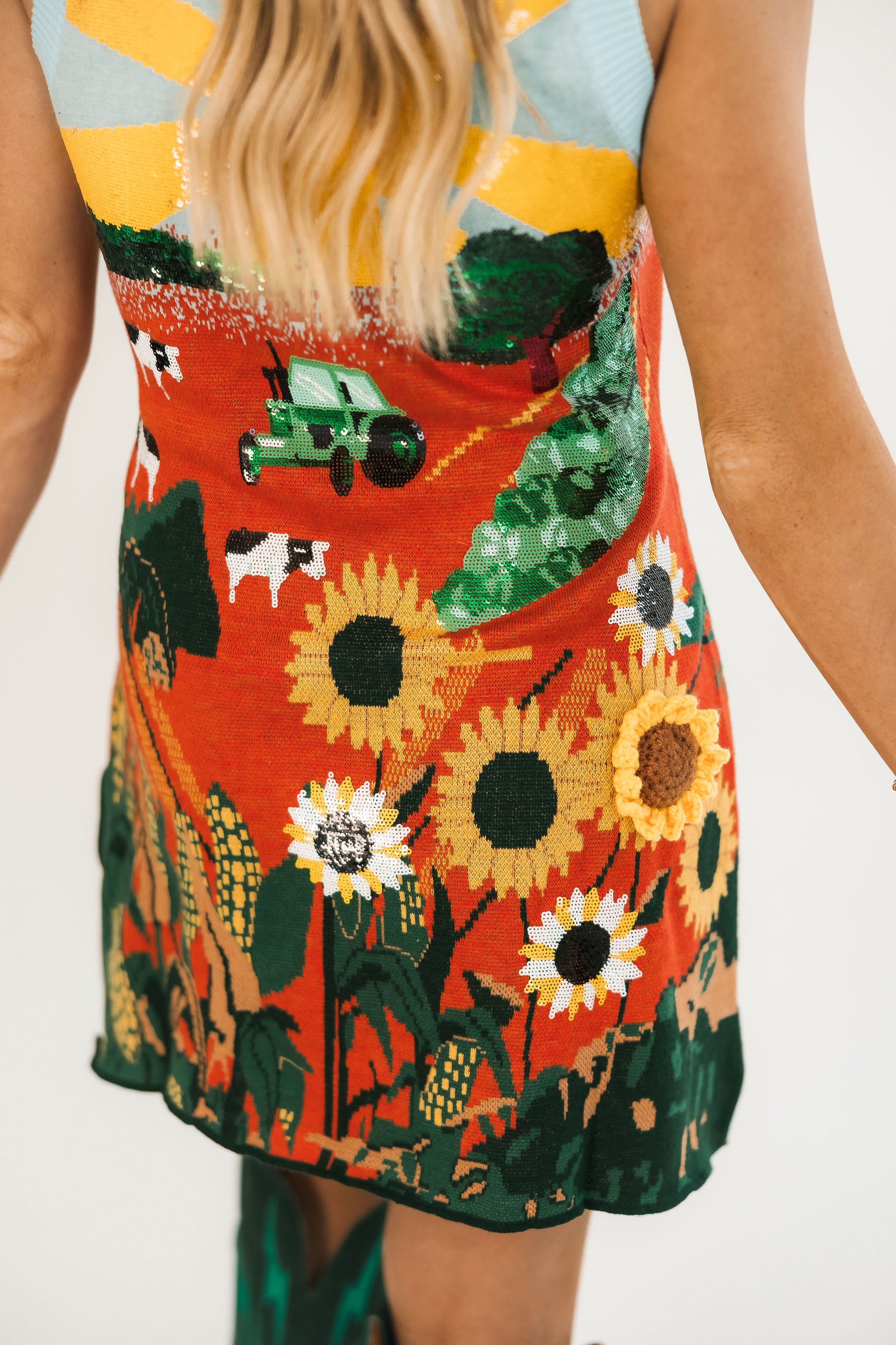 Queen Of Sparkles Multi Farm With Knit Sunflowers Tank Dress
