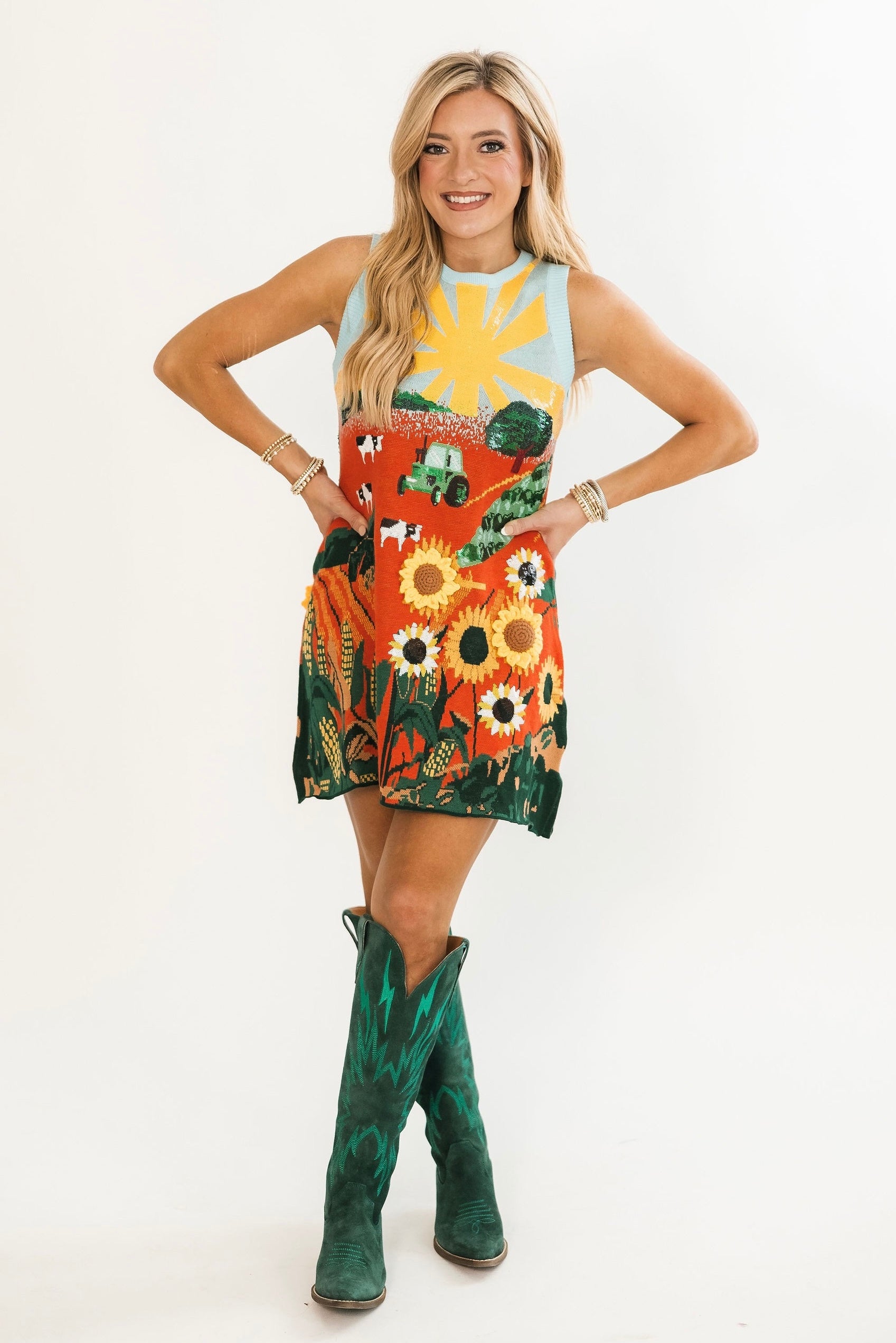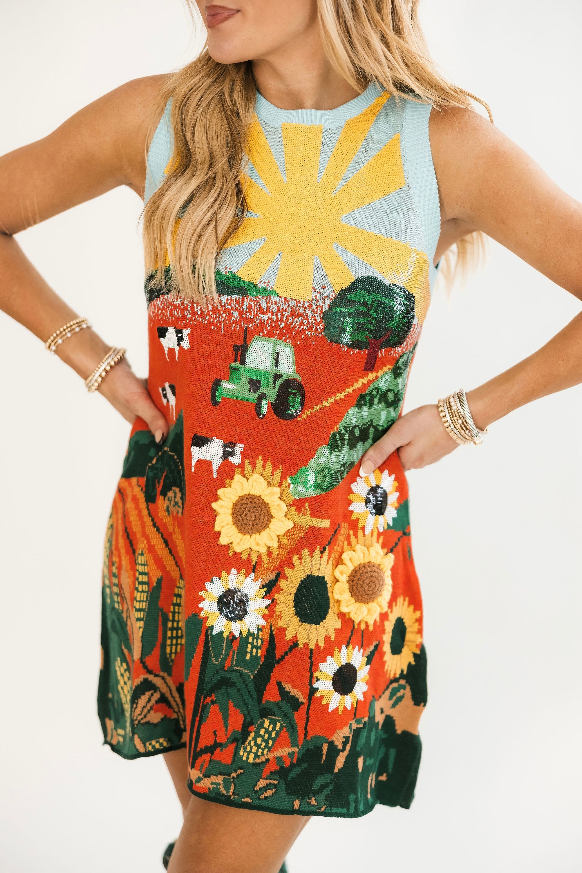 Multi Farm With Knit Sunflowers Tank Dress | Queen Of Sparkles