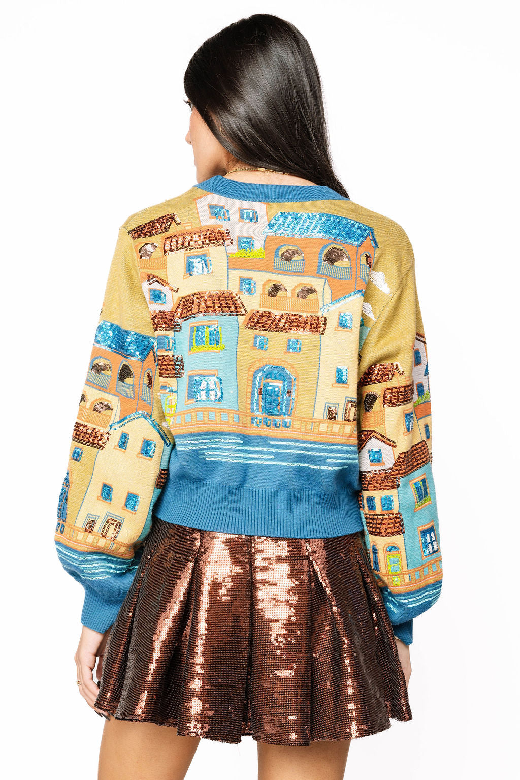 Multi Italian Houses On Water Button Up Cardigan | Queen Of Sparkles