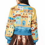 The Queen Of Sparkles Multi Italian Houses On Water Button Up Cardigan features a relaxed fit with a V-neckline and long sleeves. Adorned with whimsical Italian waterfront graphics, it’s perfect for layering, casual outings, or pairing with matching Queen Of Sparkles pieces for a playful, eye-catching outfit.