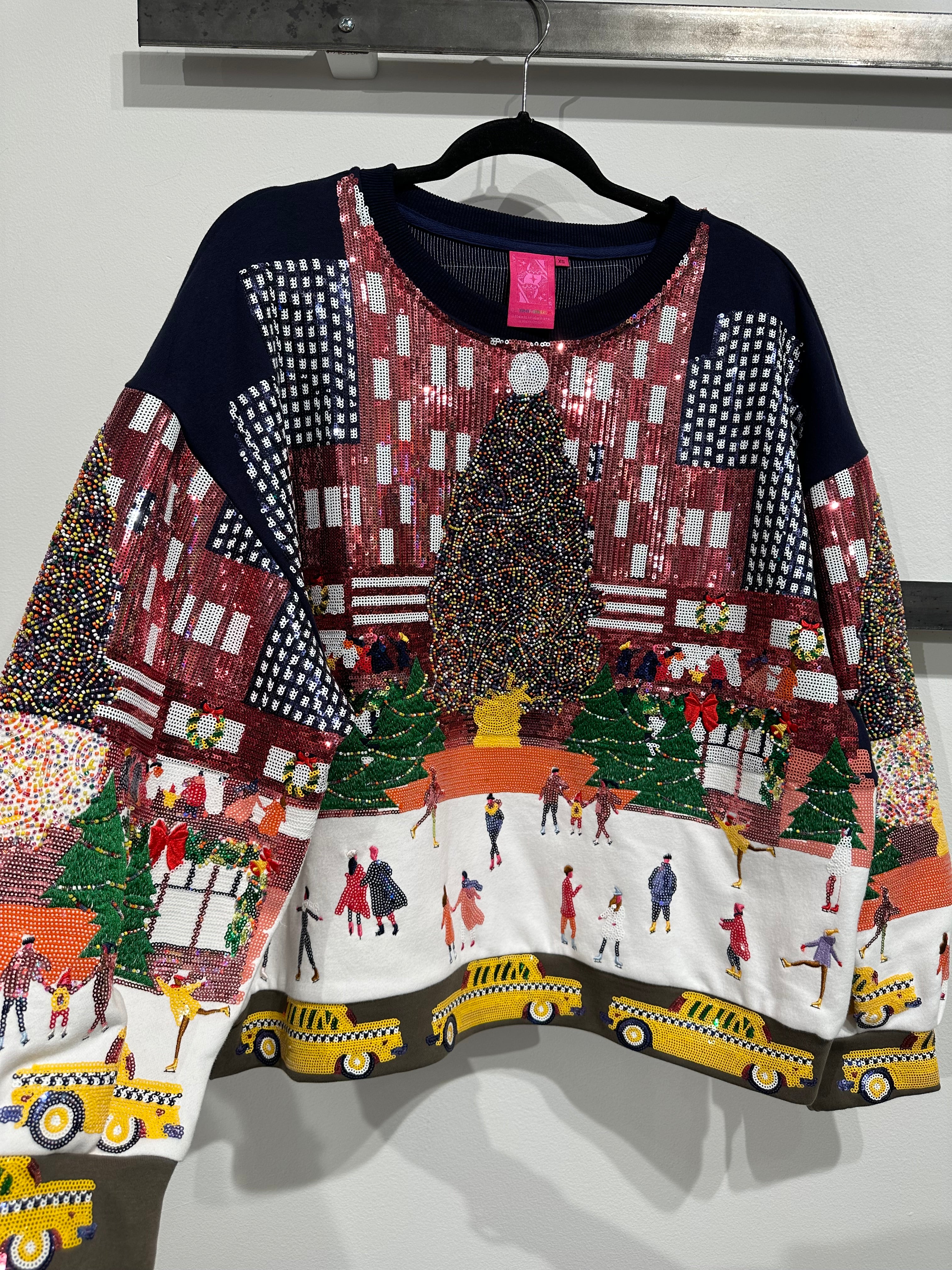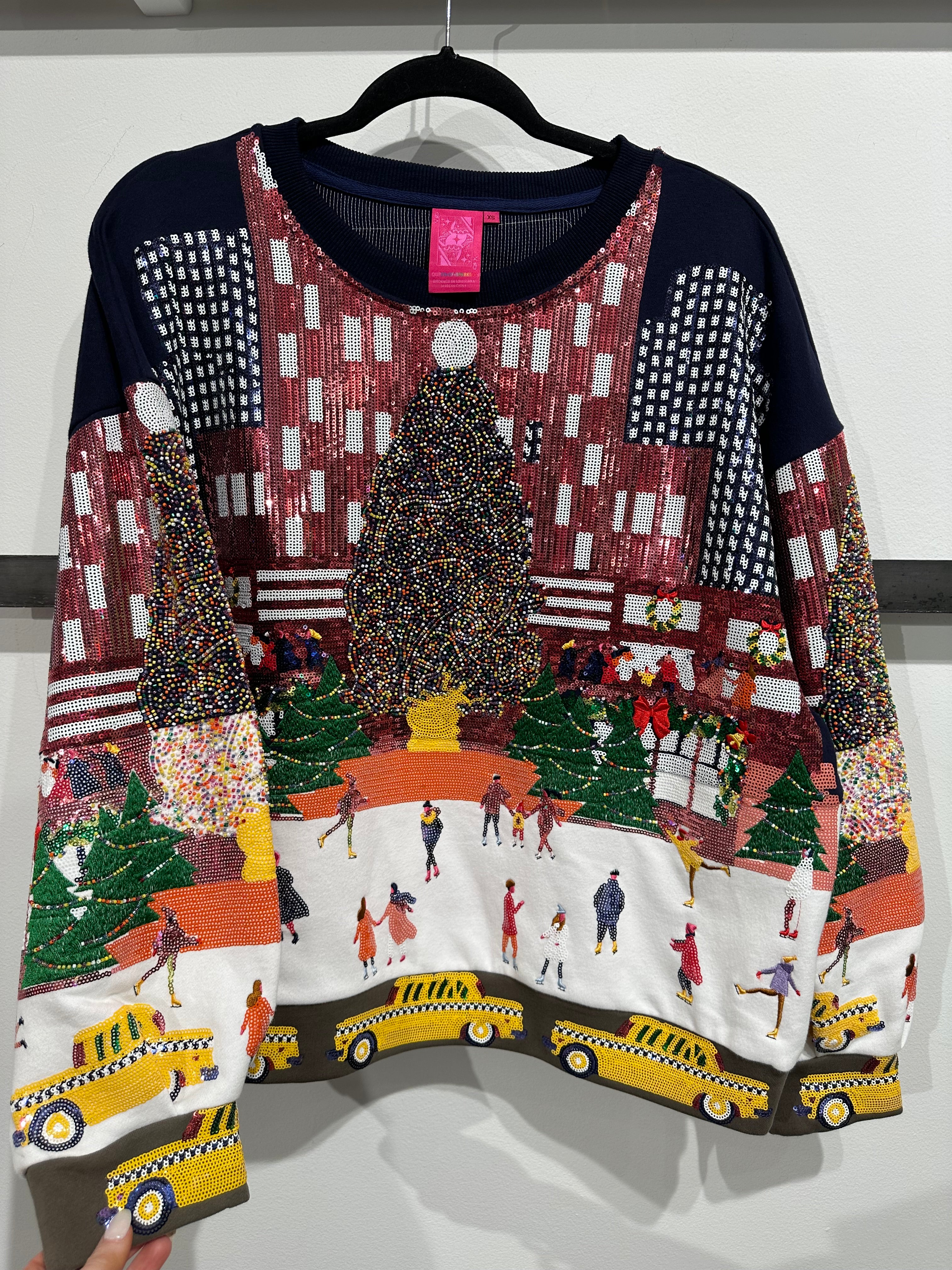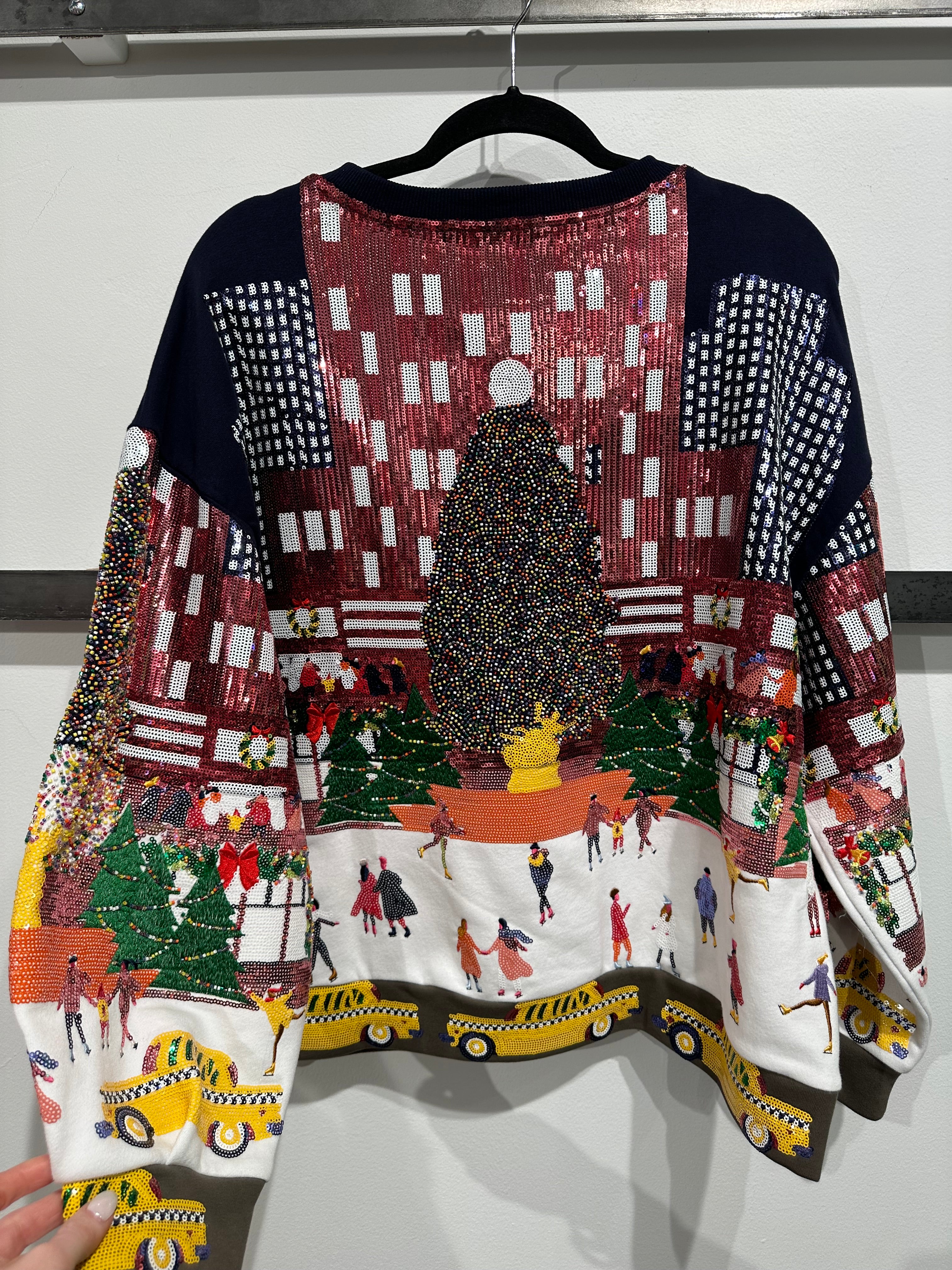 Multi Sequin Rockefeller Center At Christmas Sweatshirt | Queen Of Sparkles