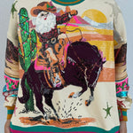 Multi Vintage Cowboy Santa Sweatshirt | Queen Of Sparkles