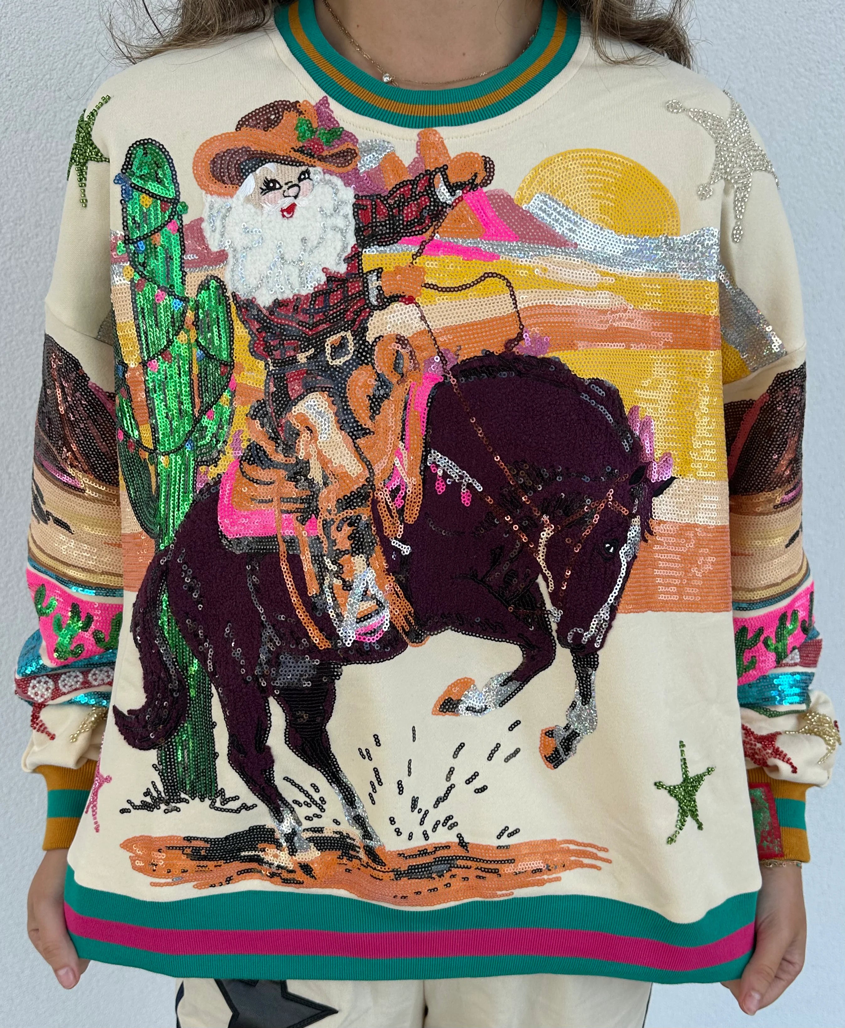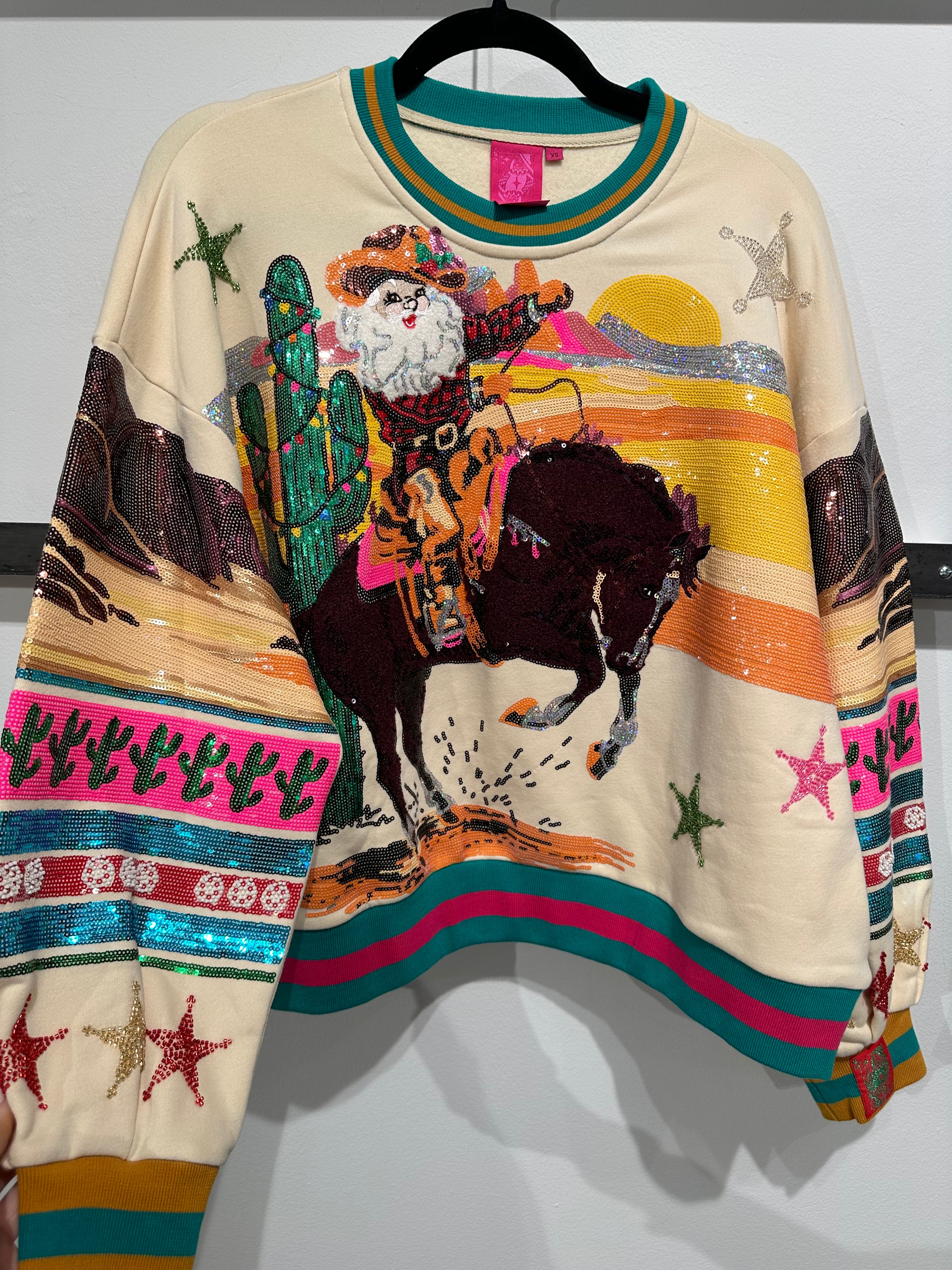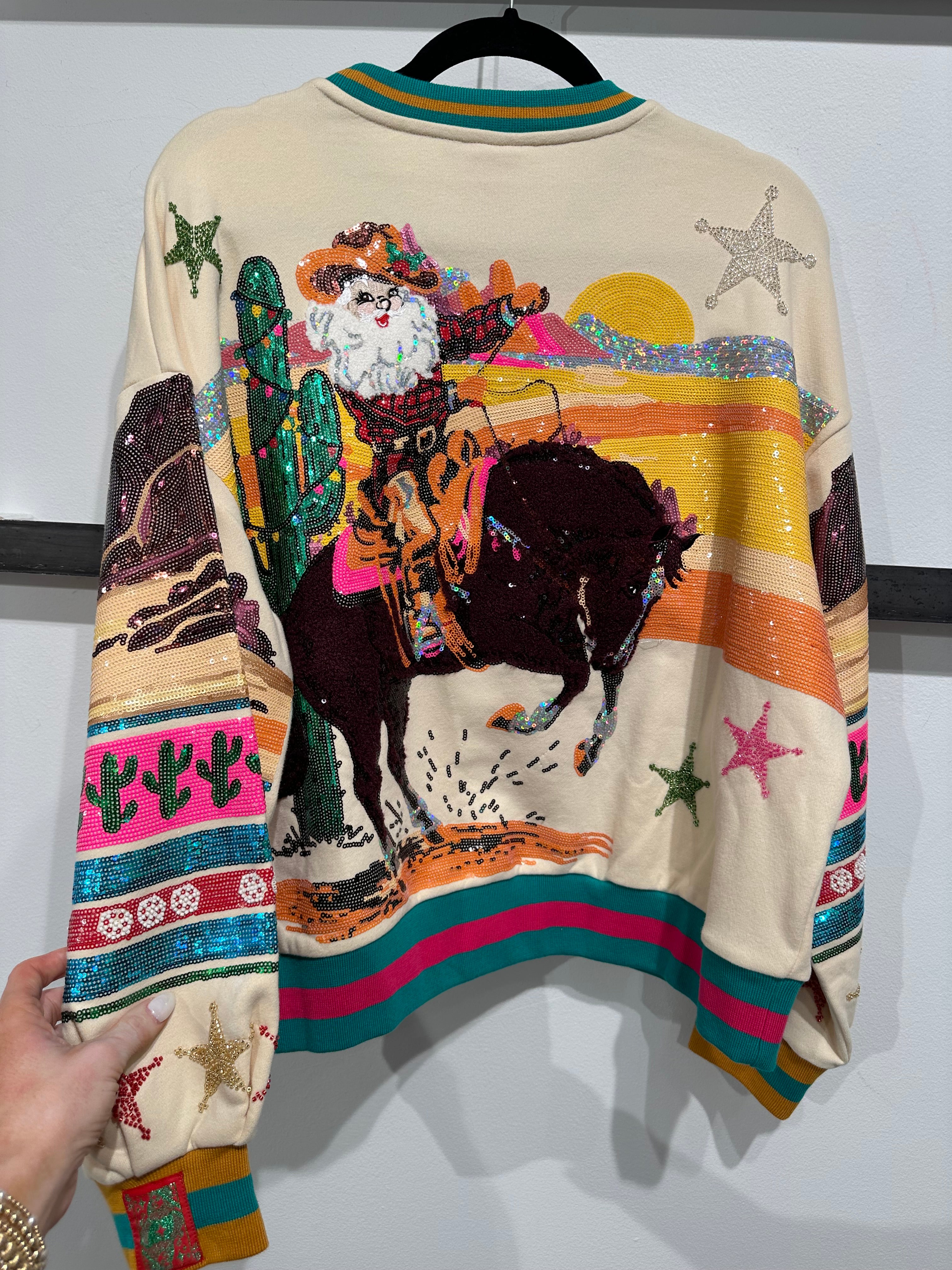 Queen Of Sparkles Multi Vintage Cowboy Santa Sweatshirt
